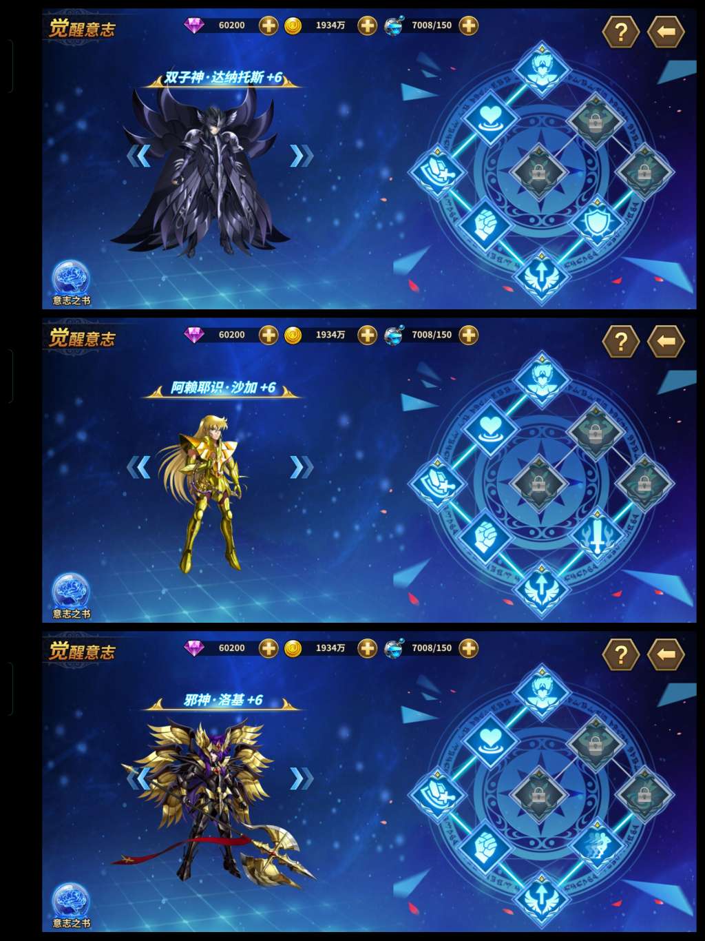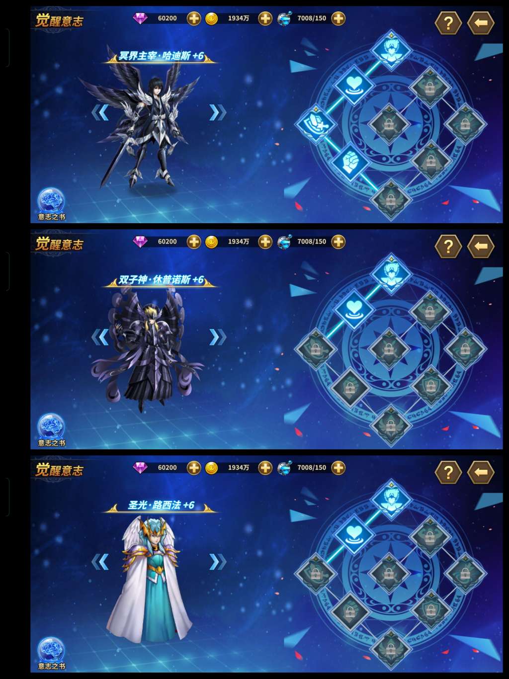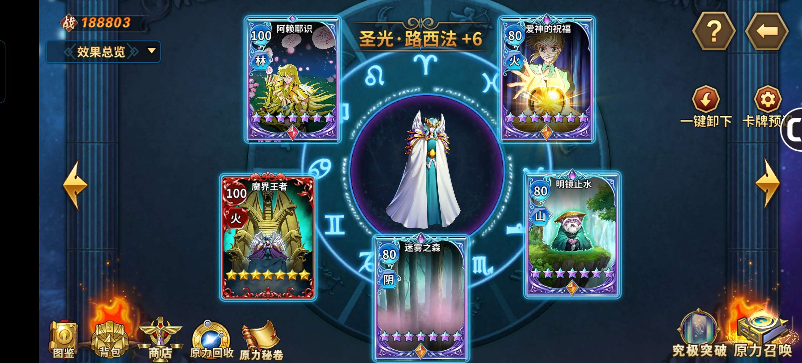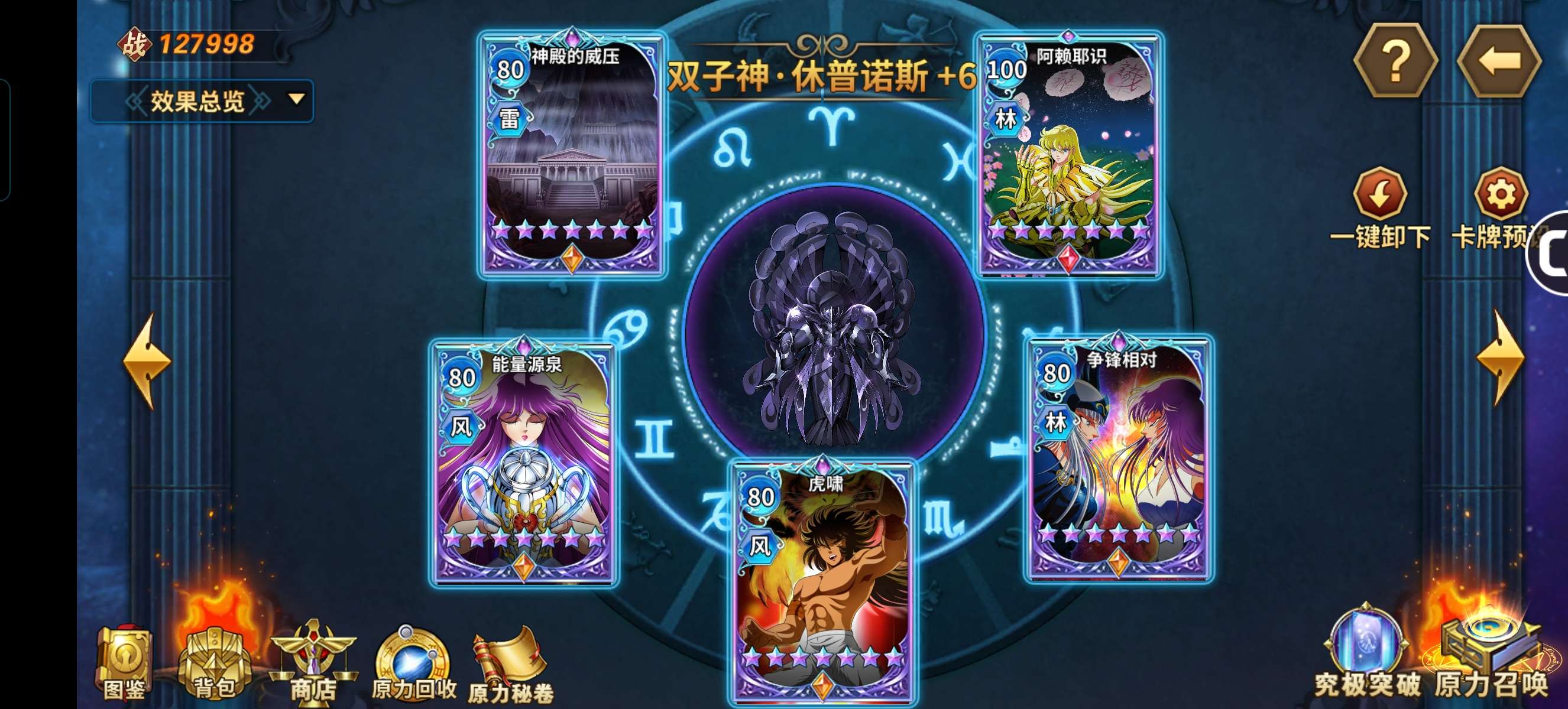 六觉死神,邪神,赖沙。基础多数都接近满,原力很强。三突红卡橙卡一堆,彩卡也有。守护神星神辉神瞬全满