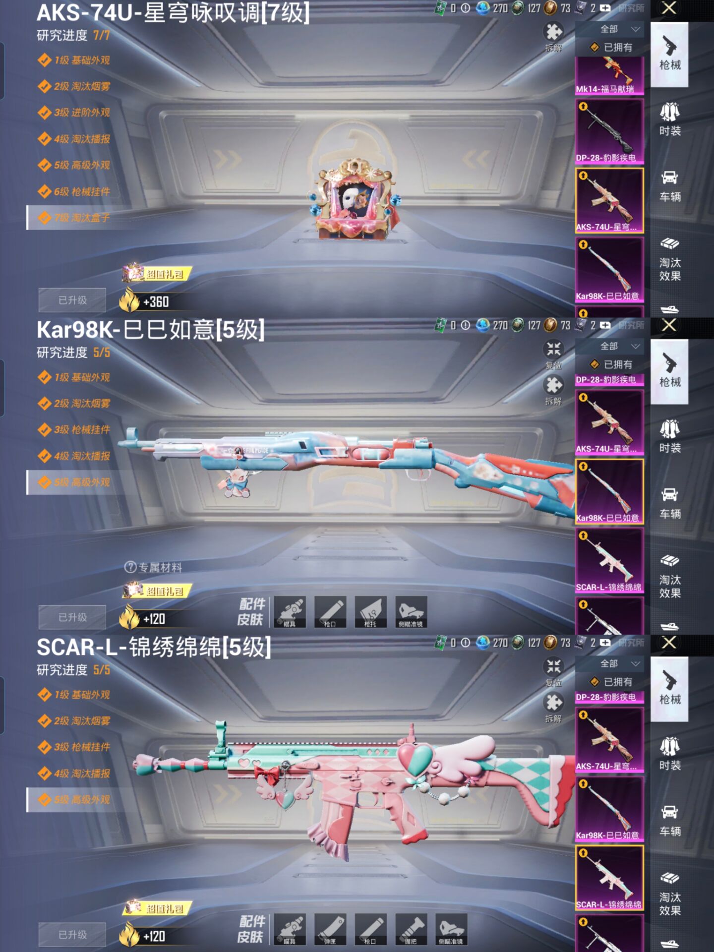 【地铁满天赋身法号3载具5粉装8特效枪 都市猎人 小丑鱼】安卓V-1稀有3载具5粉装8特效枪6热门164套装240枪皮 74238热力值 13印记 历史传奇王牌14星 【1稀有】 都市猎人 【3载具】 玛莎拉蒂粉色 Formula(巅峰兰) 萌兔起飞僚机 【5粉装】 女娲灵识 异瞳寒姬 未来歌姬 星穹咏叹调 创世救赎 【8特效枪】 SCAR-L-锦绣绵绵 (5级) AKS-74U-星穹咏叹调 (7