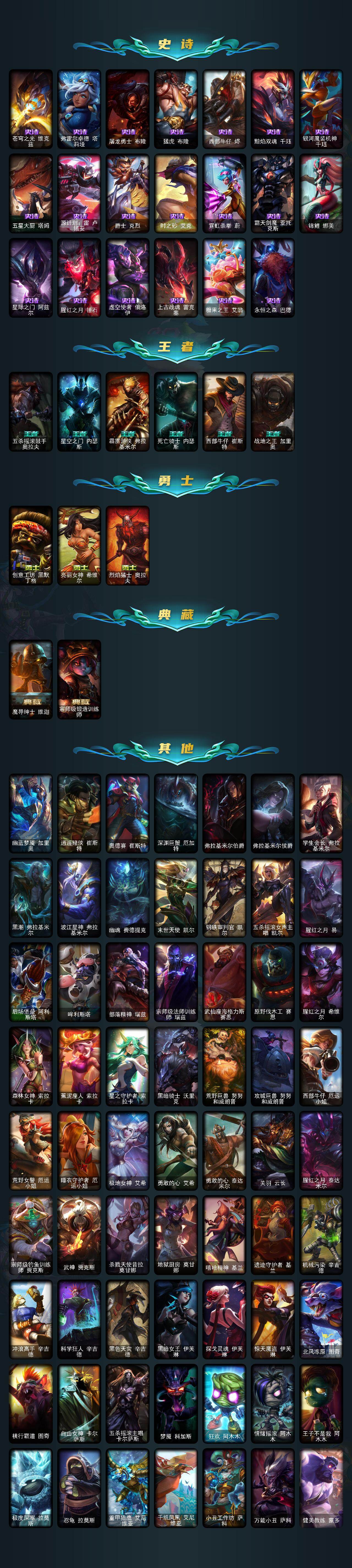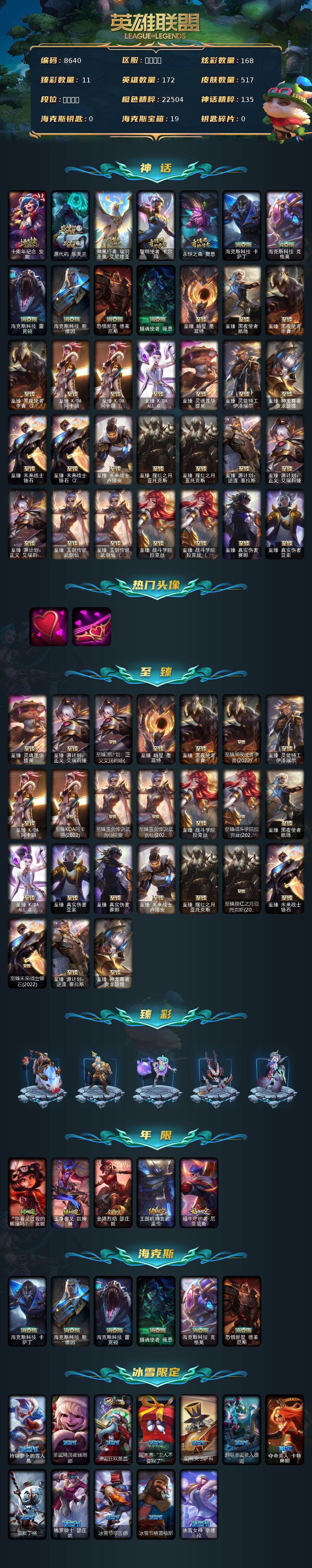 单双铂金段位-172英雄-517皮肤-168炫彩-2终极-35神话-64限定-46传说-125史诗