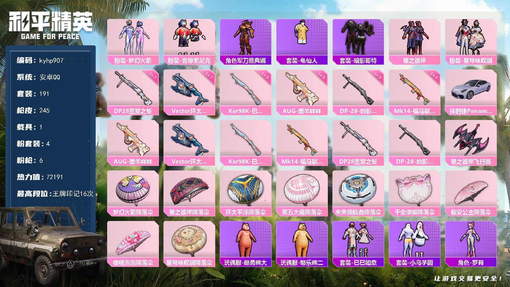 4粉装-6特效枪-1载具-1粉色飞行器-