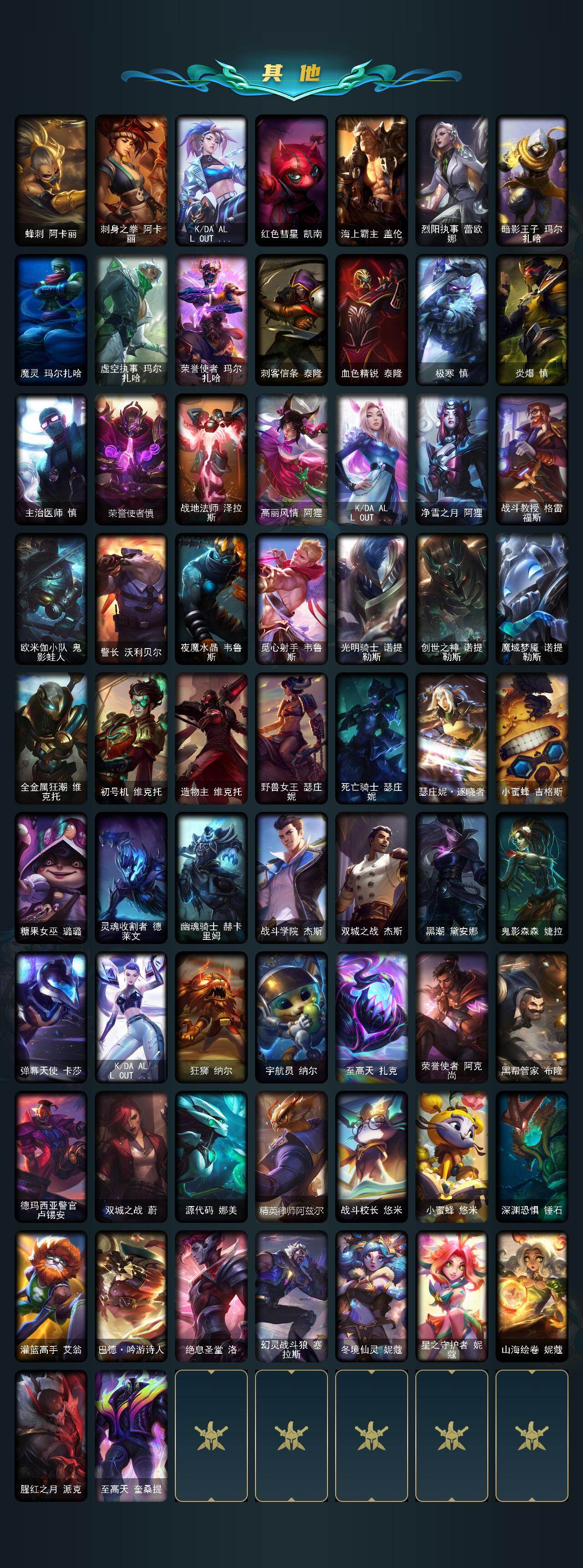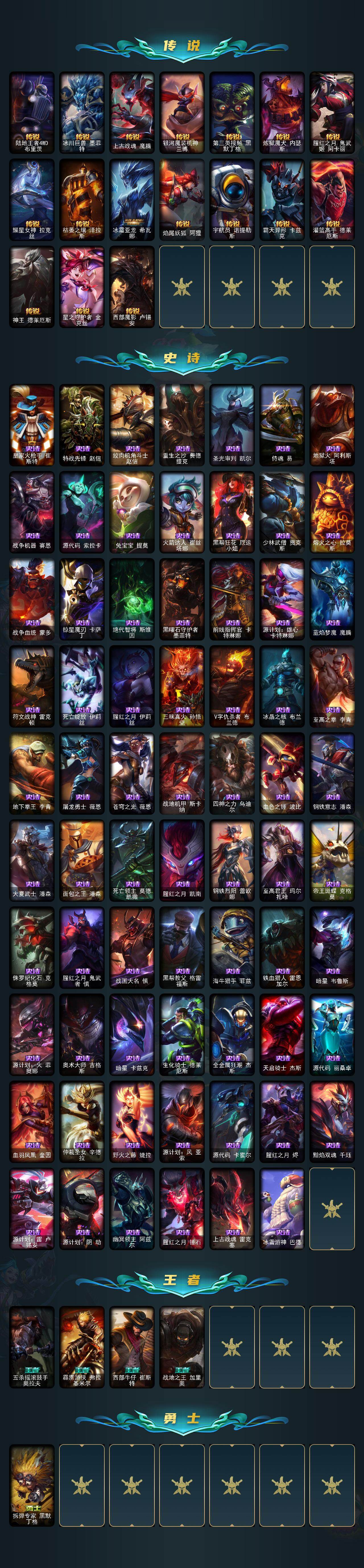 铂金段位-172英雄-333皮肤-326炫彩-0终极-21神话-36限定-31传说-69史诗