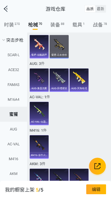实名: 可修改 时装数: 65 载具数: 1 枪械数: 70 战备数: 78