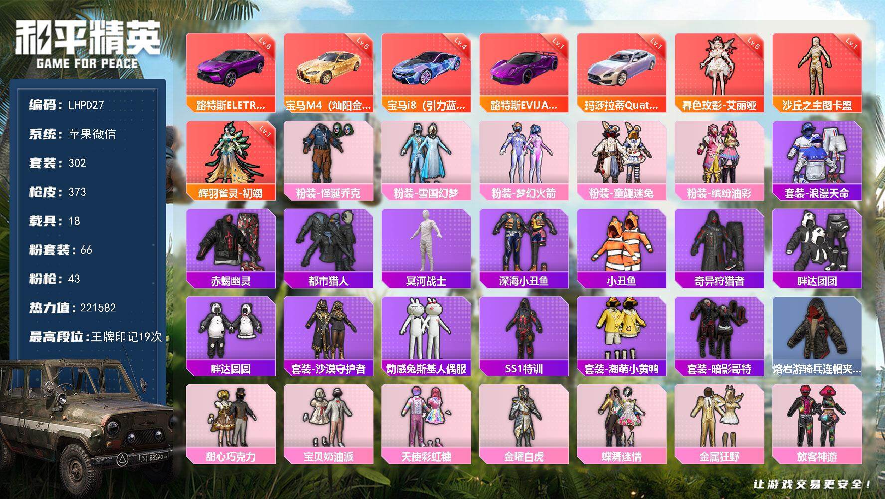 【6级图卡盟5红装22粉装21特效枪11载具可秒换绑】 苹
