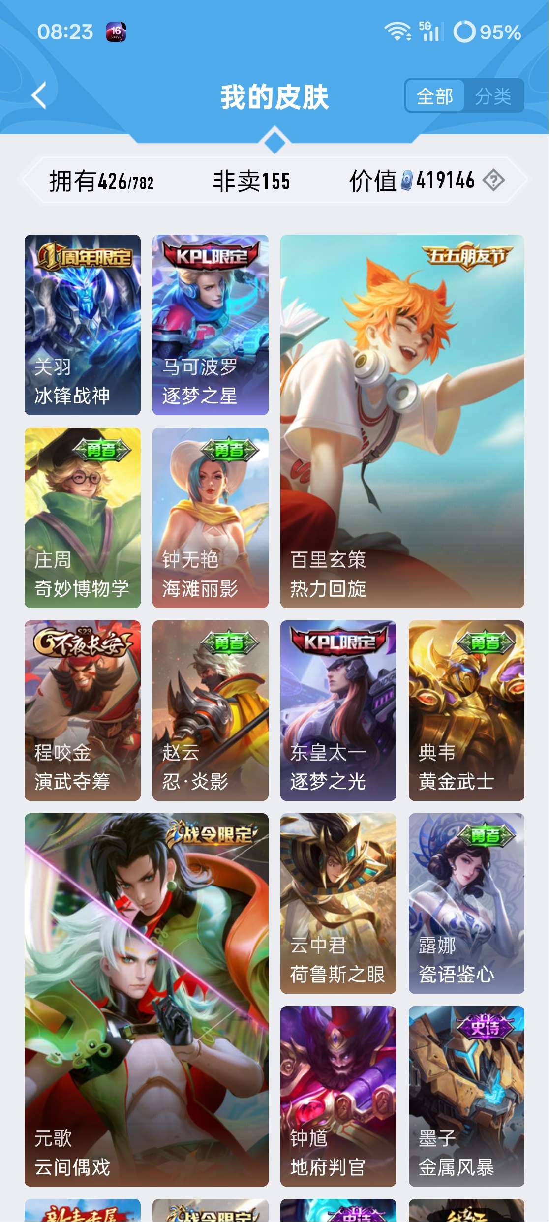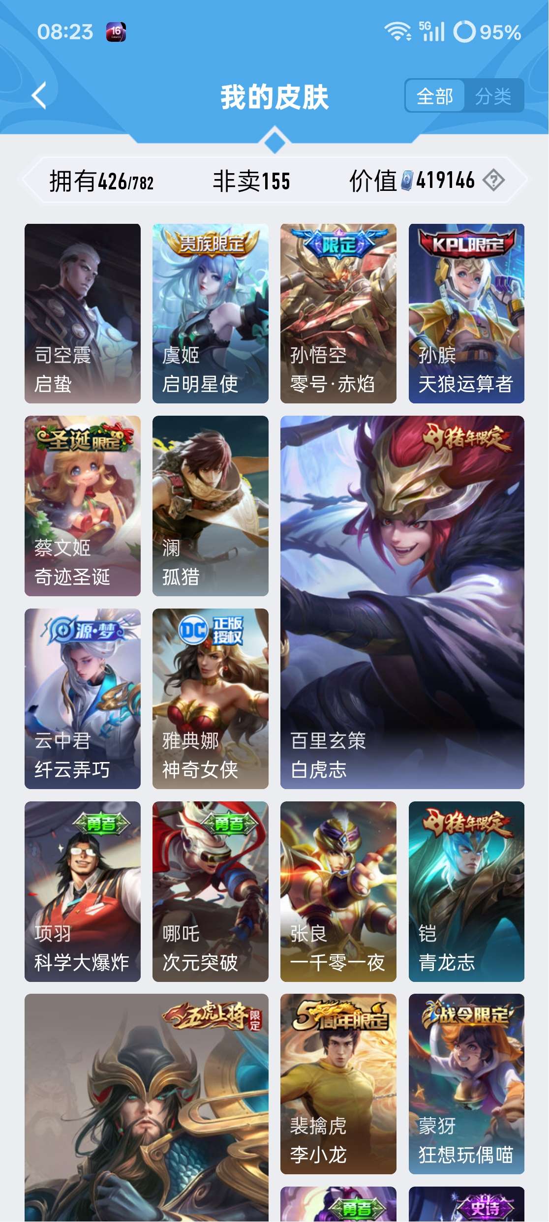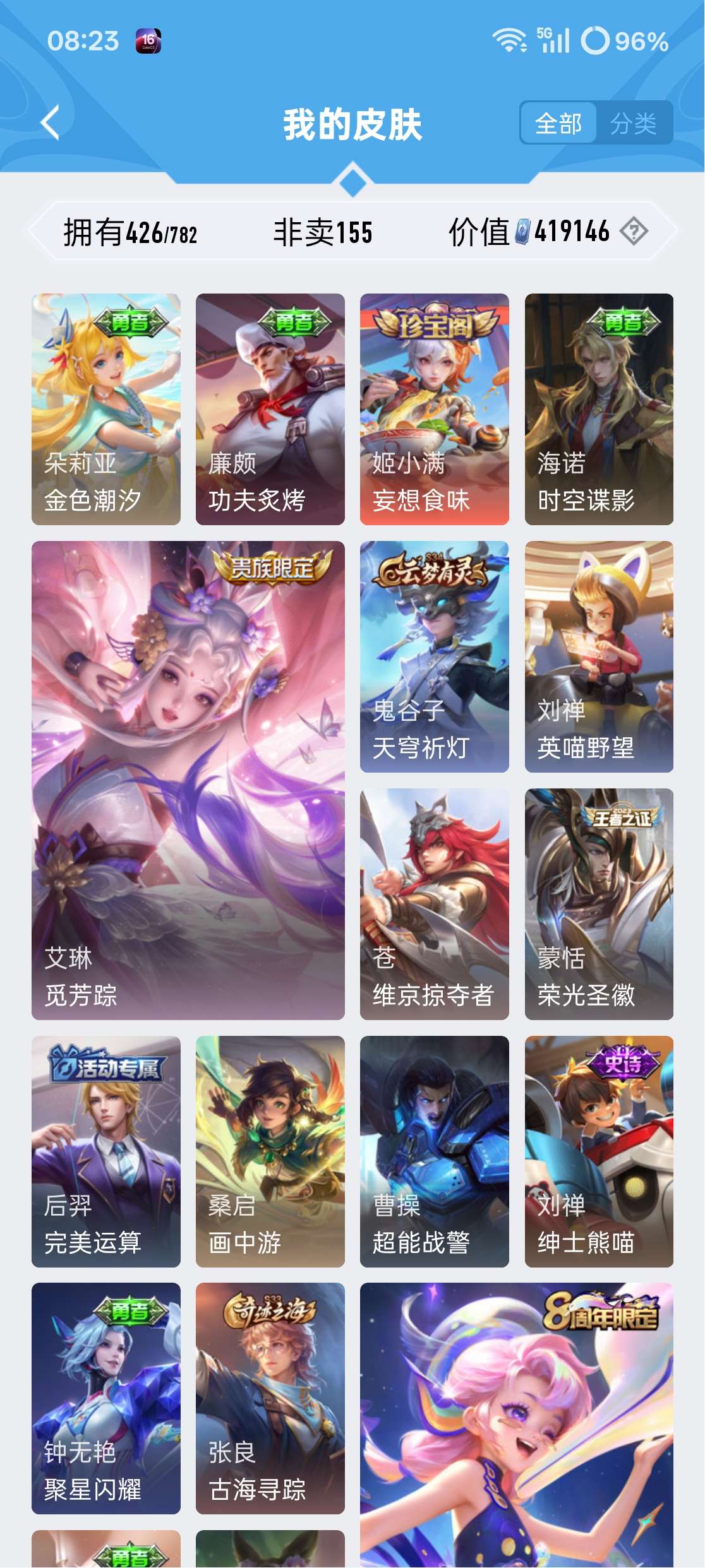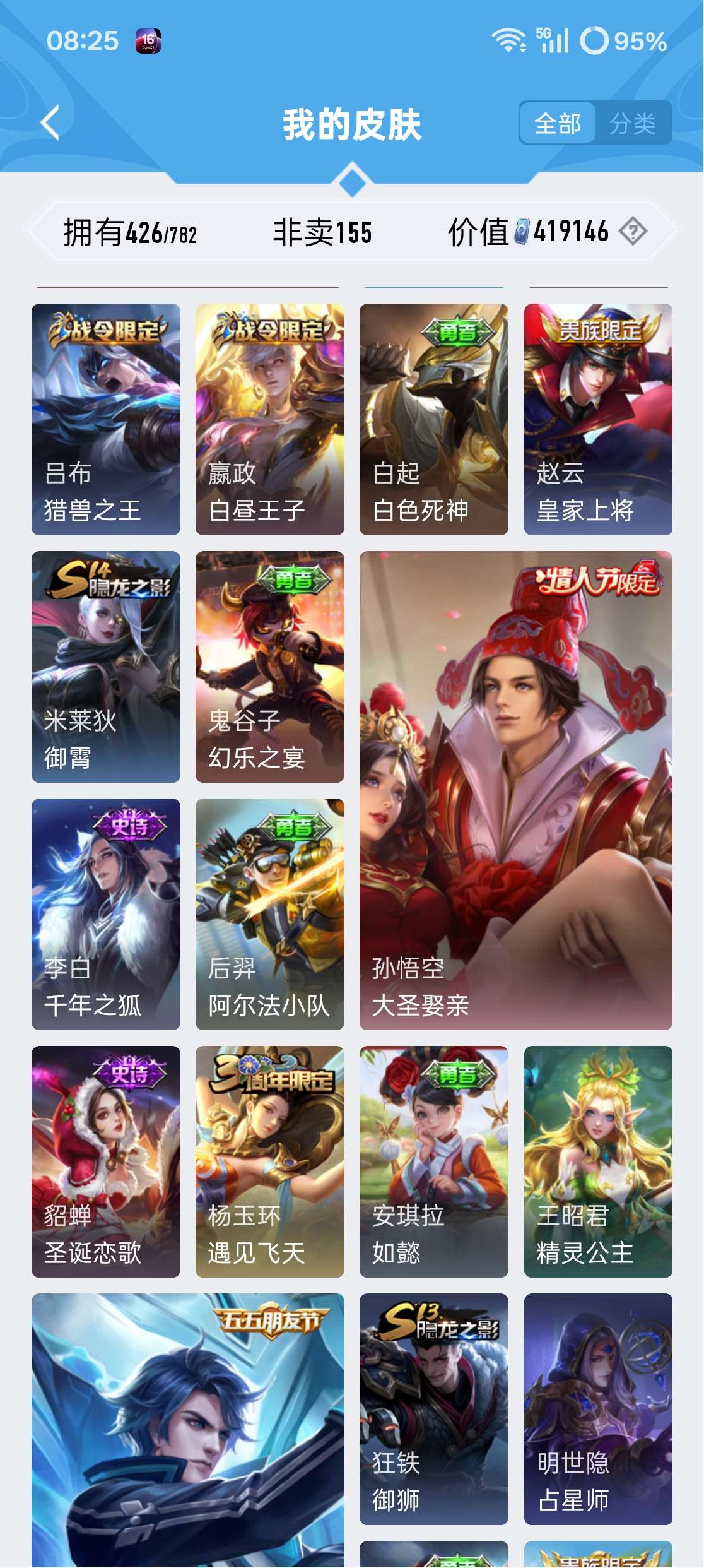 100%包赔,安琪拉典藏V10 7荣耀典藏水晶5星元32传说142史诗426皮肤3