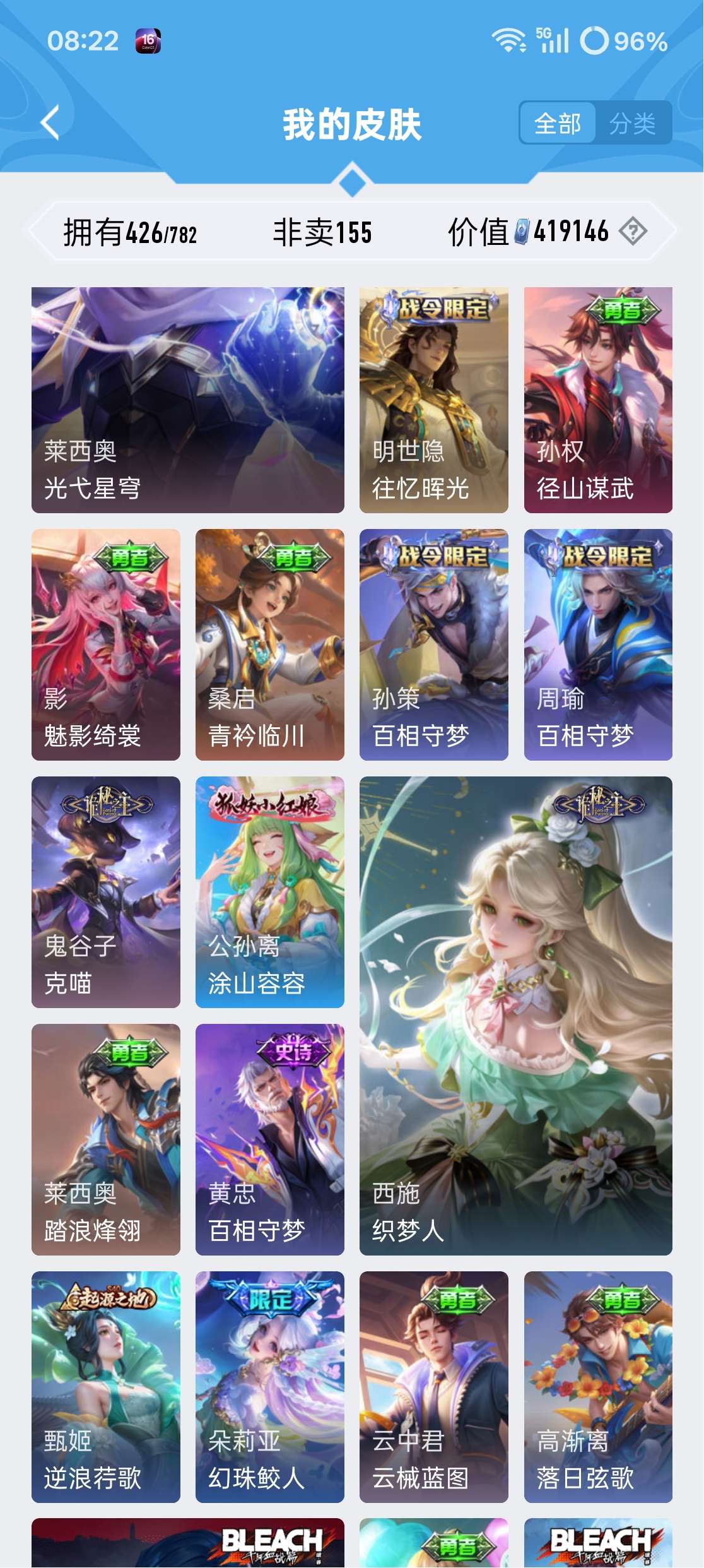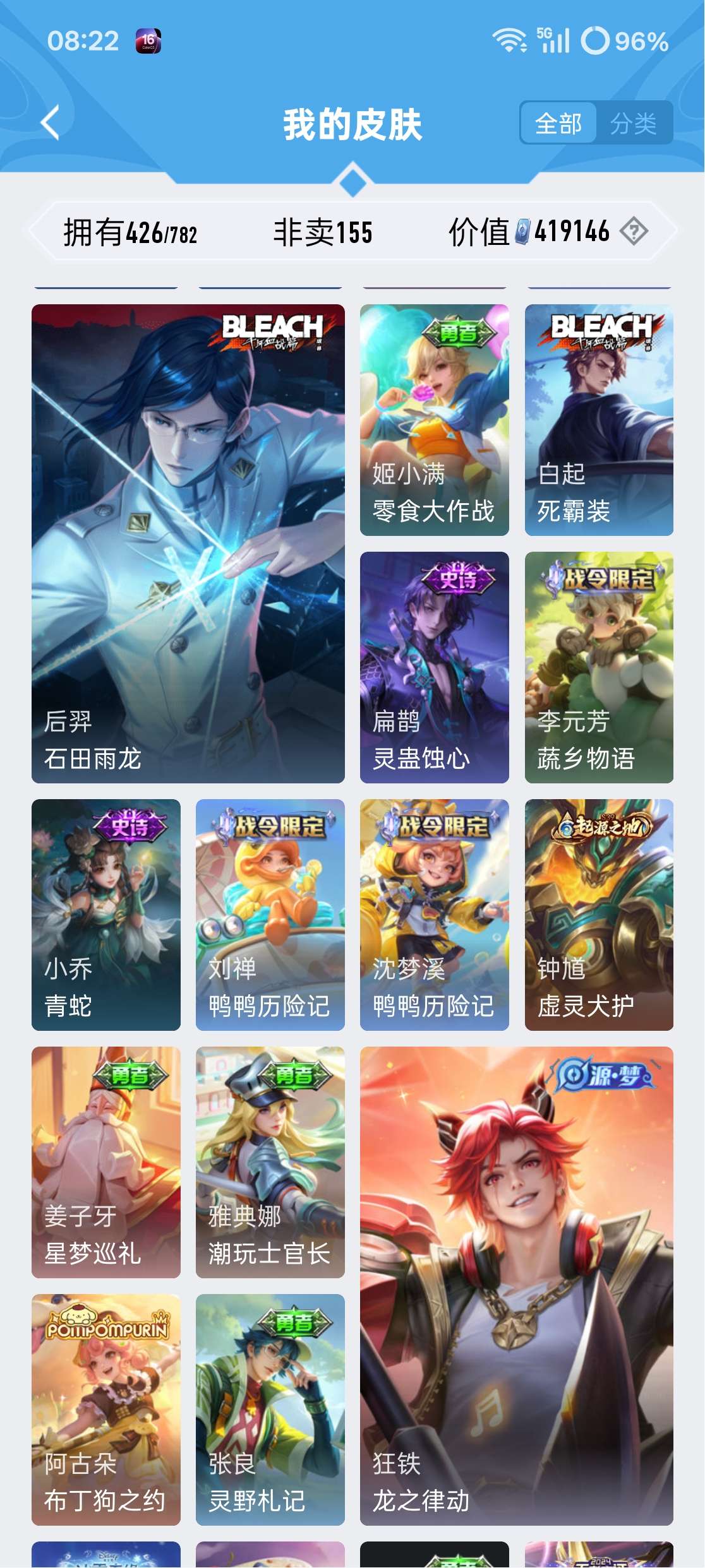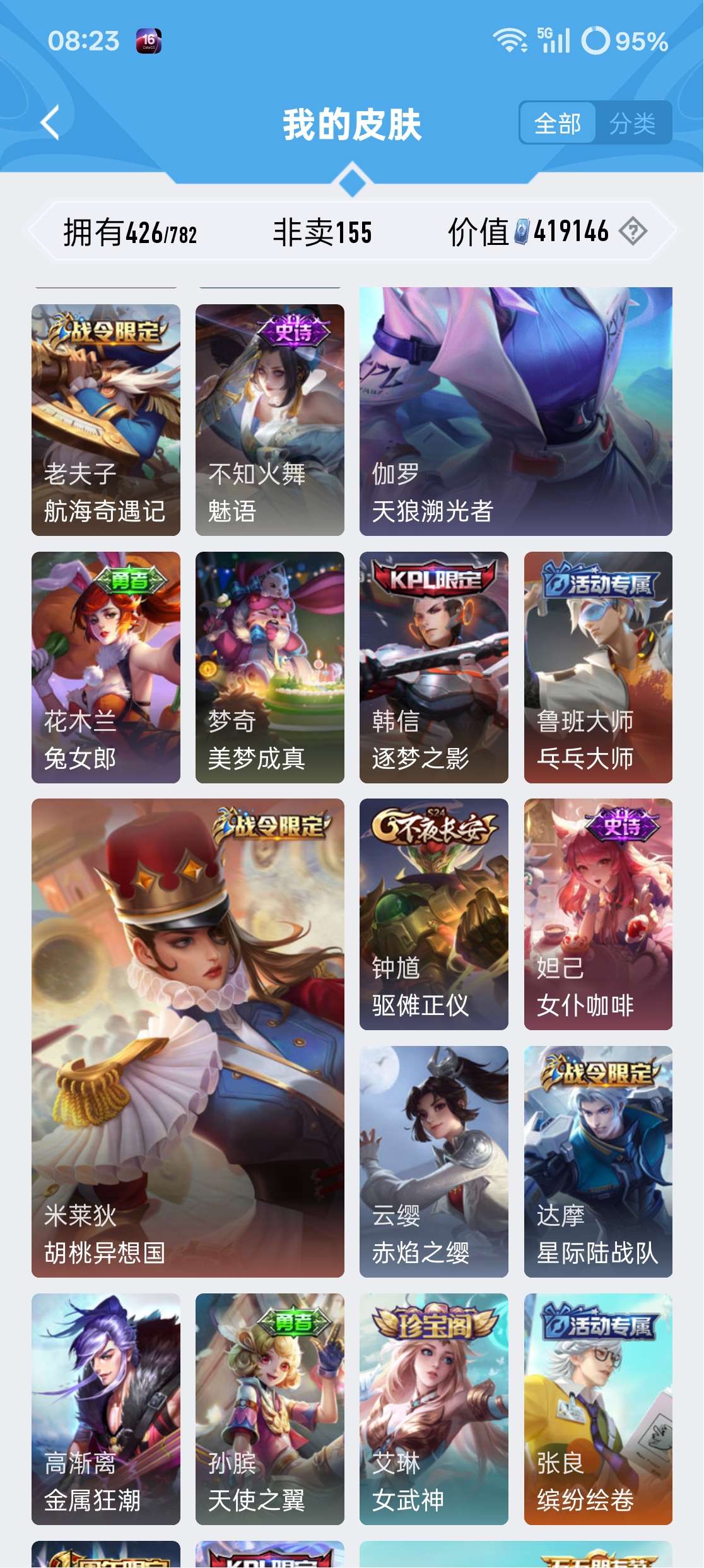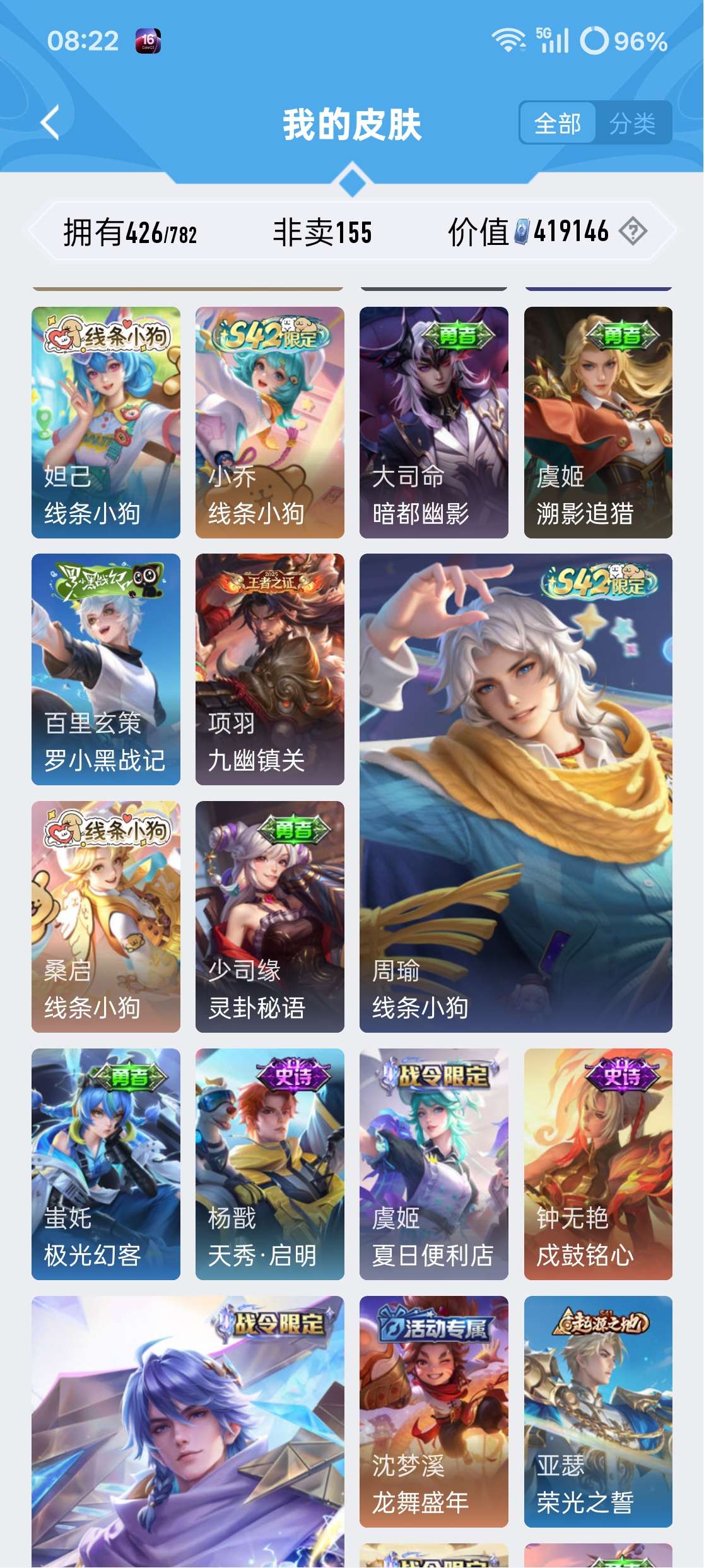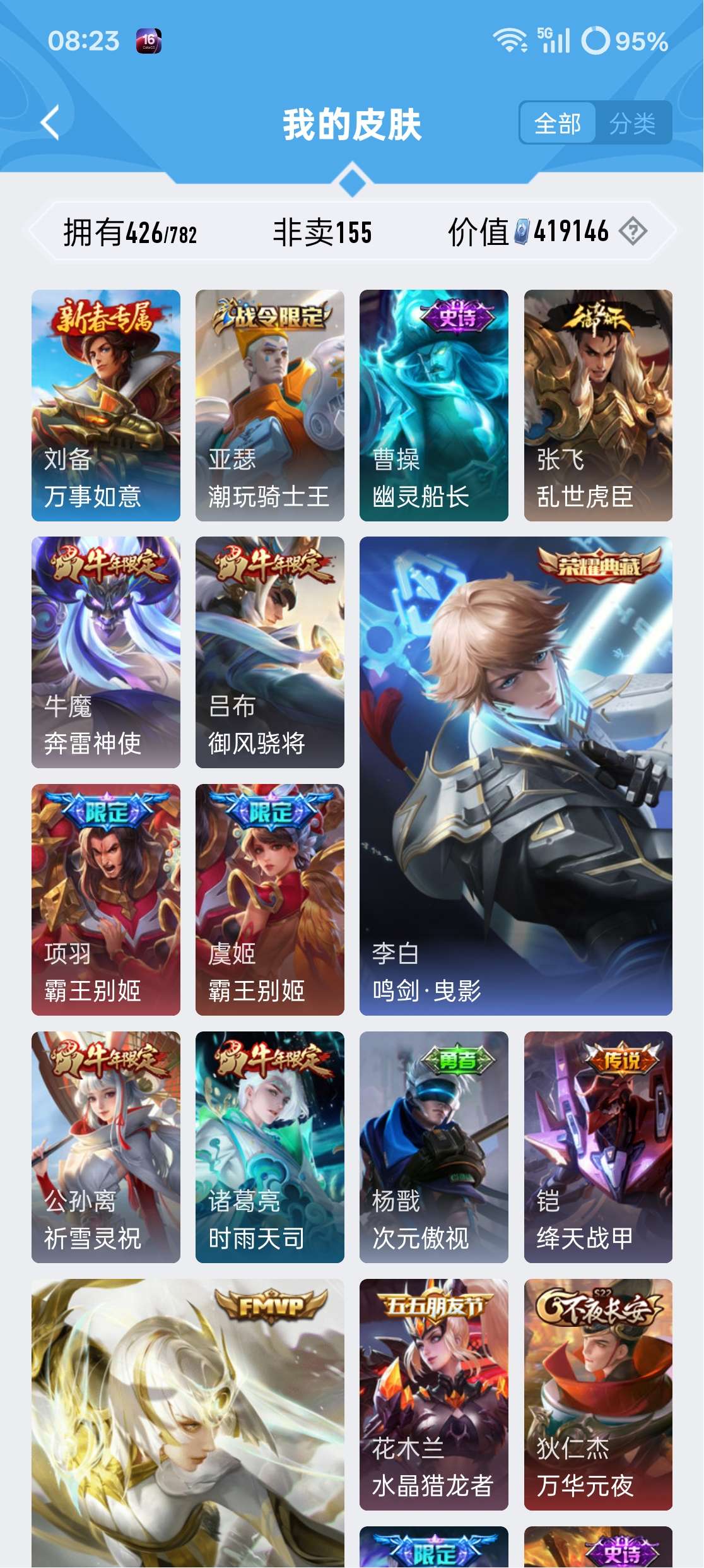 100%包赔,安琪拉典藏V10 7荣耀典藏水晶5星元32传说142史诗426皮肤3