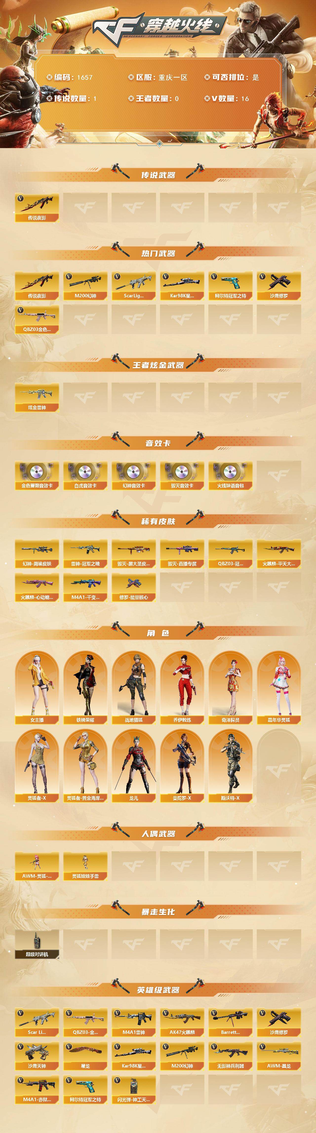 重庆一区-16V-0王者武器数-1炫金武器数