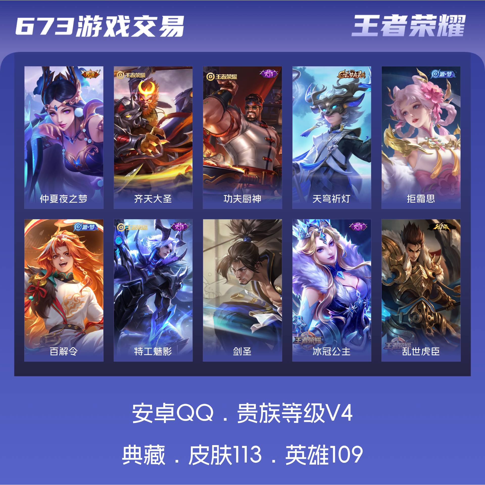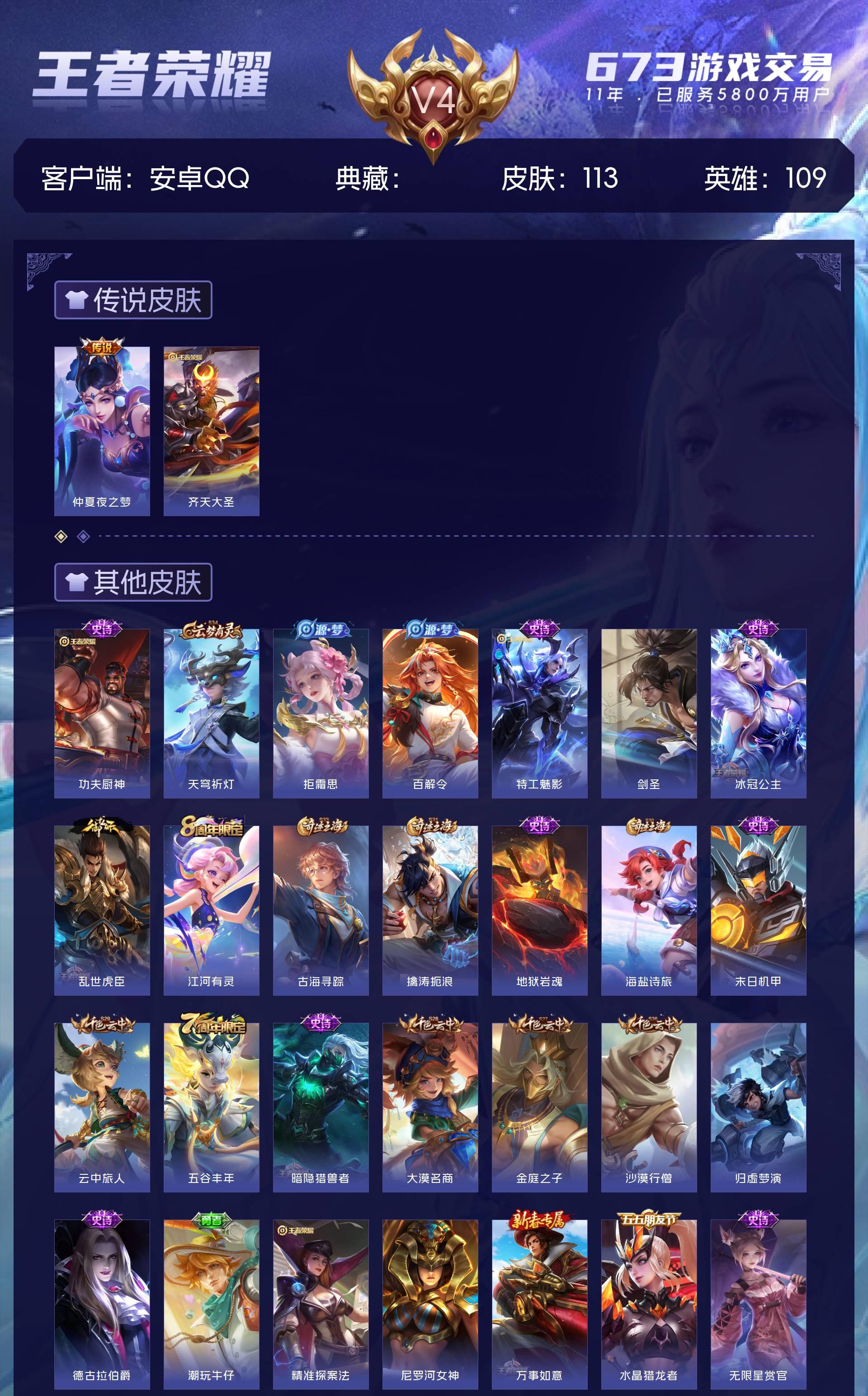 V4 皮肤113 英雄109 秩序白银 传说2 其他皮肤118