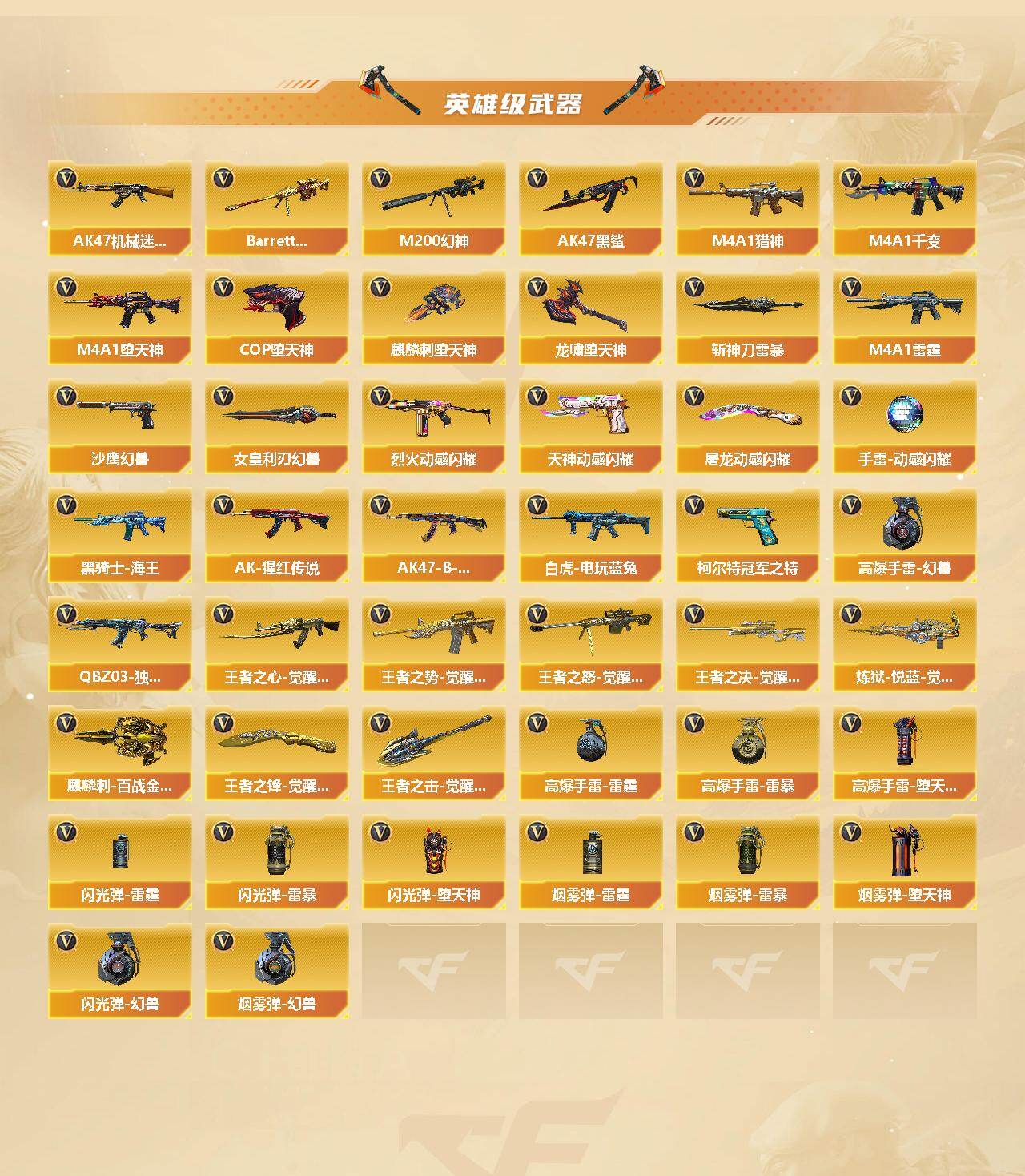 安徽一区-220V-25王者武器数-9炫金武器数【传说武器】:传说辉光【热门武器】:传说辉光,QBZ03-金色蔷薇*2,HK417-朱雀,M200-幻神*2,死亡之眼*2,白虎-电玩蓝兔,柯尔特-冠军之特,王者炎心,金色小号,C.A.T,M4A1-黑骑士*2,汤姆逊-烈龙*8,RPK-盘龙*7,加特林-炼狱*2,火麒麟-绝迹,COP-堕天神*3,沙鹰-修罗*5,高爆手雷-幻兽【王者炫金武器】:王者冰魄,王者炎心,王者之幻*2,王者之翼*2,王者之势,王者之武,王者之影,王者之魄,王者之光,王者之