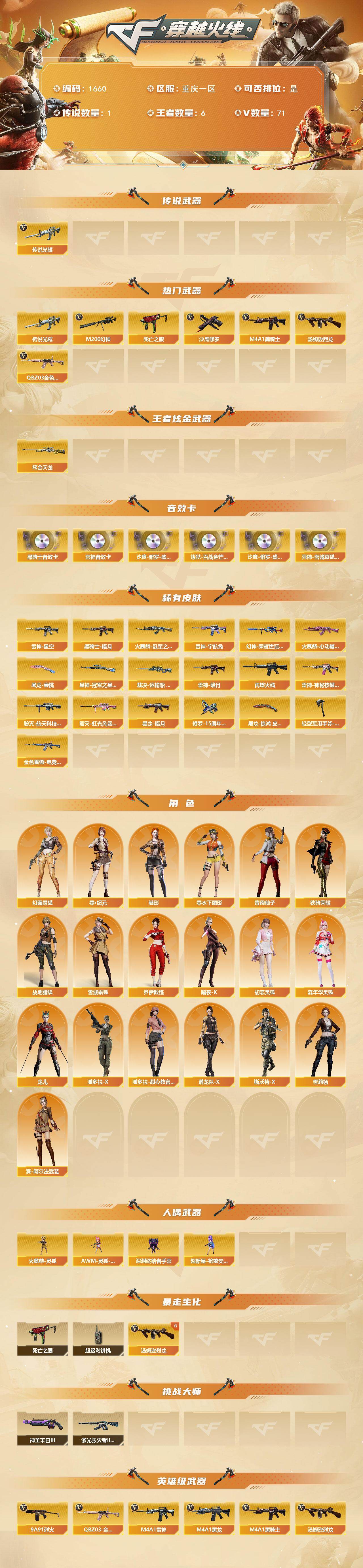 重庆一区-73V-6王者武器数-1炫金武器数