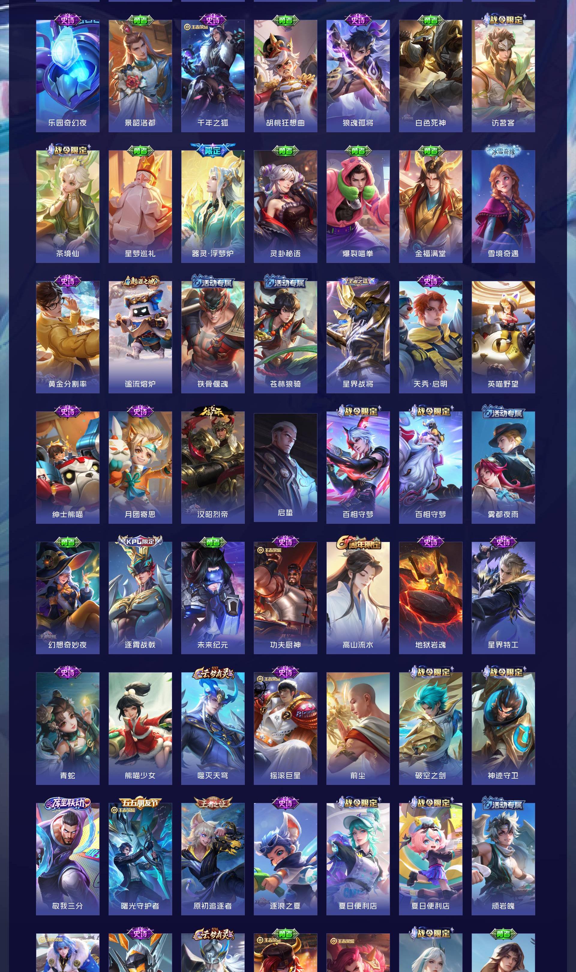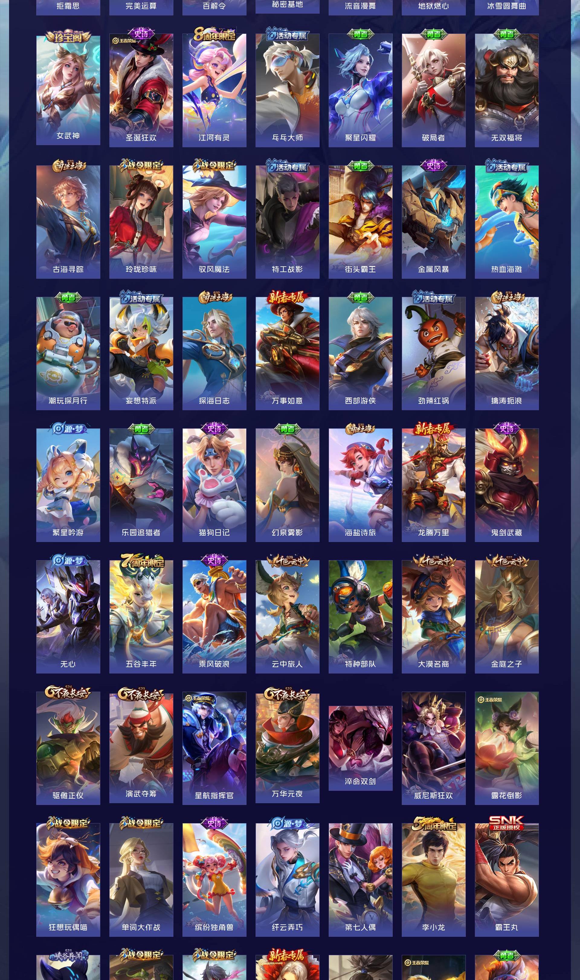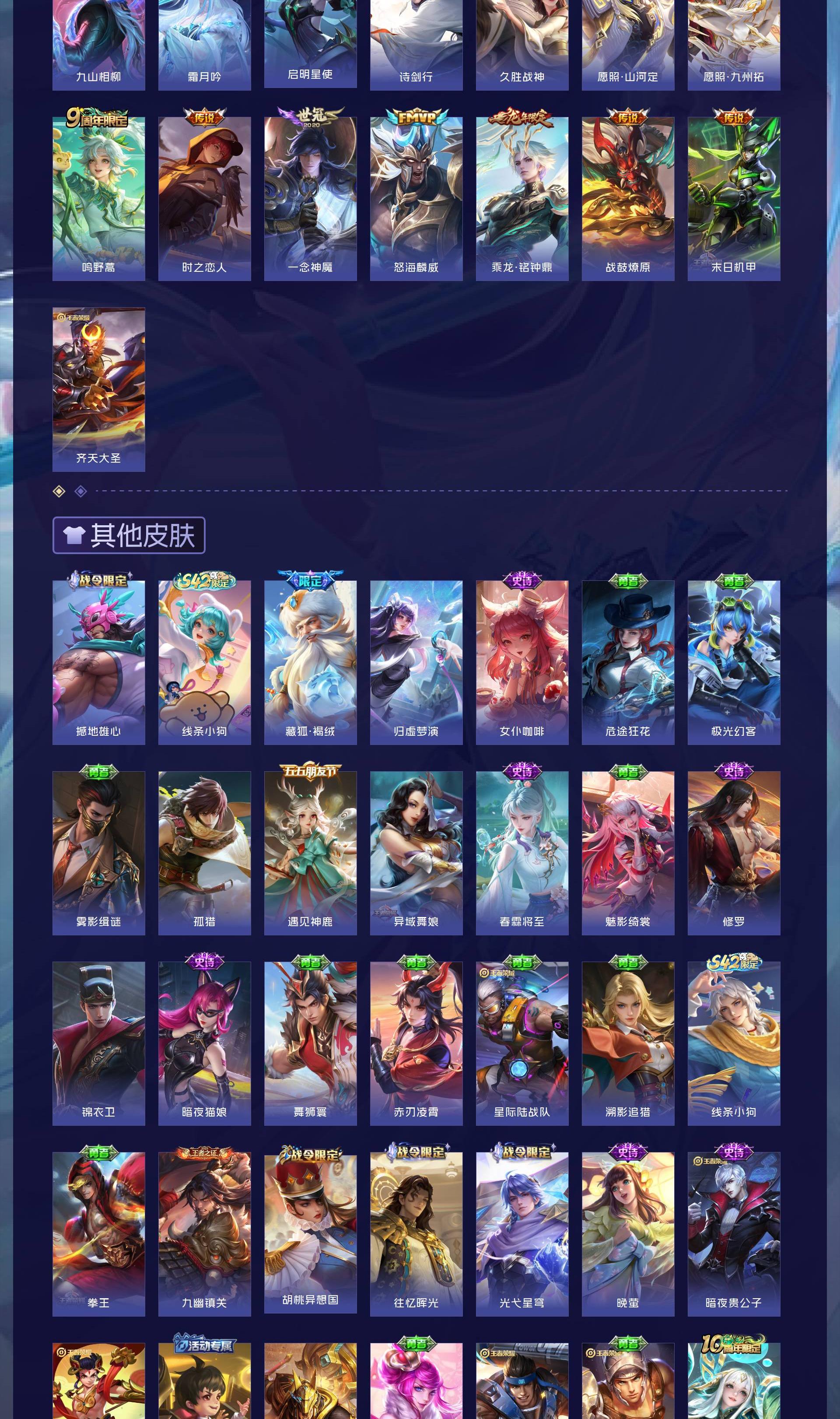 V8 皮肤354 英雄128 非凡王者 荣耀典藏2 无双皮肤2 珍品传说3 星传说2 传说22 其他皮肤332