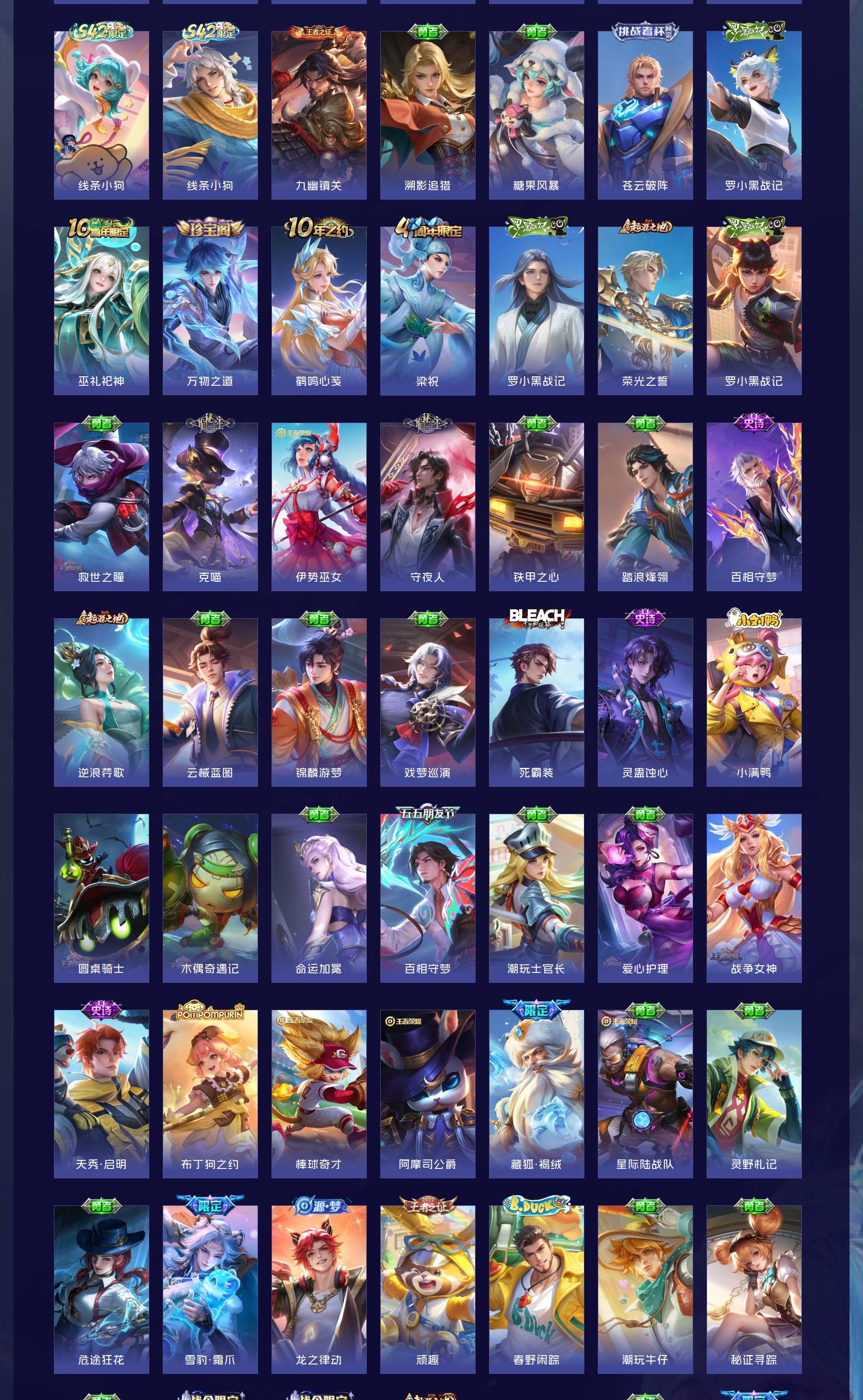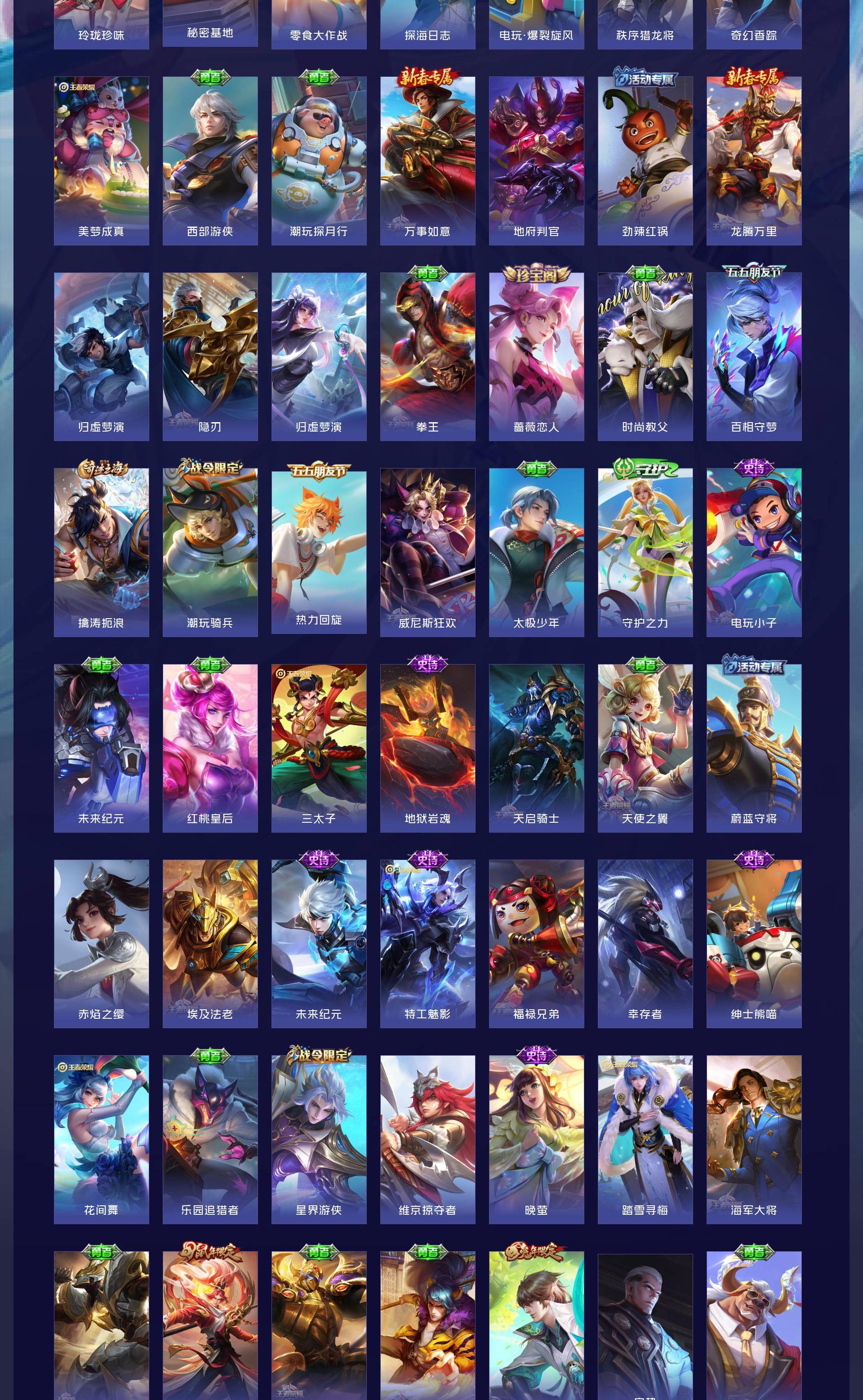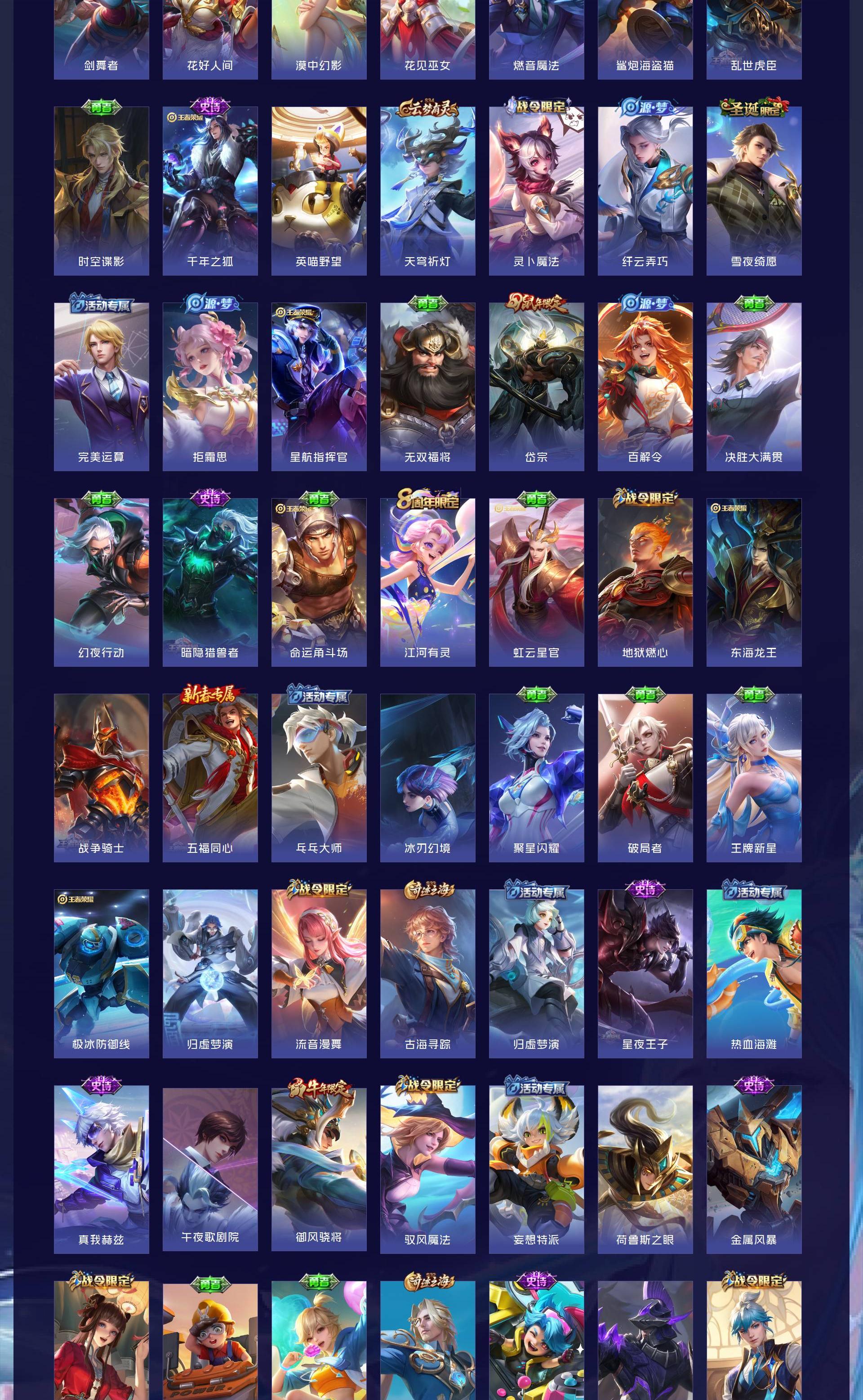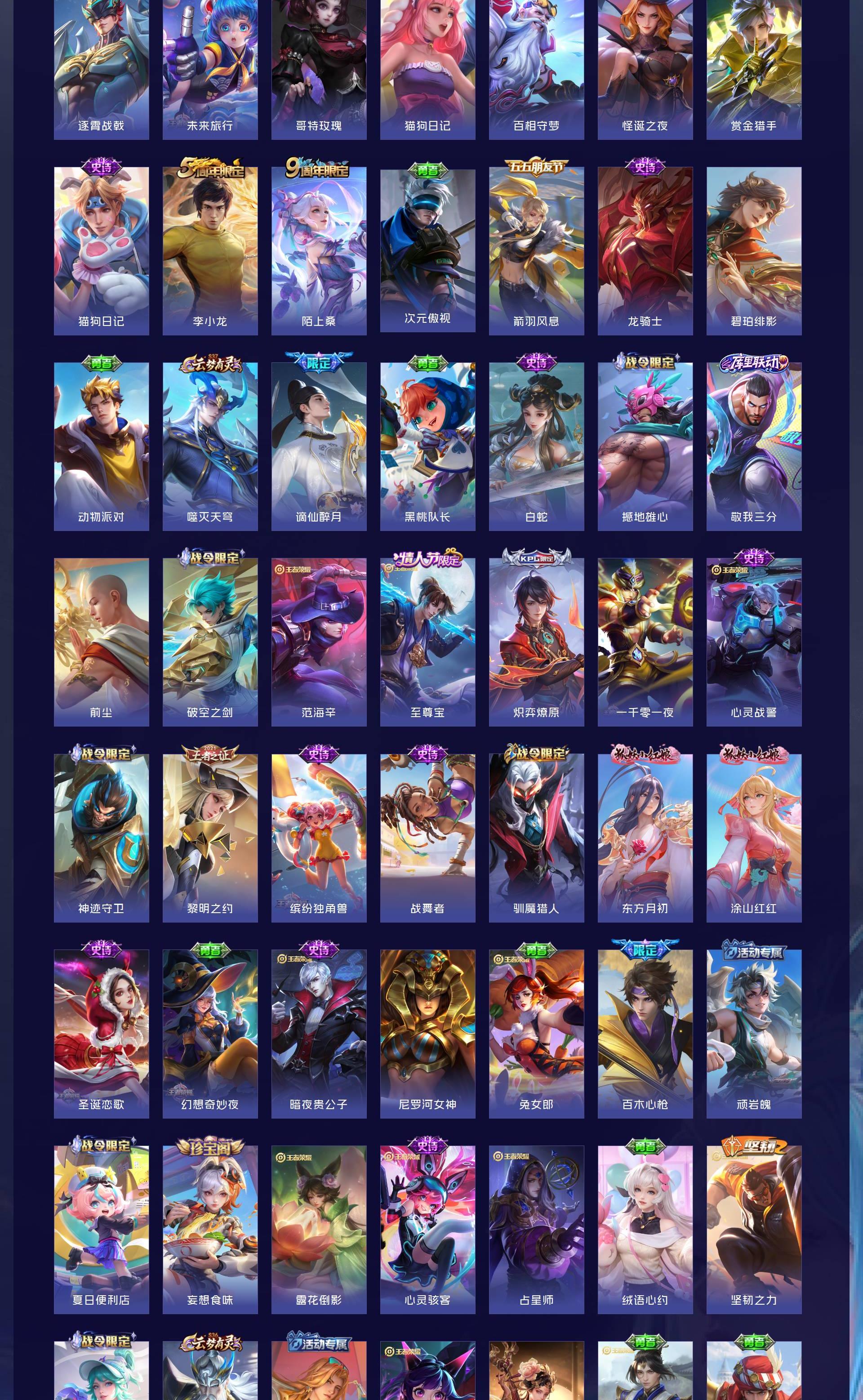 V9 皮肤440 英雄128 荣耀王者 荣耀典藏1 无双皮肤2 珍品传说3 星传说1 传说43 其他