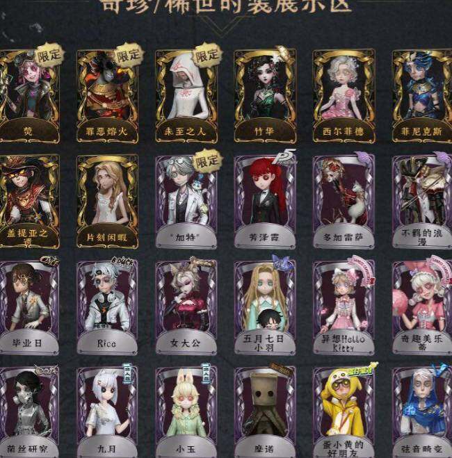 紫皮:加特 芳泽霞 多加雷萨 不羁的浪漫 毕业日 Rice 女大公 五月七日小羽 异想HelloKittt 奇趣美乐蒂 菌丝研究 九月 小玉 摩诺 蛋小黄的好朋友 弦音畸变 柱昔 归来者 流离的月光 桃面书生 笼中之蝶 致命温柔 冰上舞蹈 琥珀 月相 入殓师-记忆之骑 校对人 沙滩漂移 钨 迷迭香 神圣阿斯