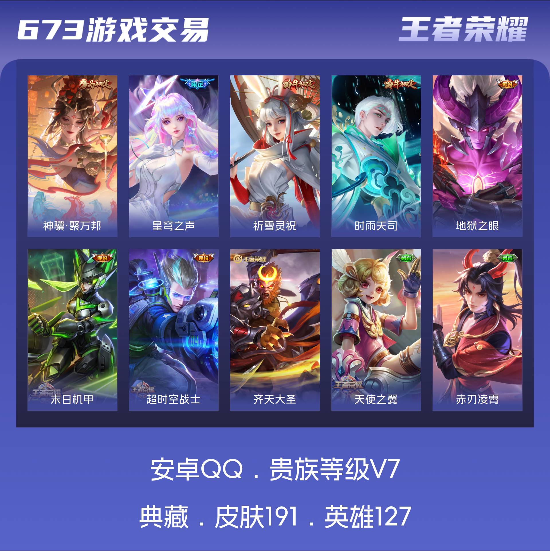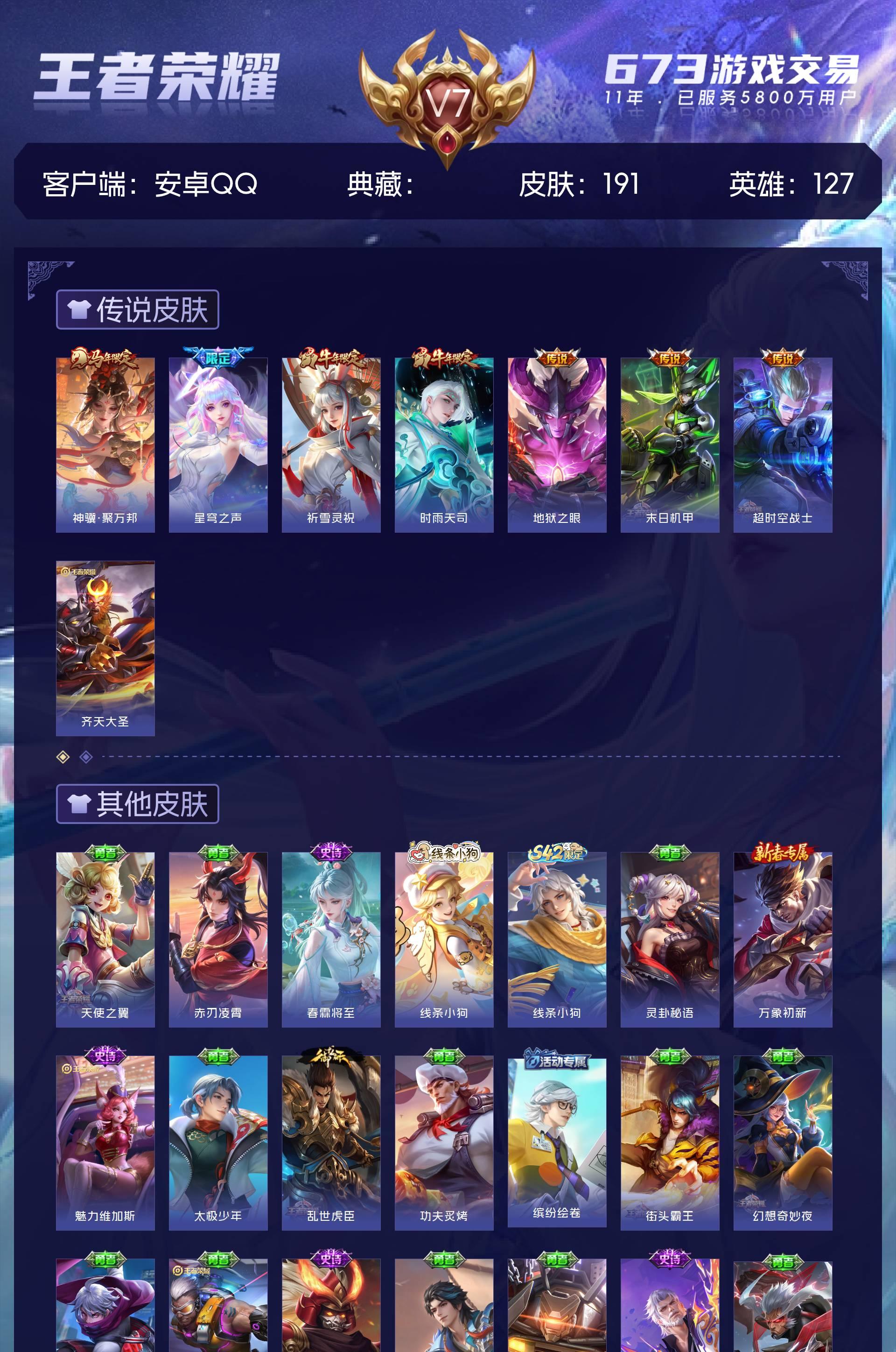 V7 皮肤191 英雄127 永恒钻石 星传说1 传说8 其他皮肤190