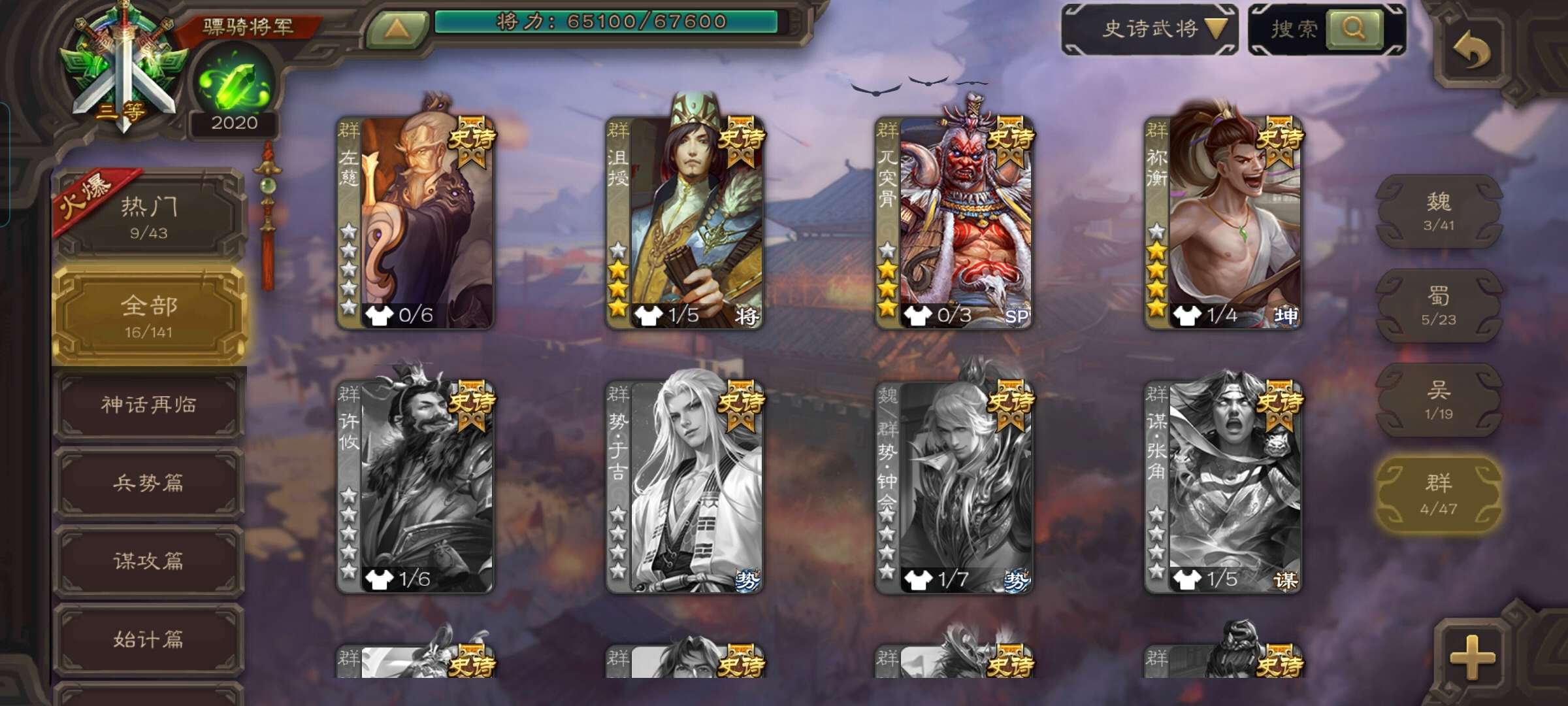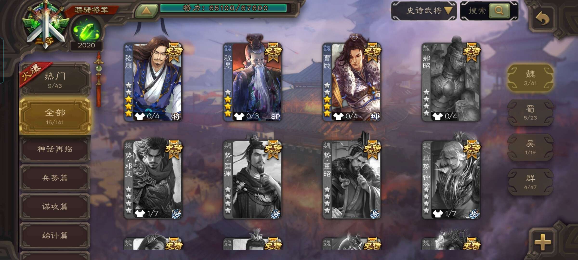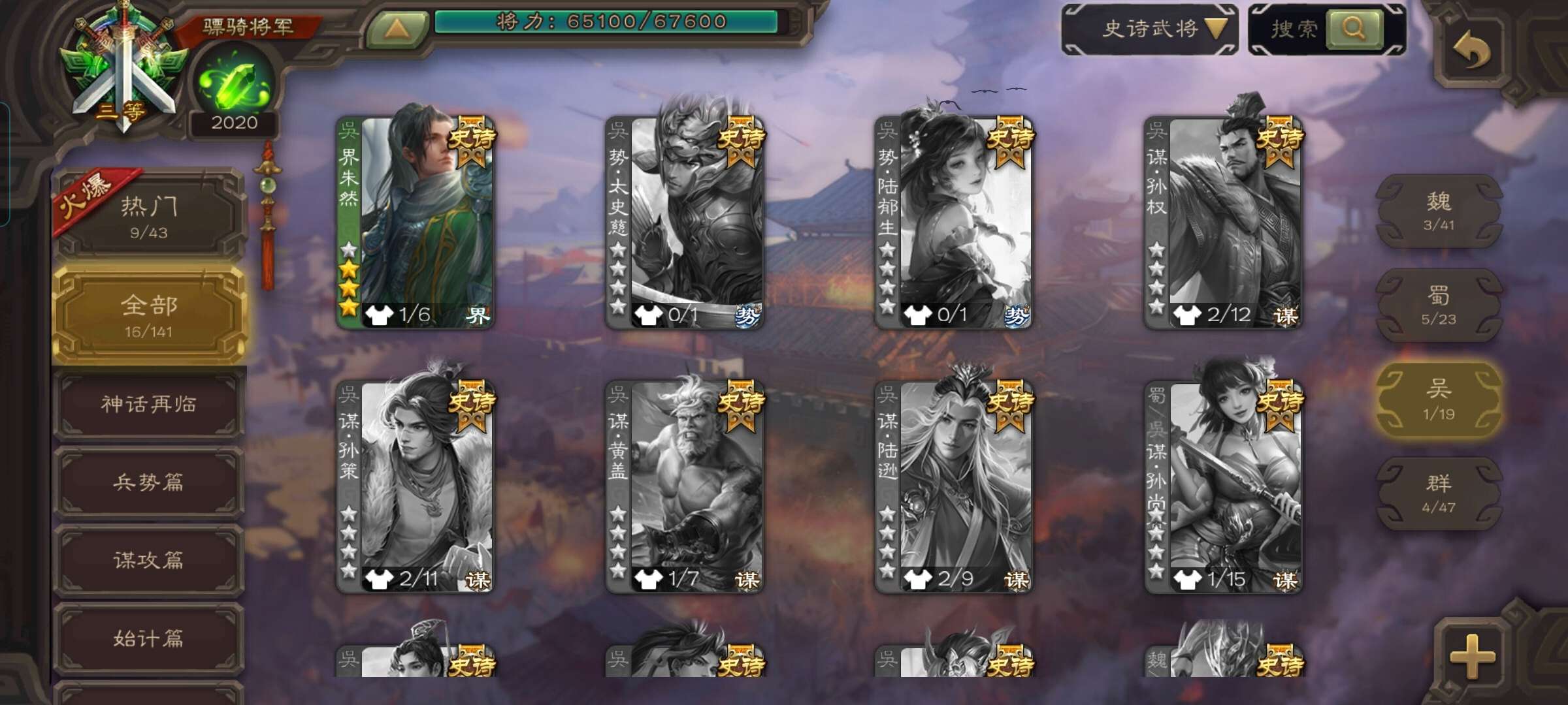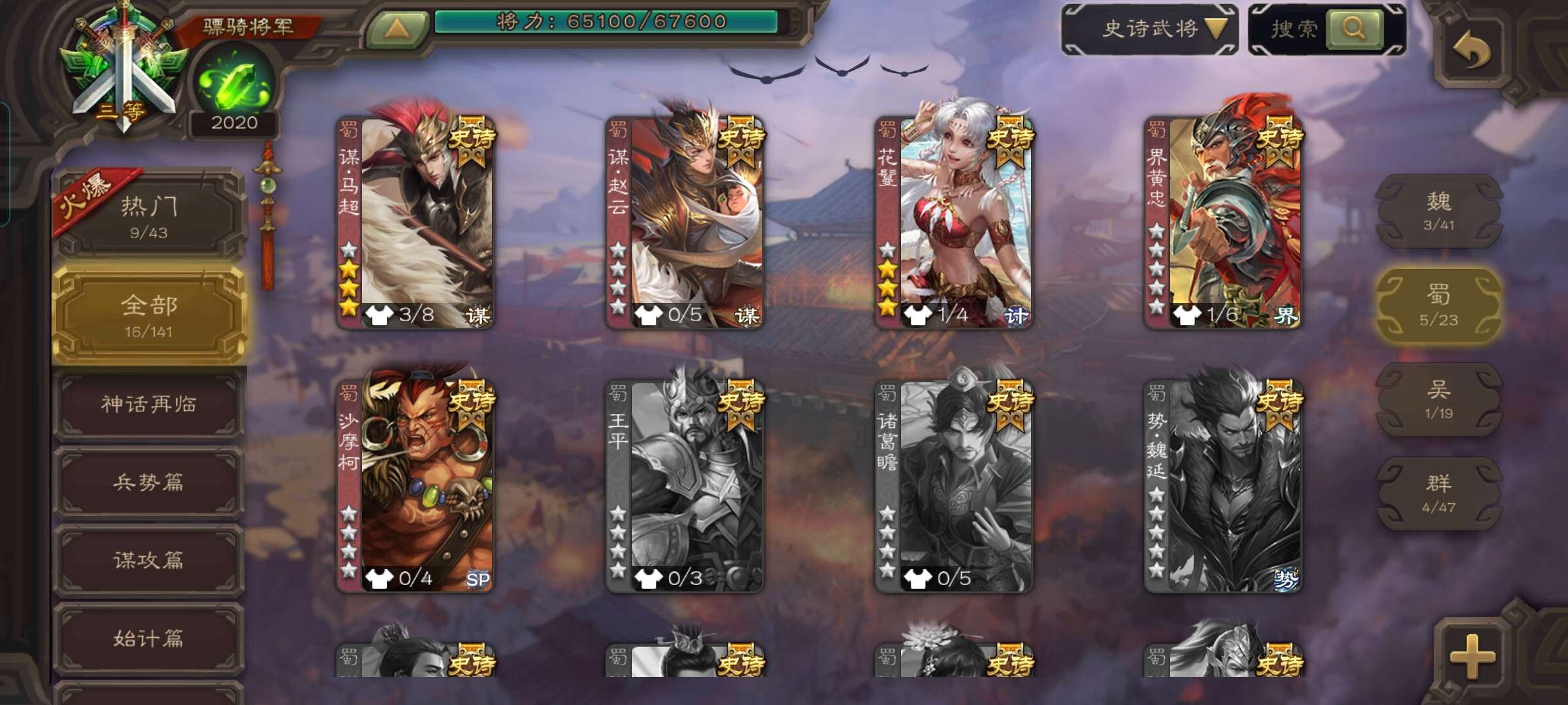 史诗武将数量: