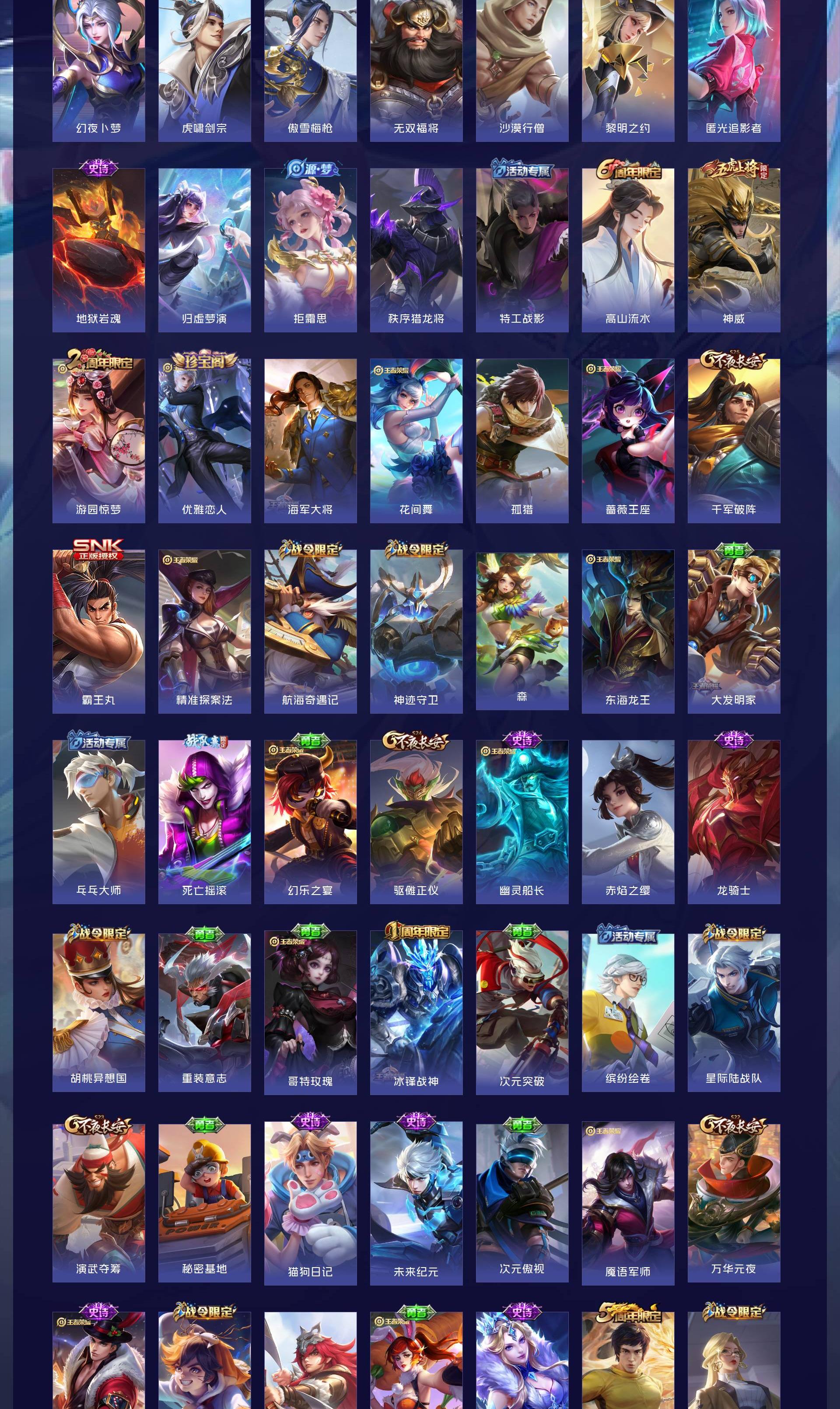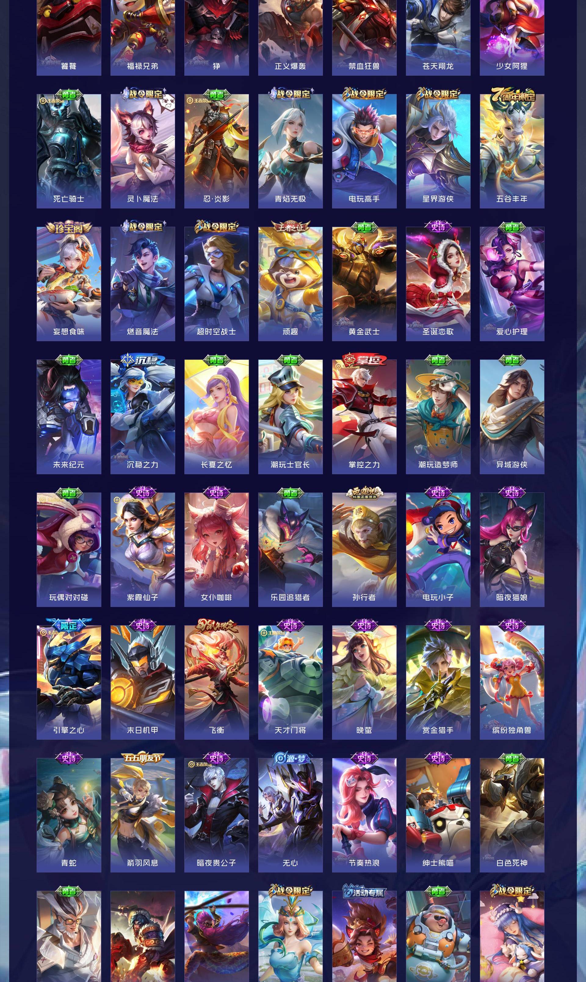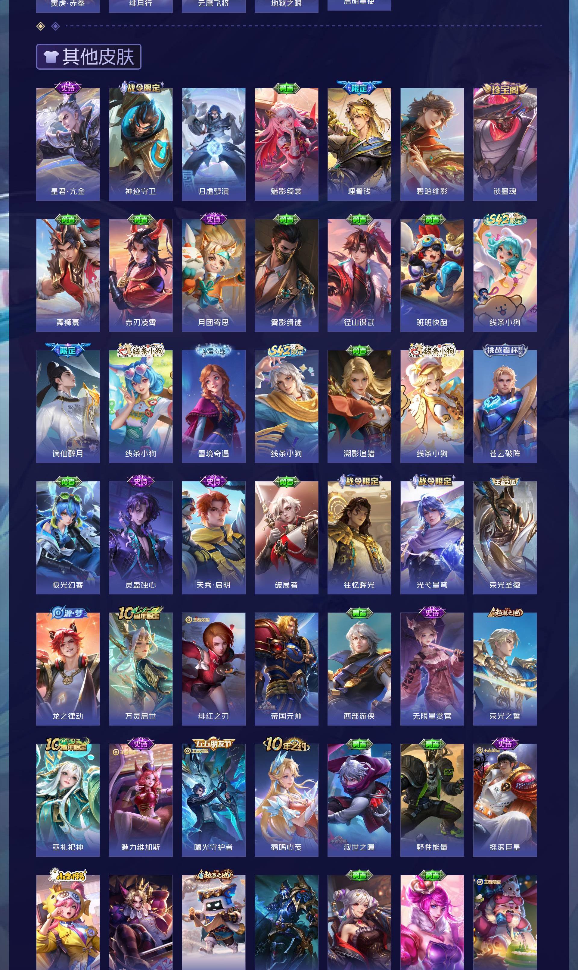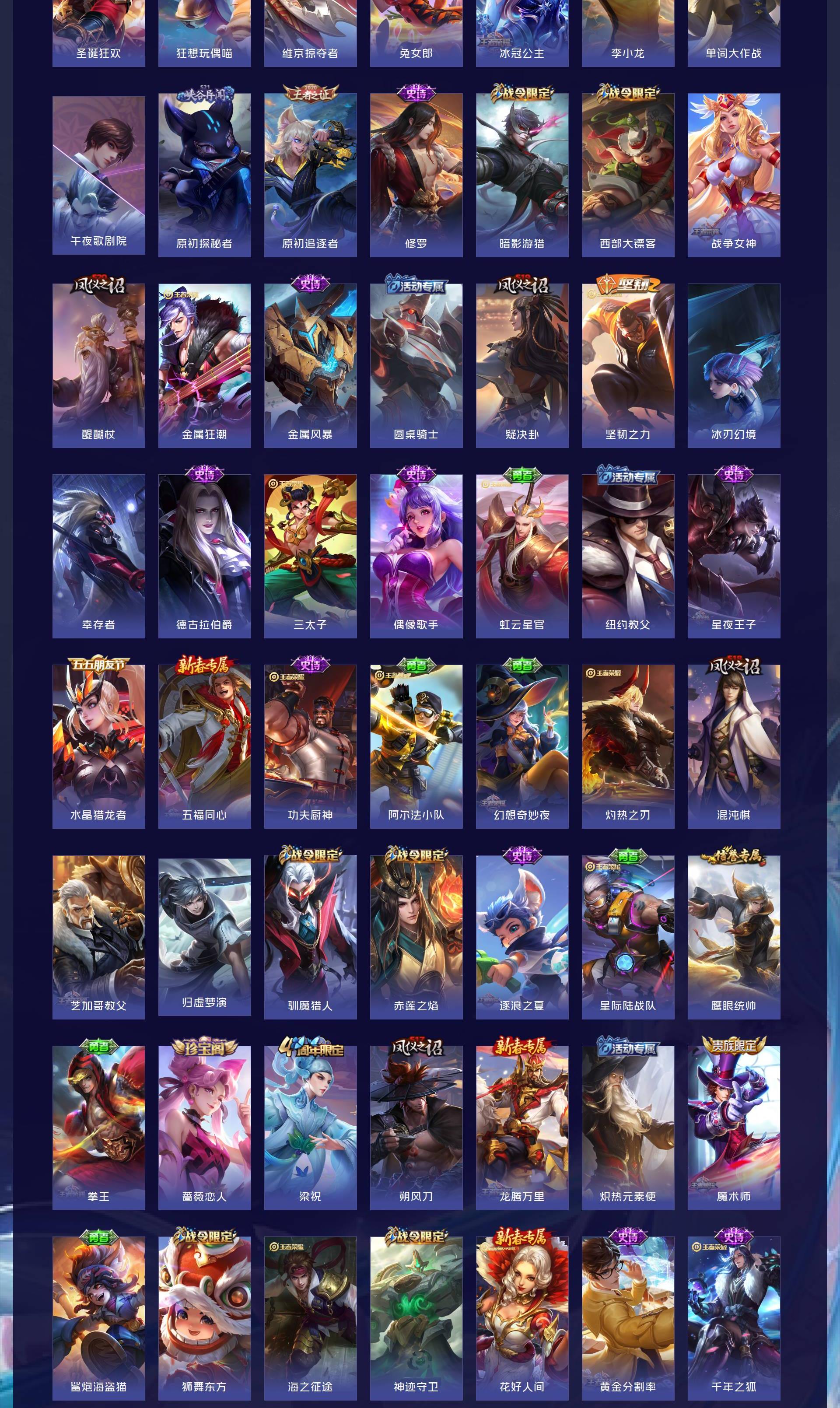 V8 皮肤363 英雄128 至尊星耀 荣耀典藏3 无双皮肤1 传说19 其他皮肤346