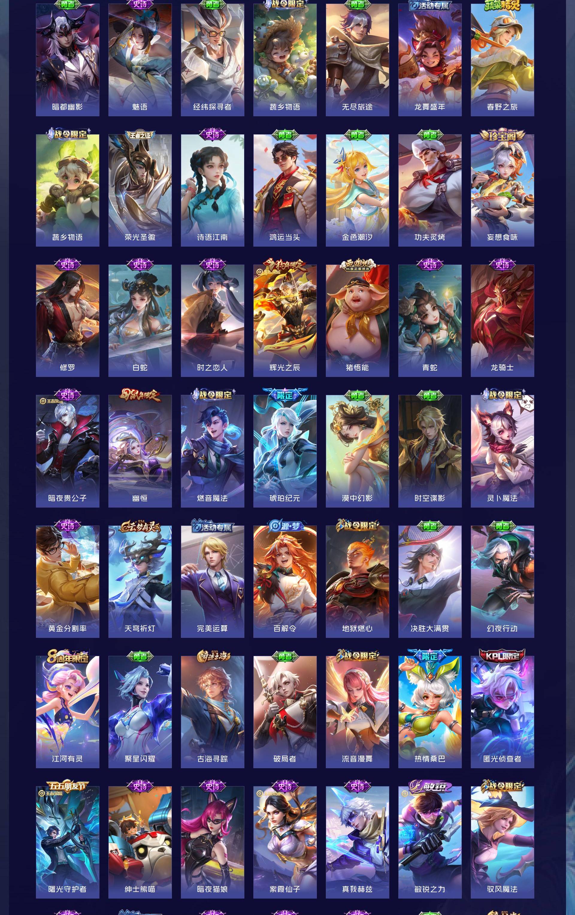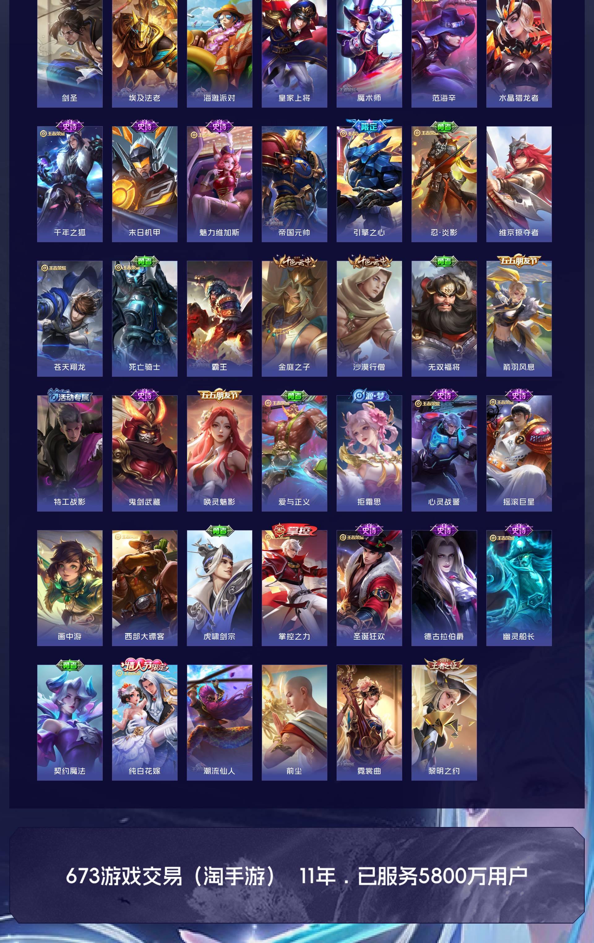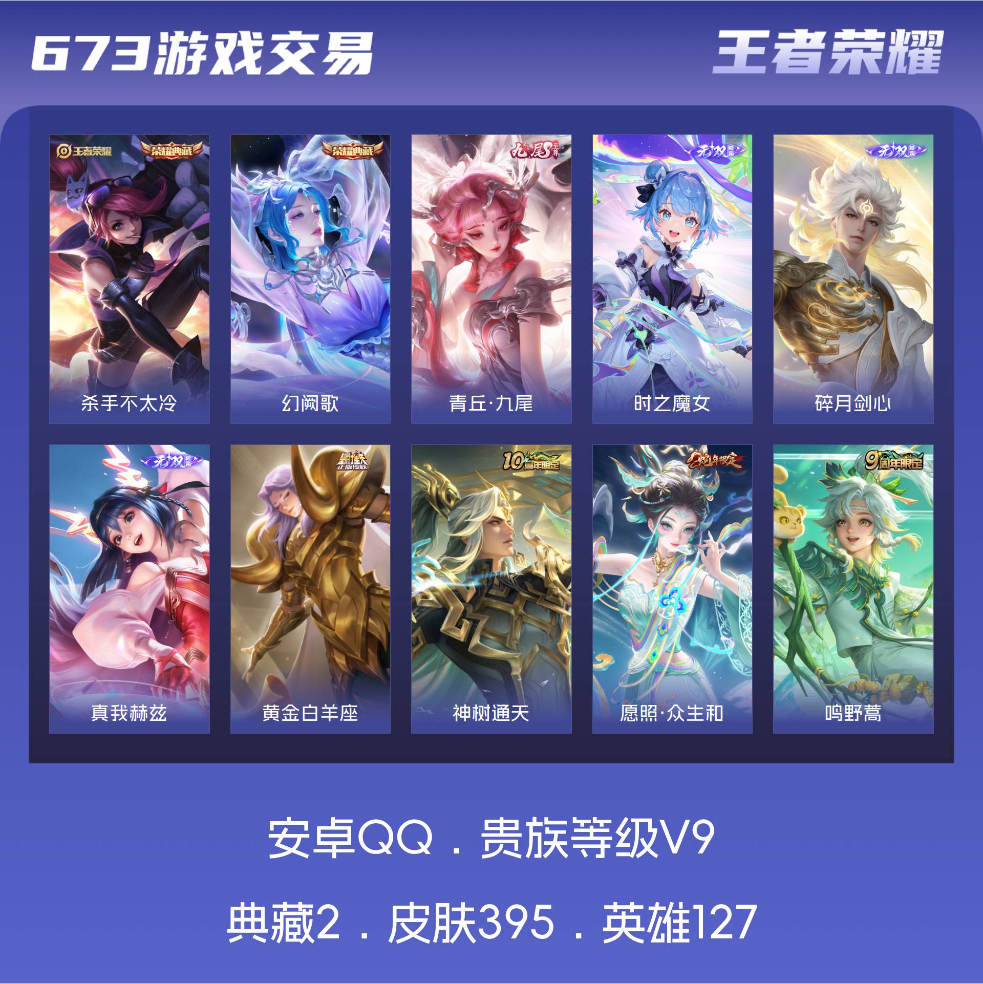 V9 皮肤395 英雄127 非凡王者 荣耀典藏2 无双皮肤4 传说26 其他皮肤370