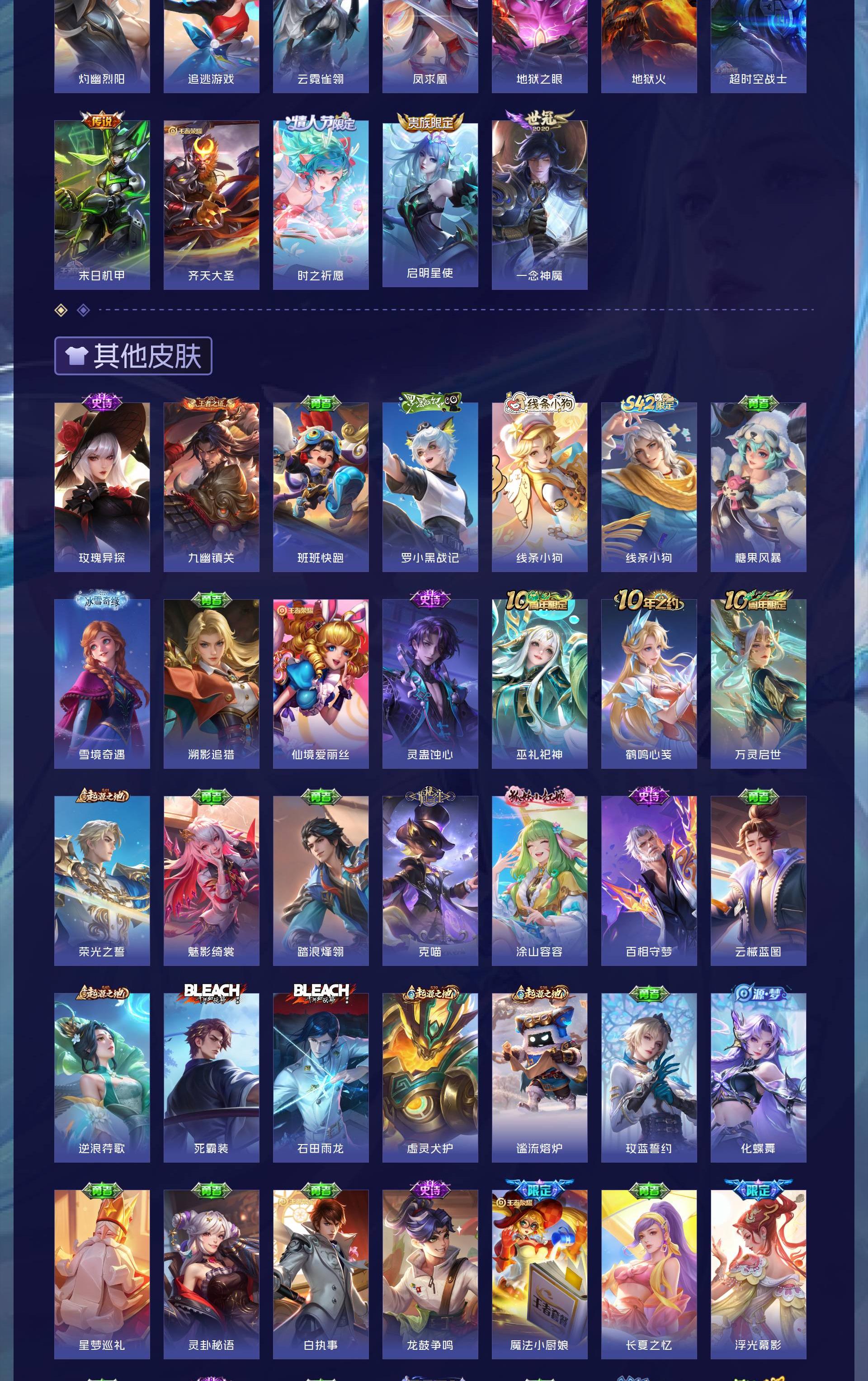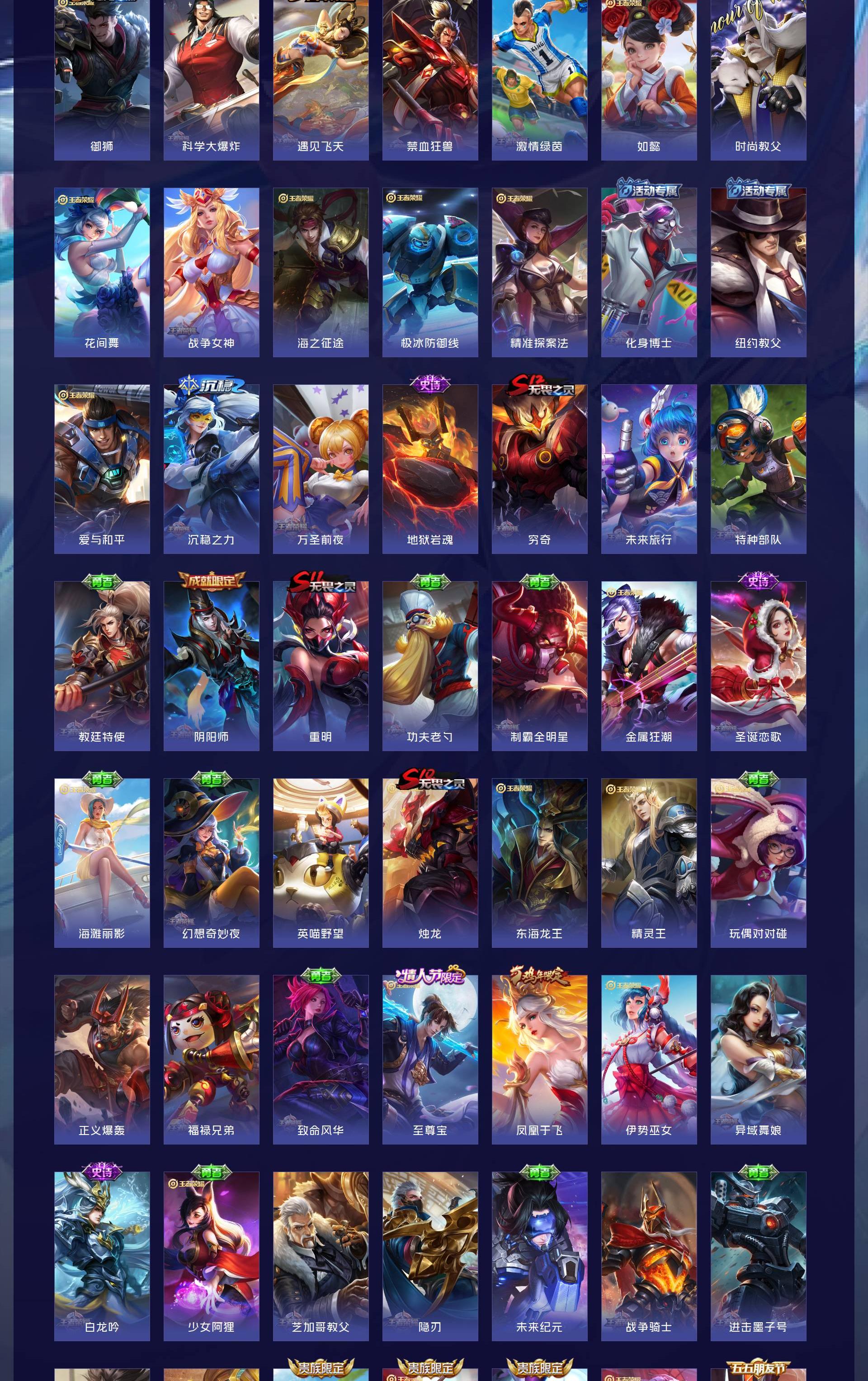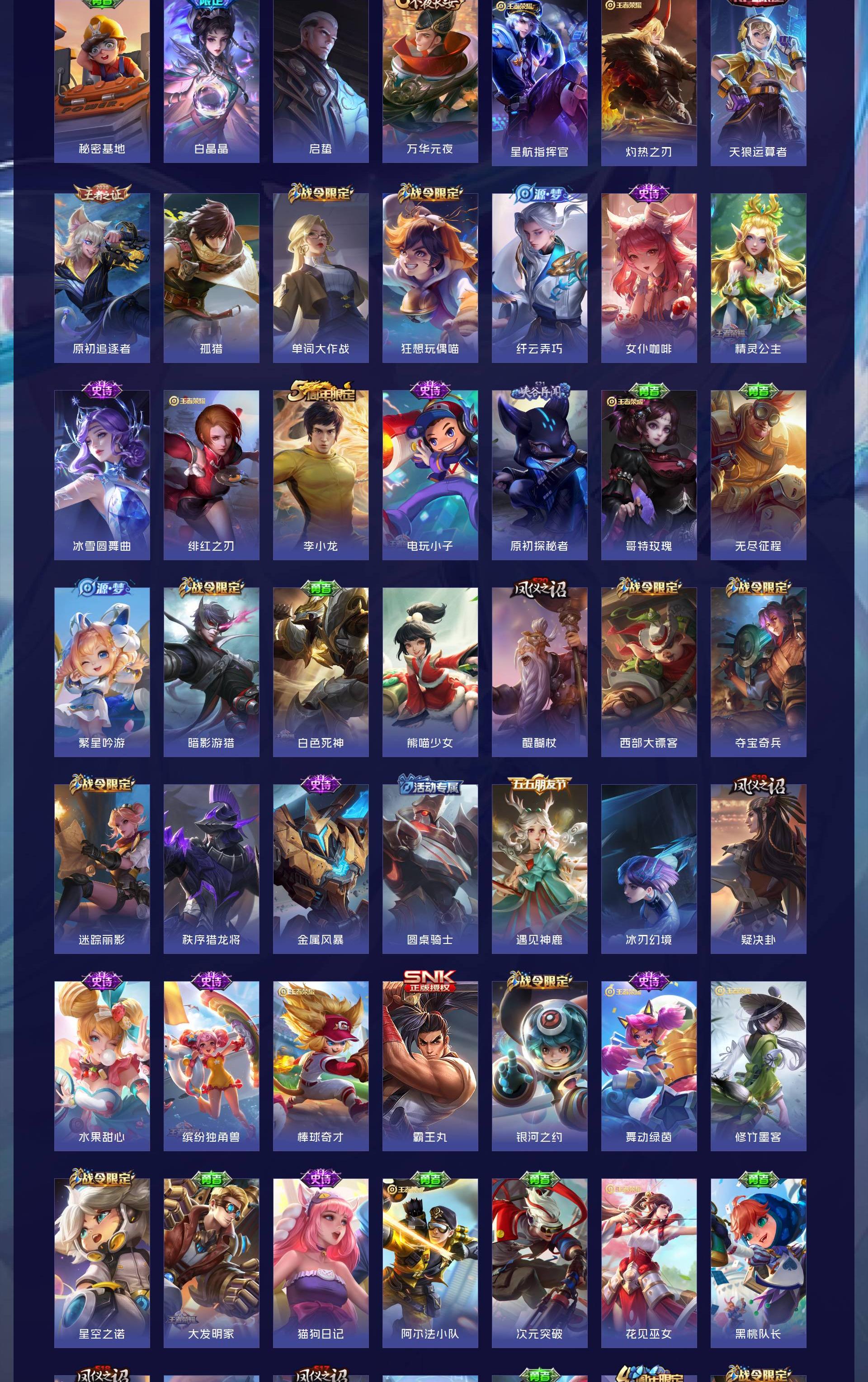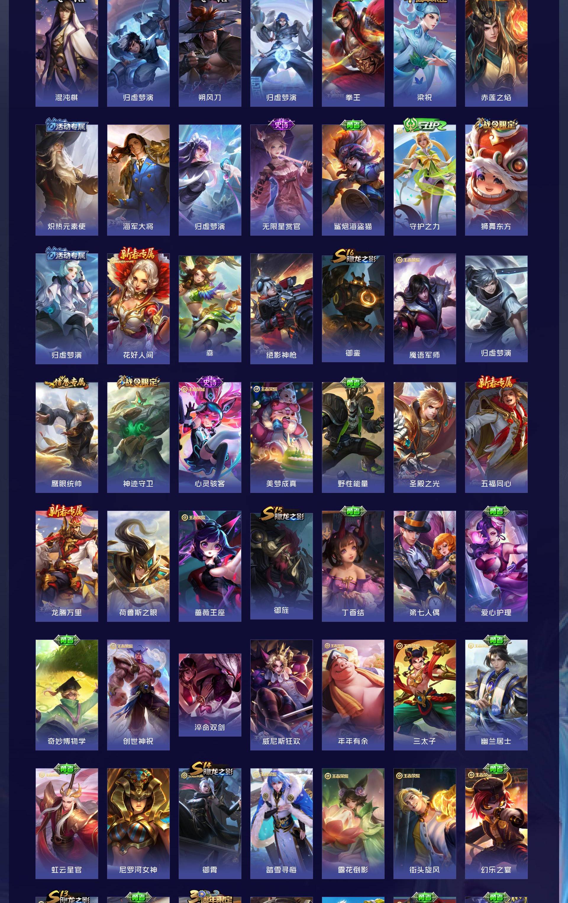 V9 皮肤395 英雄127 非凡王者 荣耀典藏2 无双皮肤4 传说26 其他皮肤370