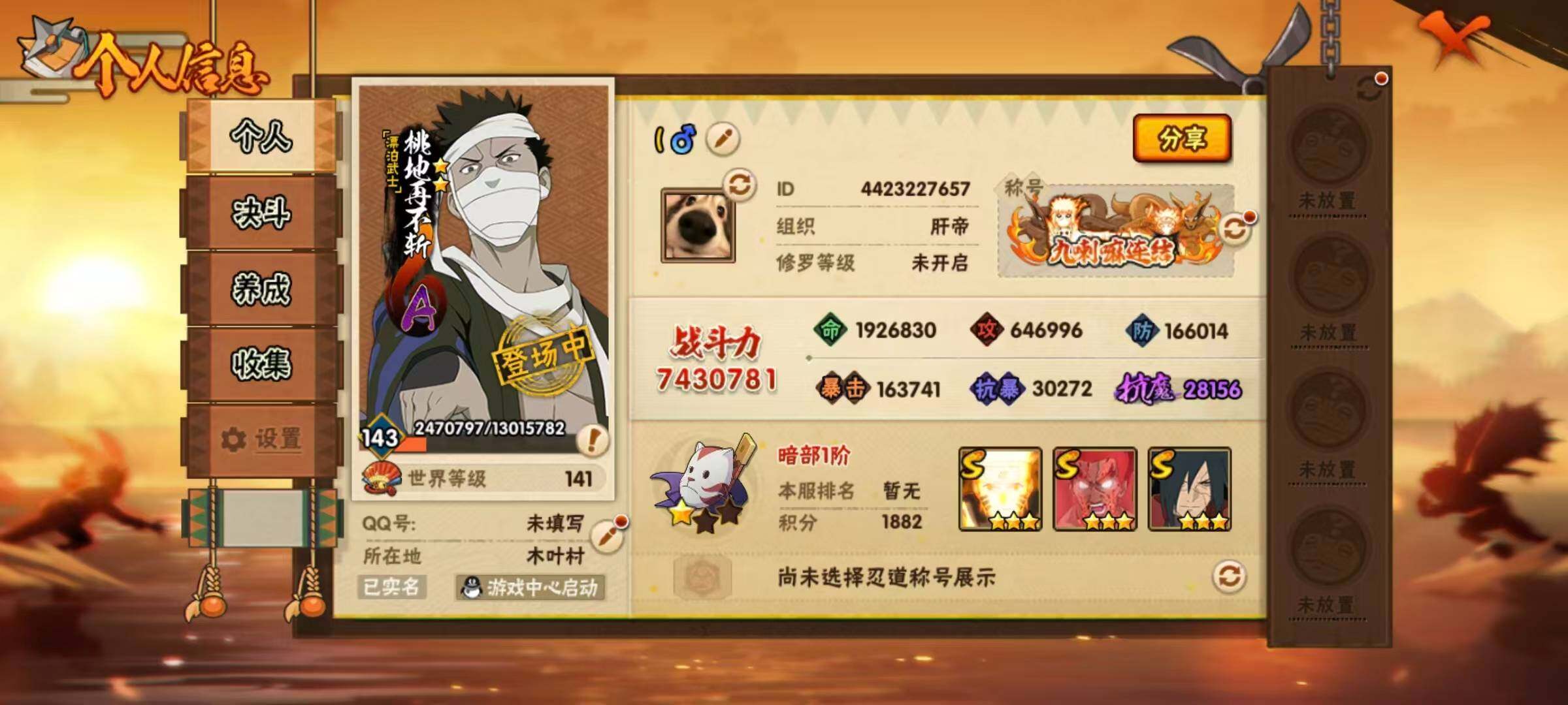 17S级忍者数-38A级忍者数【S级忍者】:宇智波斑「秽土转生·解」(3星),
