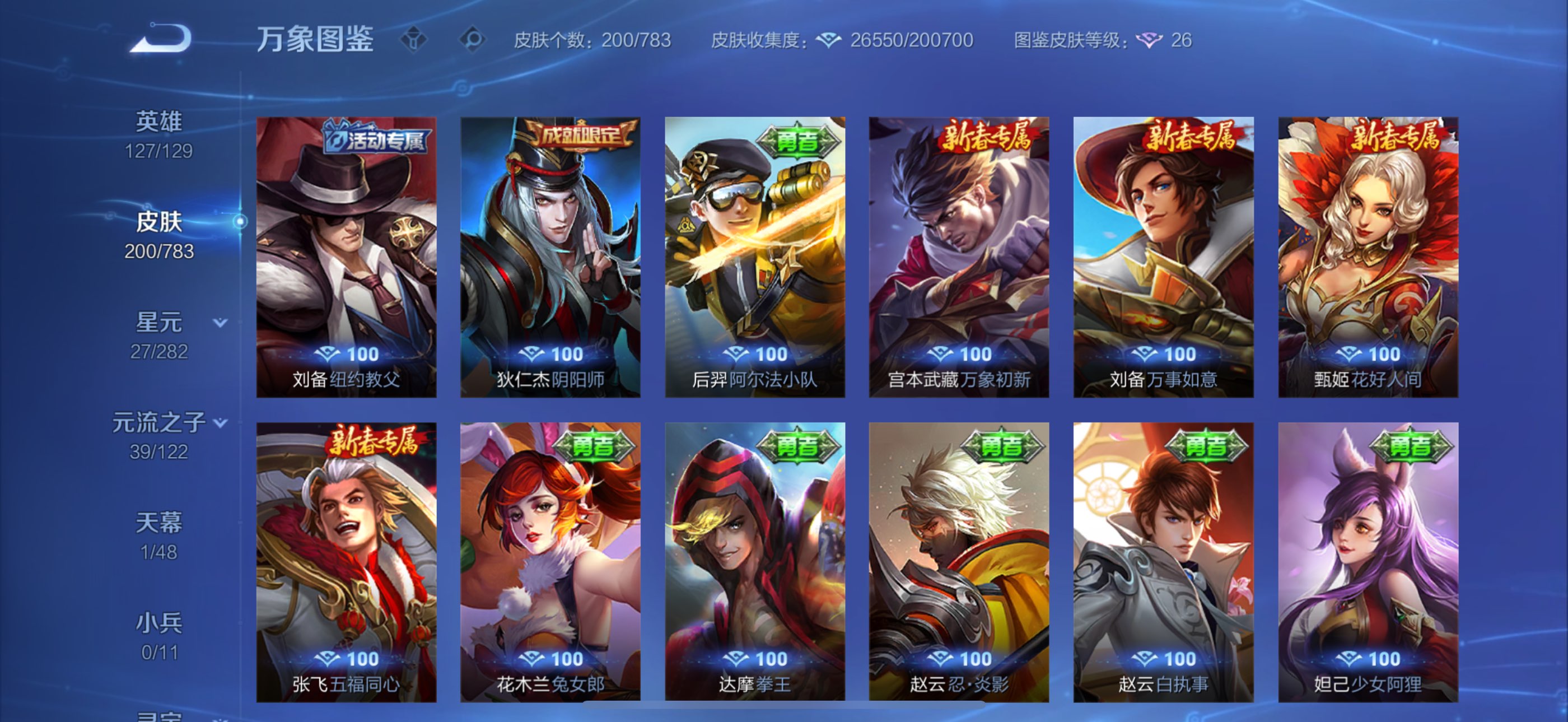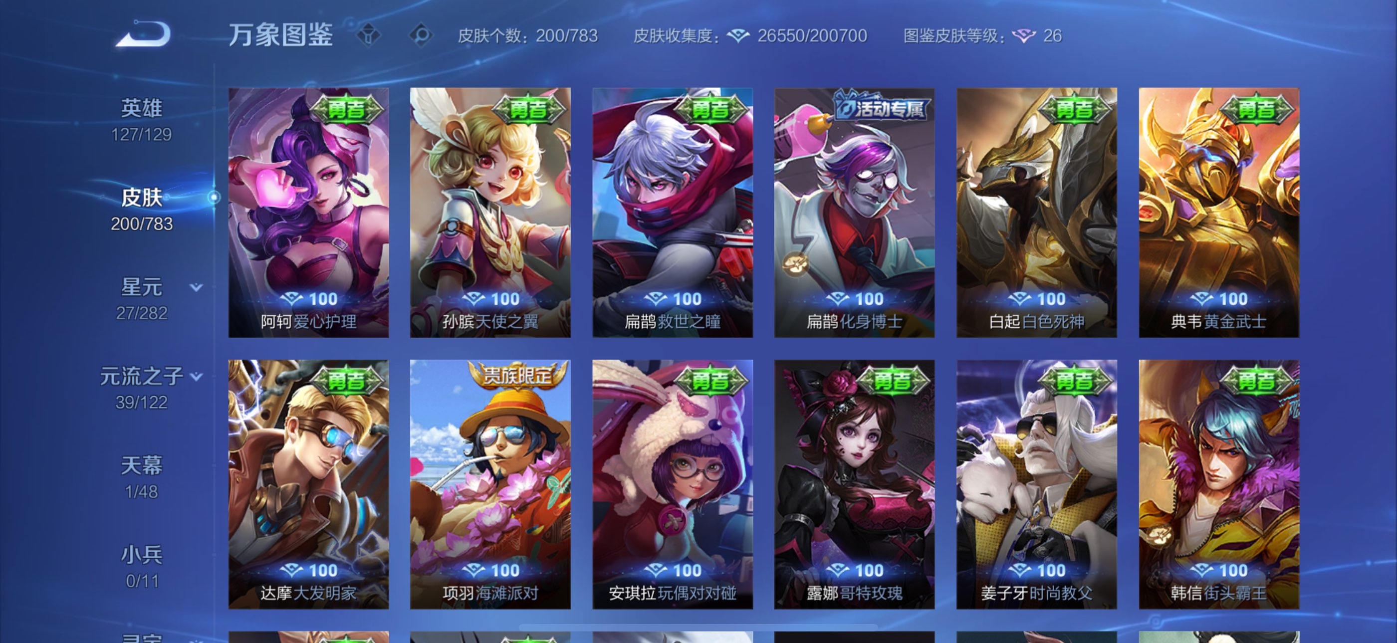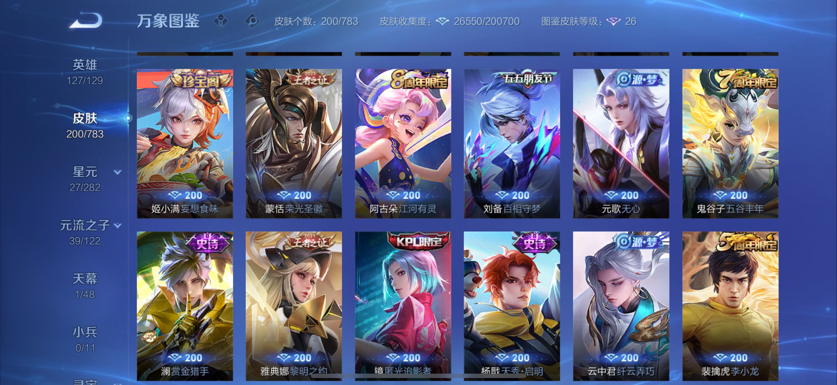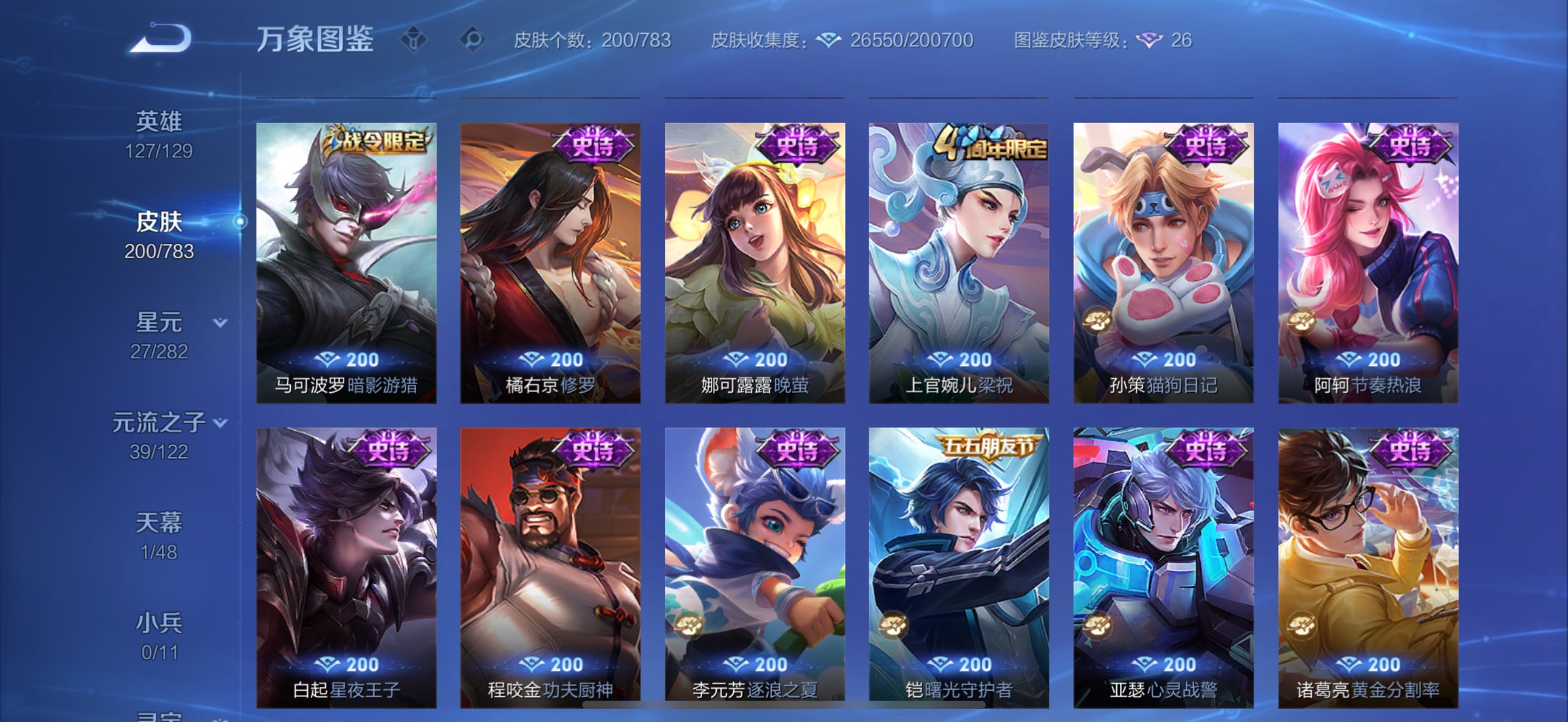 1典藏 8传说 48史诗 一共200个皮肤 3张改名卡 不可以二次,没有***。可以换绑,喜欢直接买
