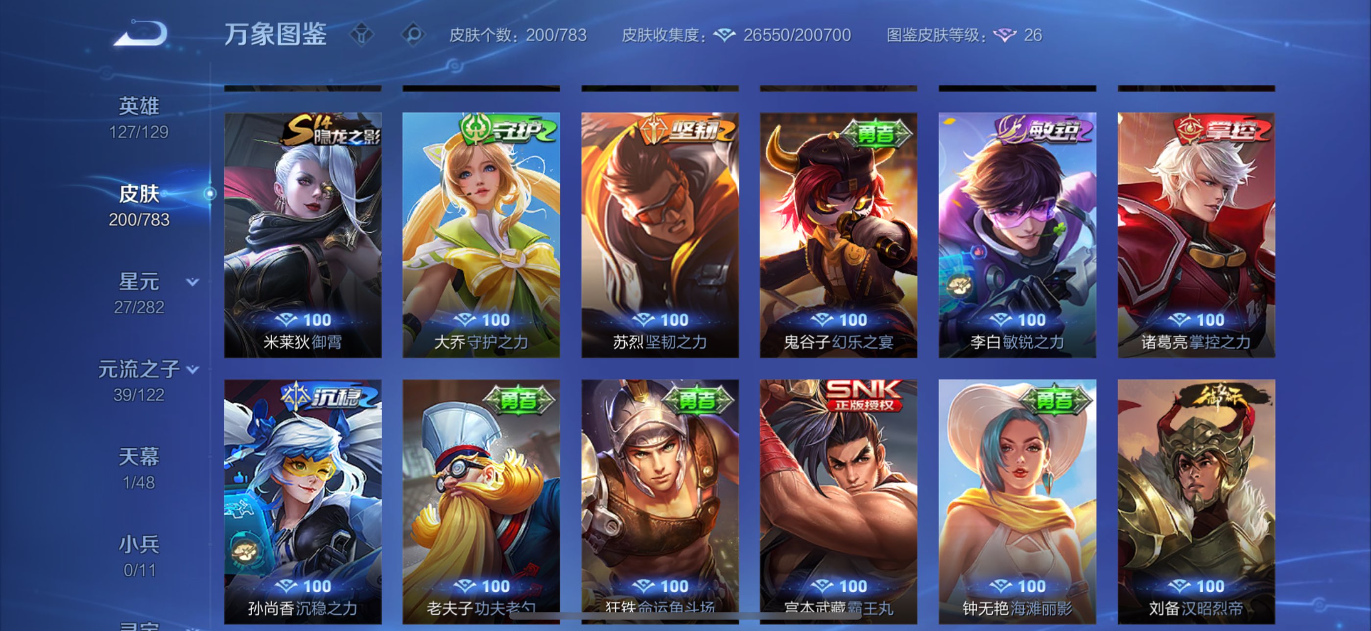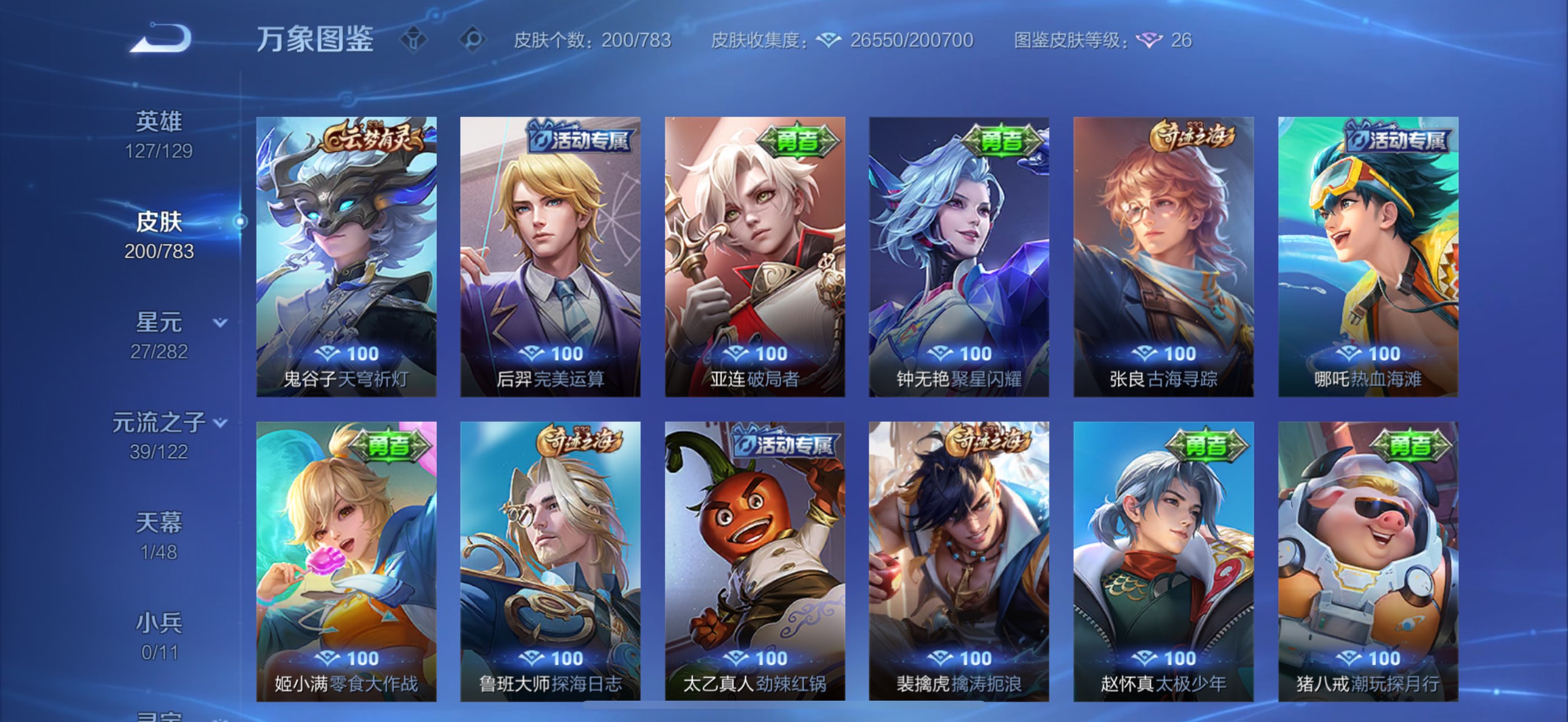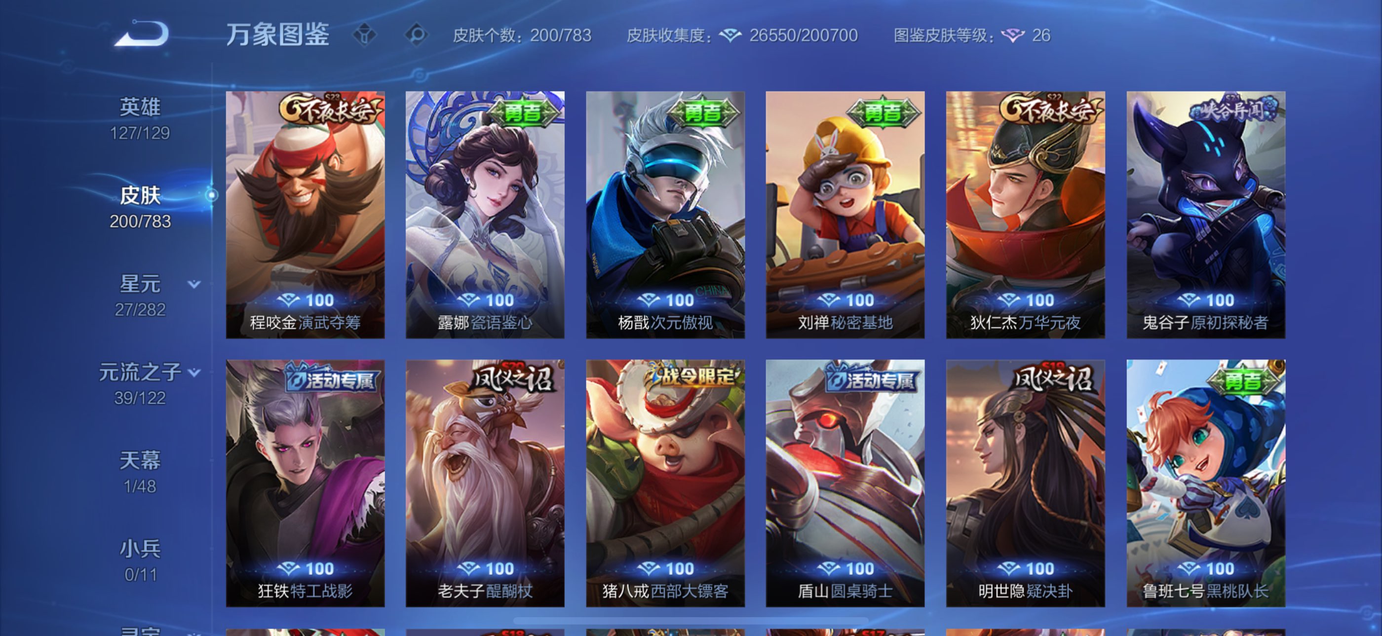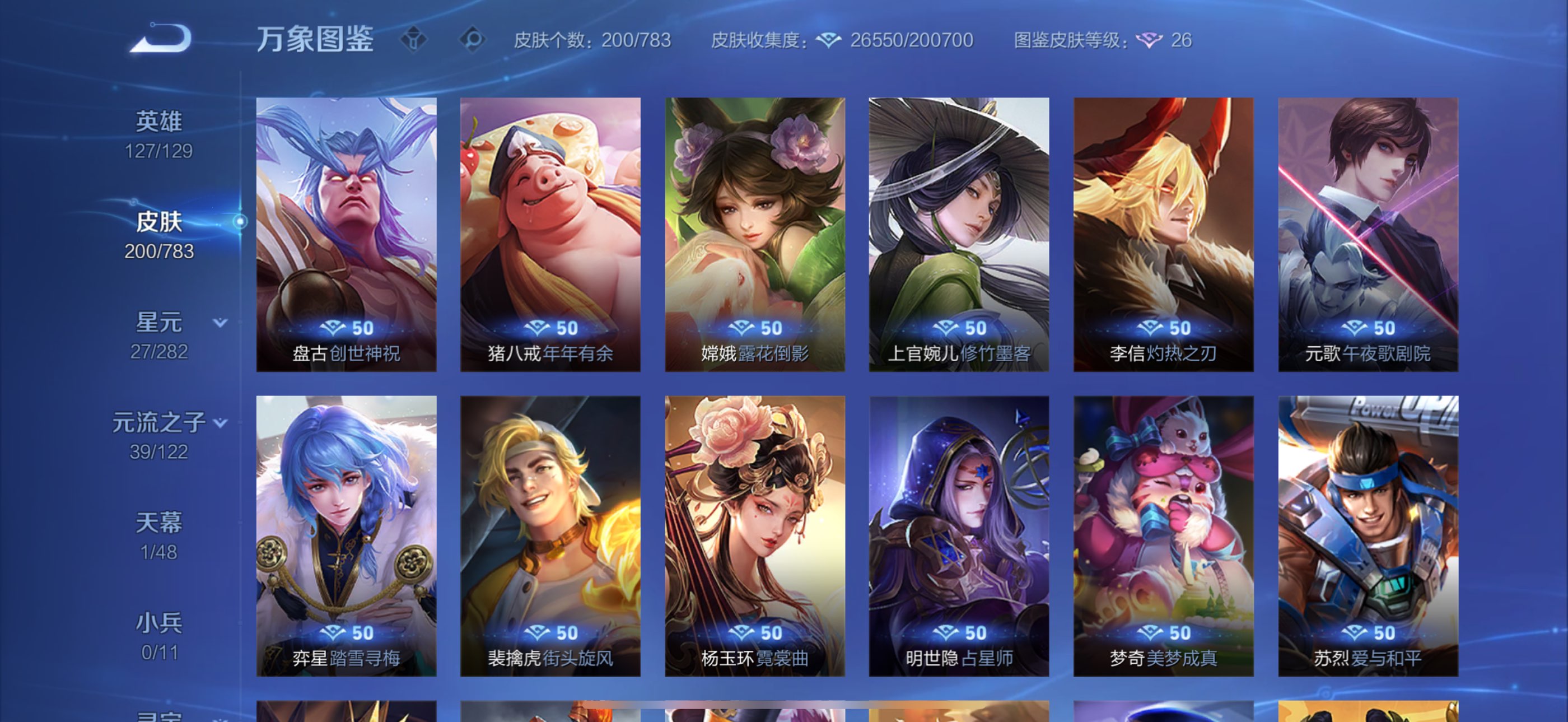 1典藏 8传说 48史诗 一共200个皮肤 3张改名卡 不可以二次,没有***。可以换绑,喜欢直接买