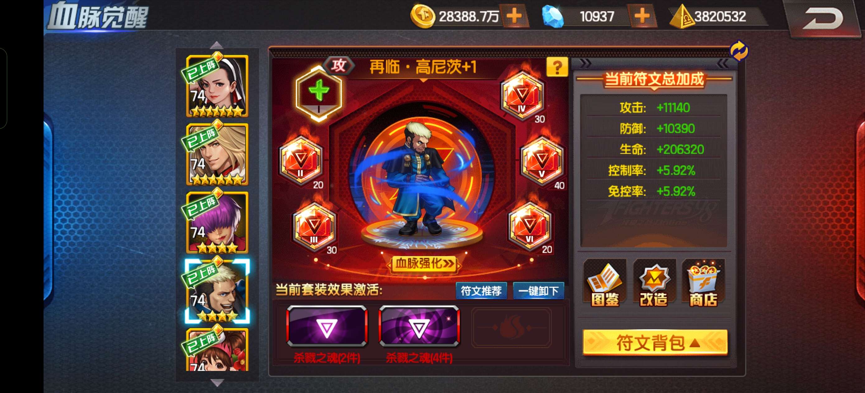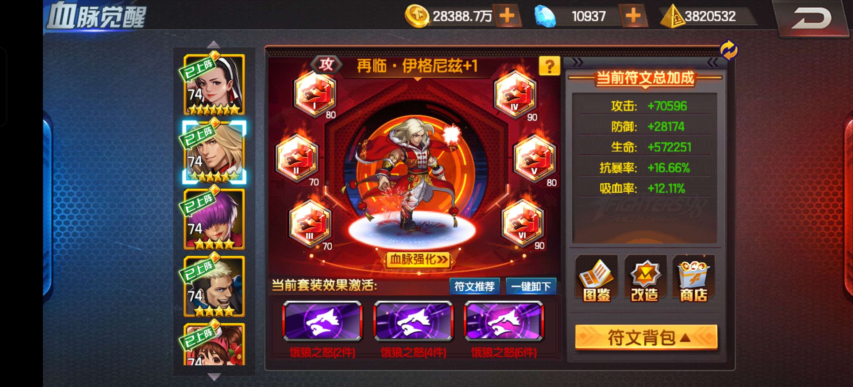 905新区,再临一哥6门,一套饿狼,杀戮红符文,159万能碎片,红篮钻加起来1万5,详细看图