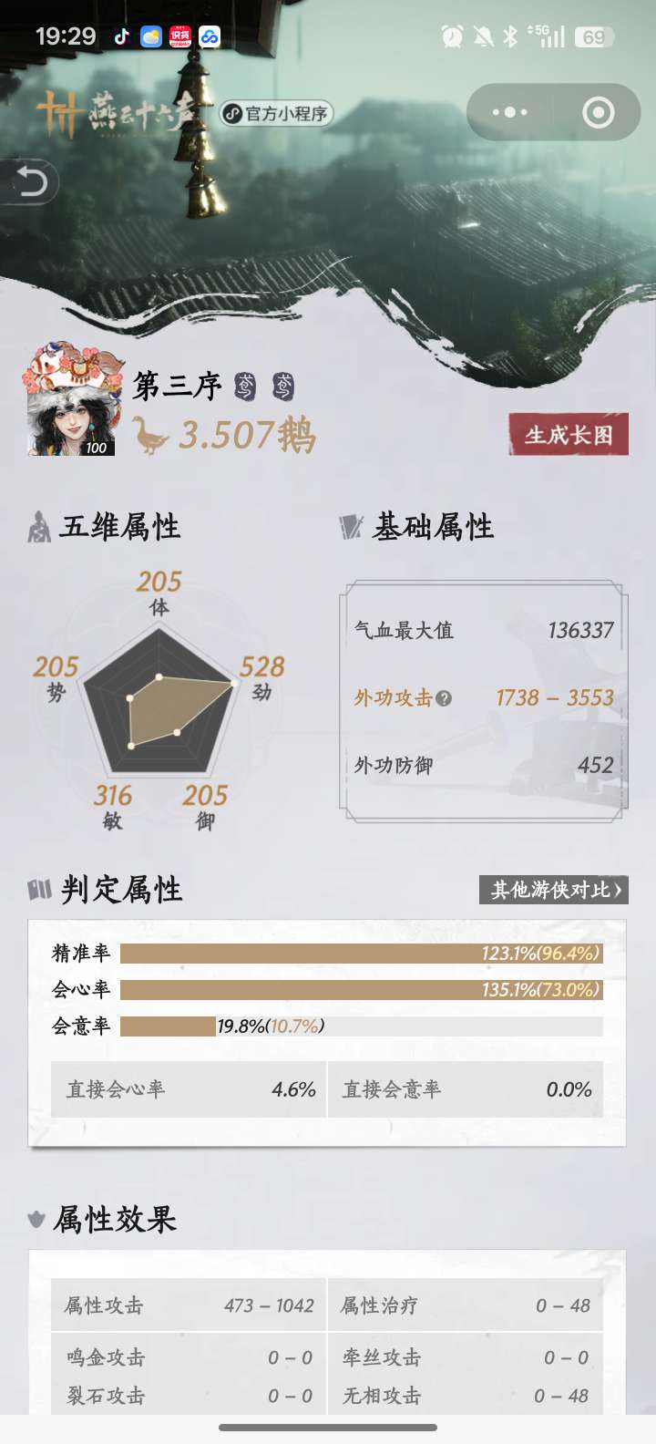 燕云满级3.5鹅拳甲女号,蜀戏春,拳甲特效,装备还行面板小毕业