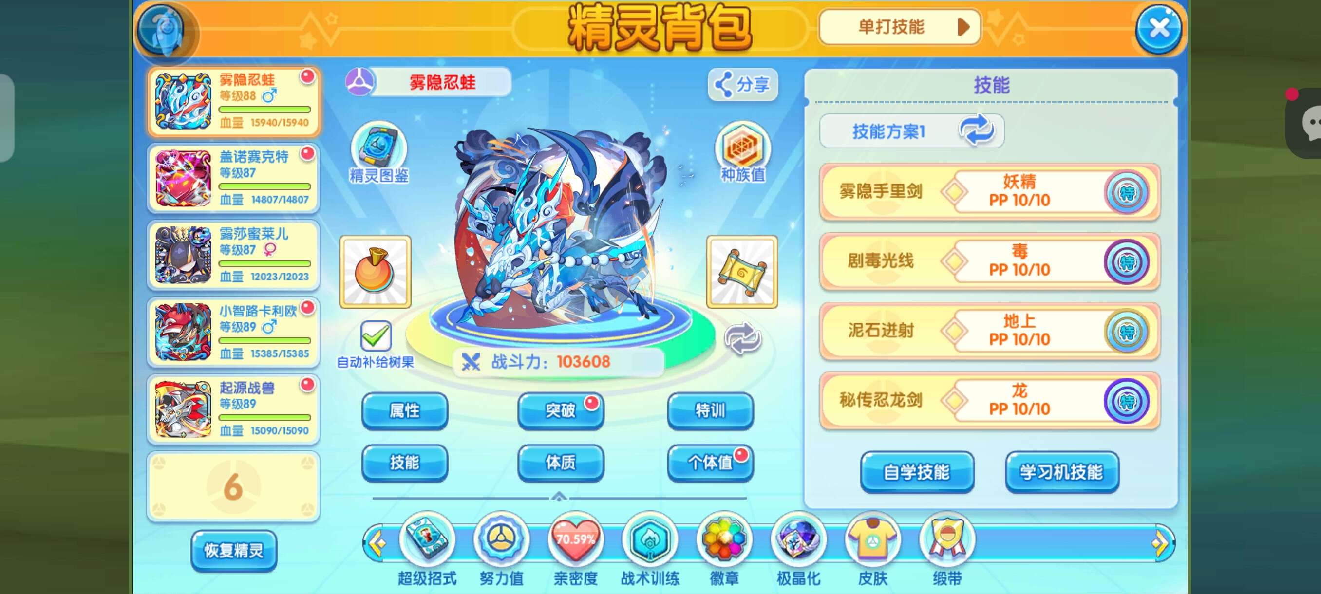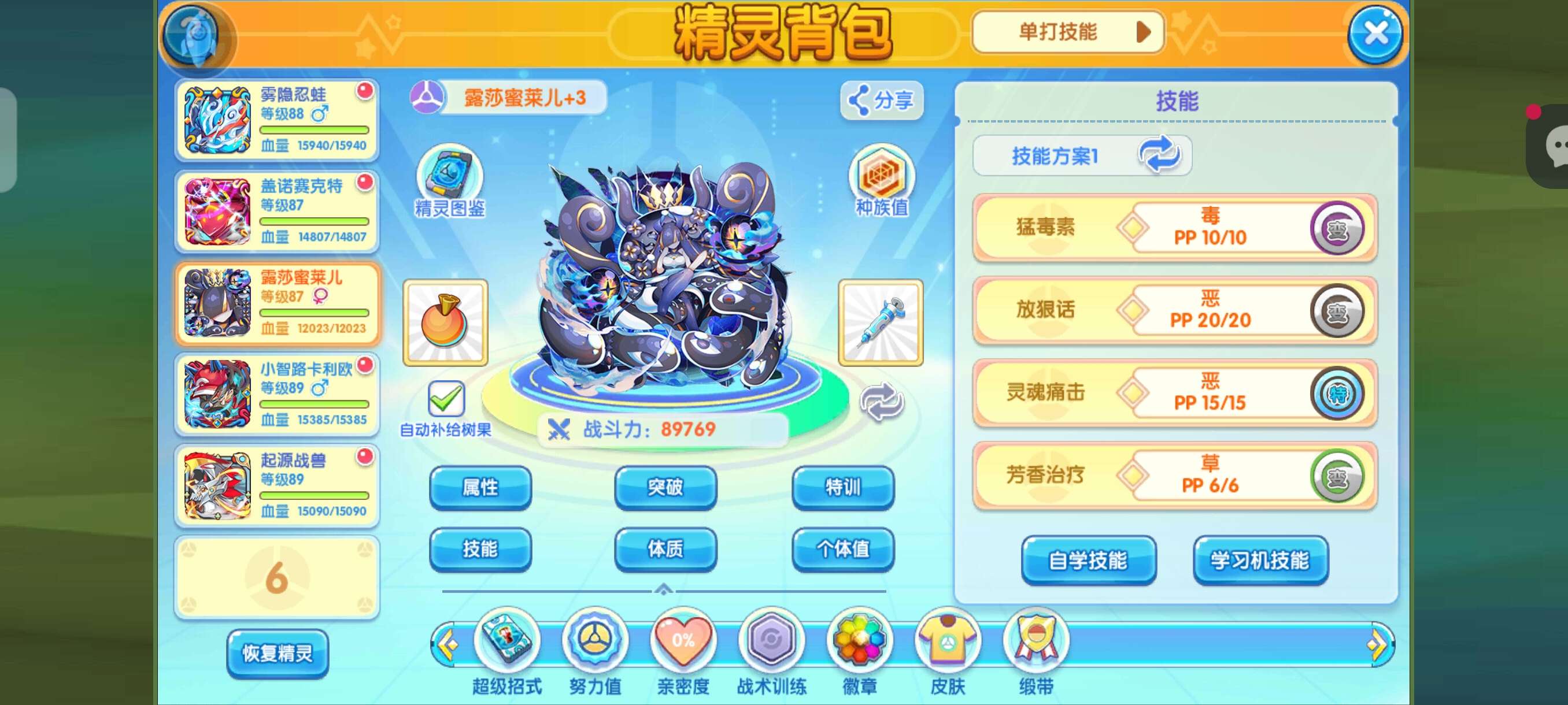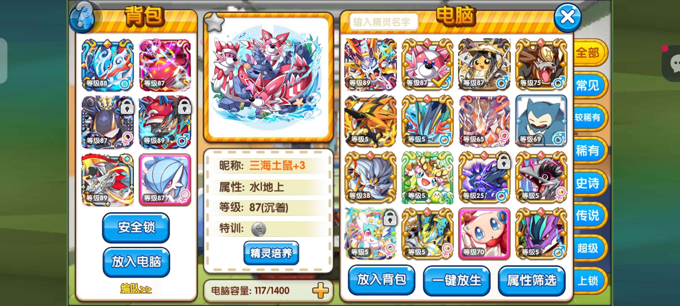 89级贵1,闪古拉黑梦闪日月,黑丝雾蛙智卡虫神战兽。小七端,不知道为什么平台显示为tt,不知道怎么改