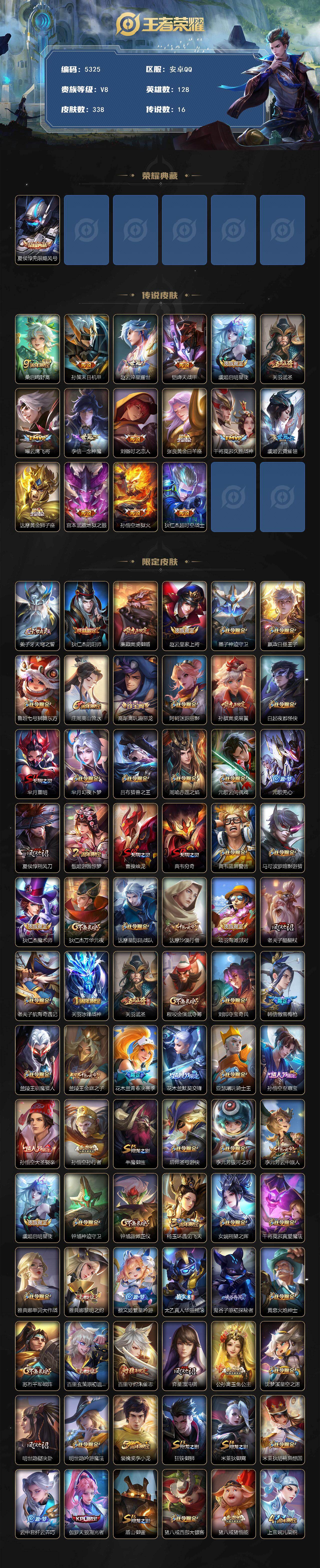 贵族8-贵族积分87463-338皮1典藏16传说0无双安卓手Q124区