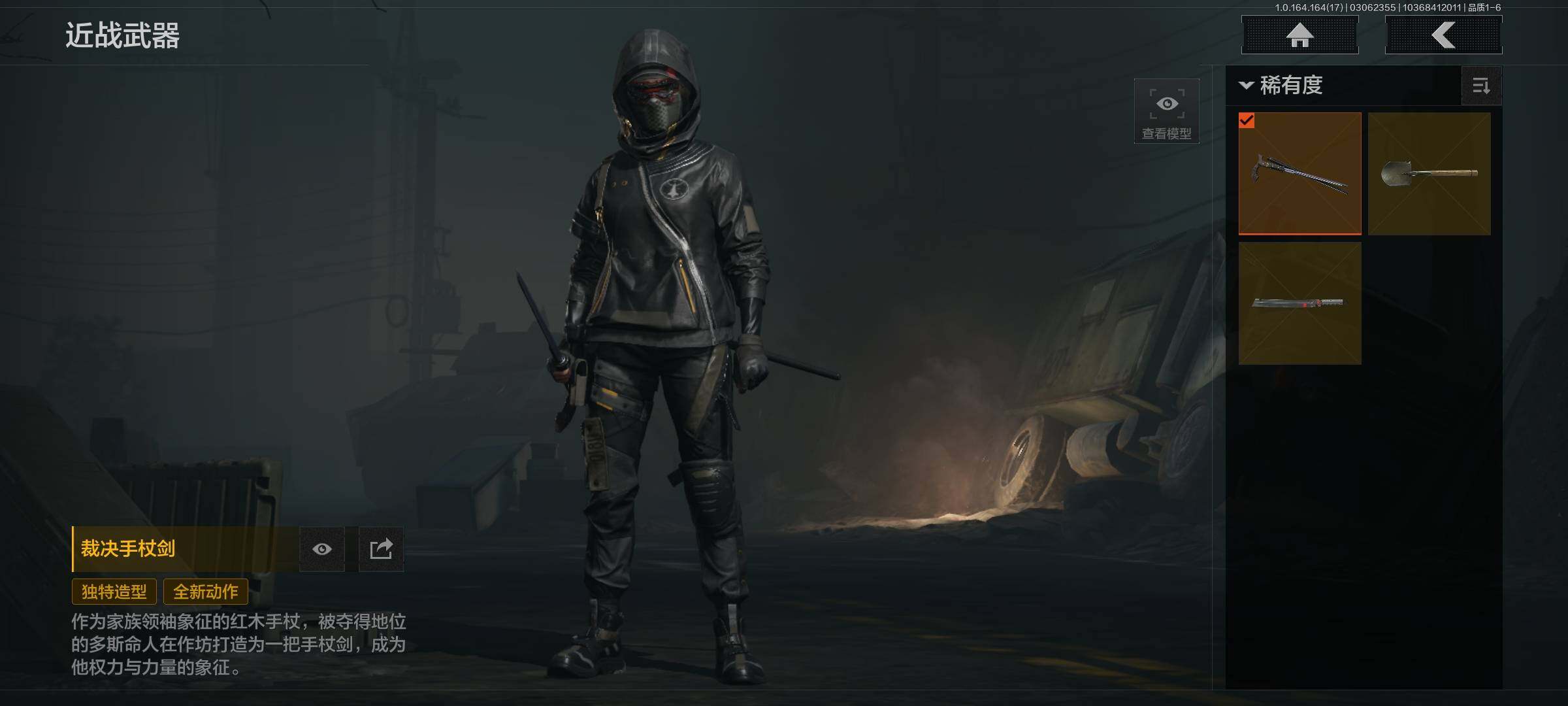 段位:专家/仓库价值(百万):12/裁决手杖剑/工兵铲/