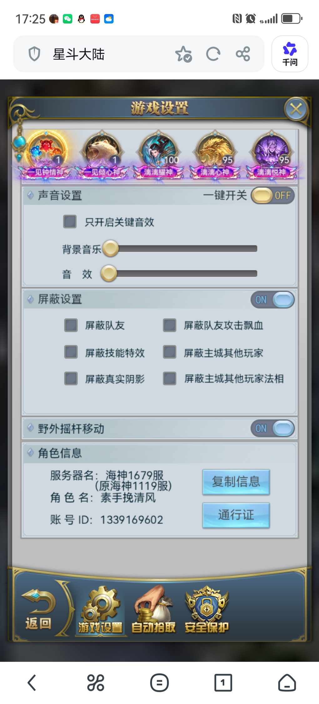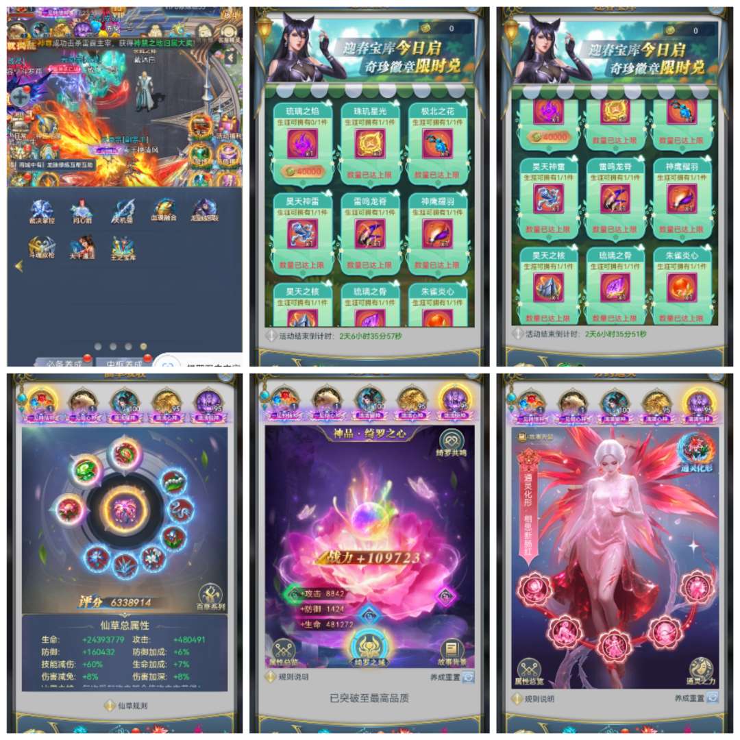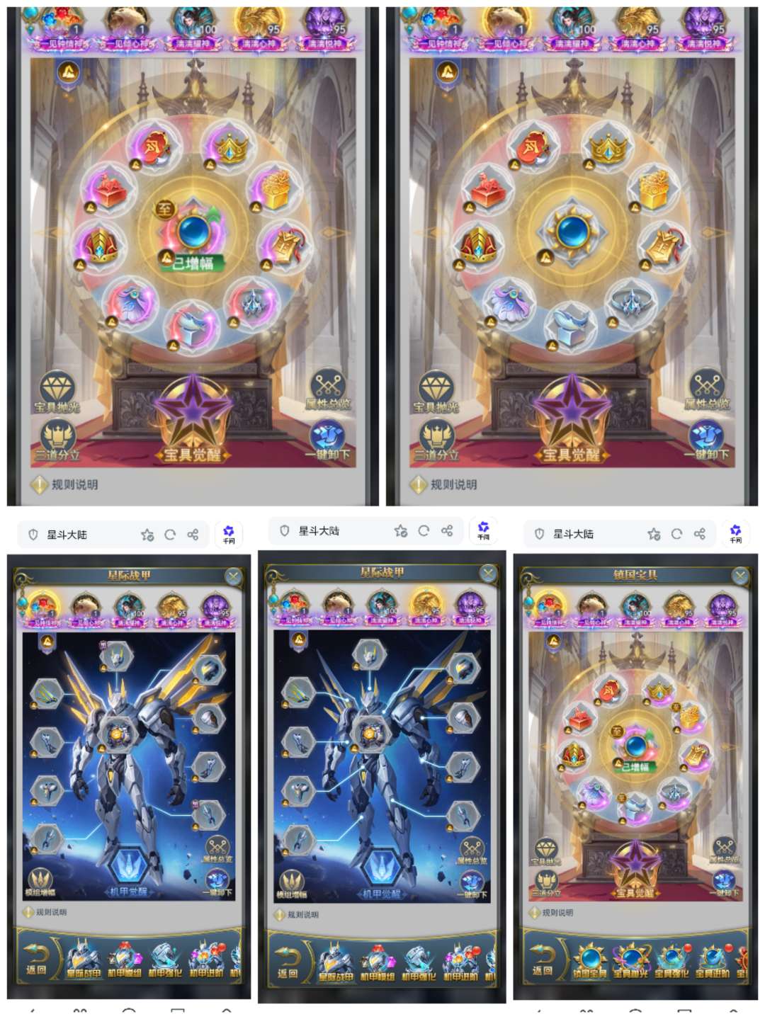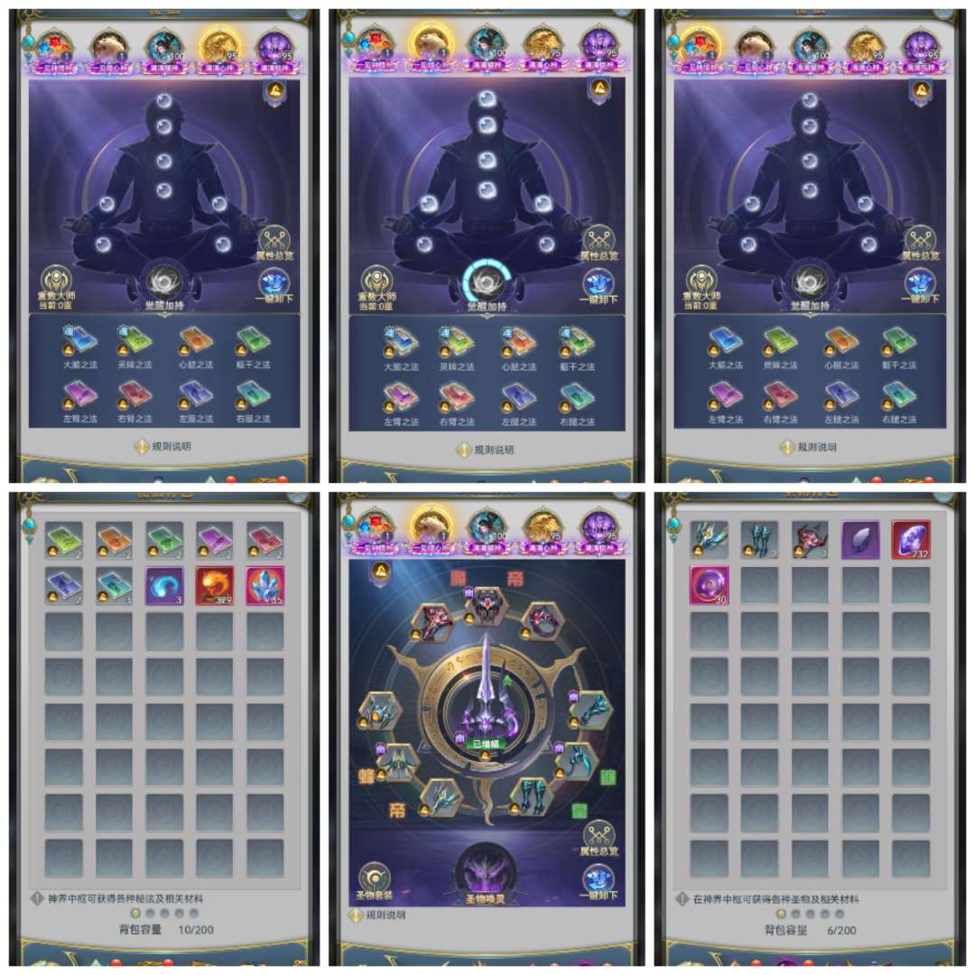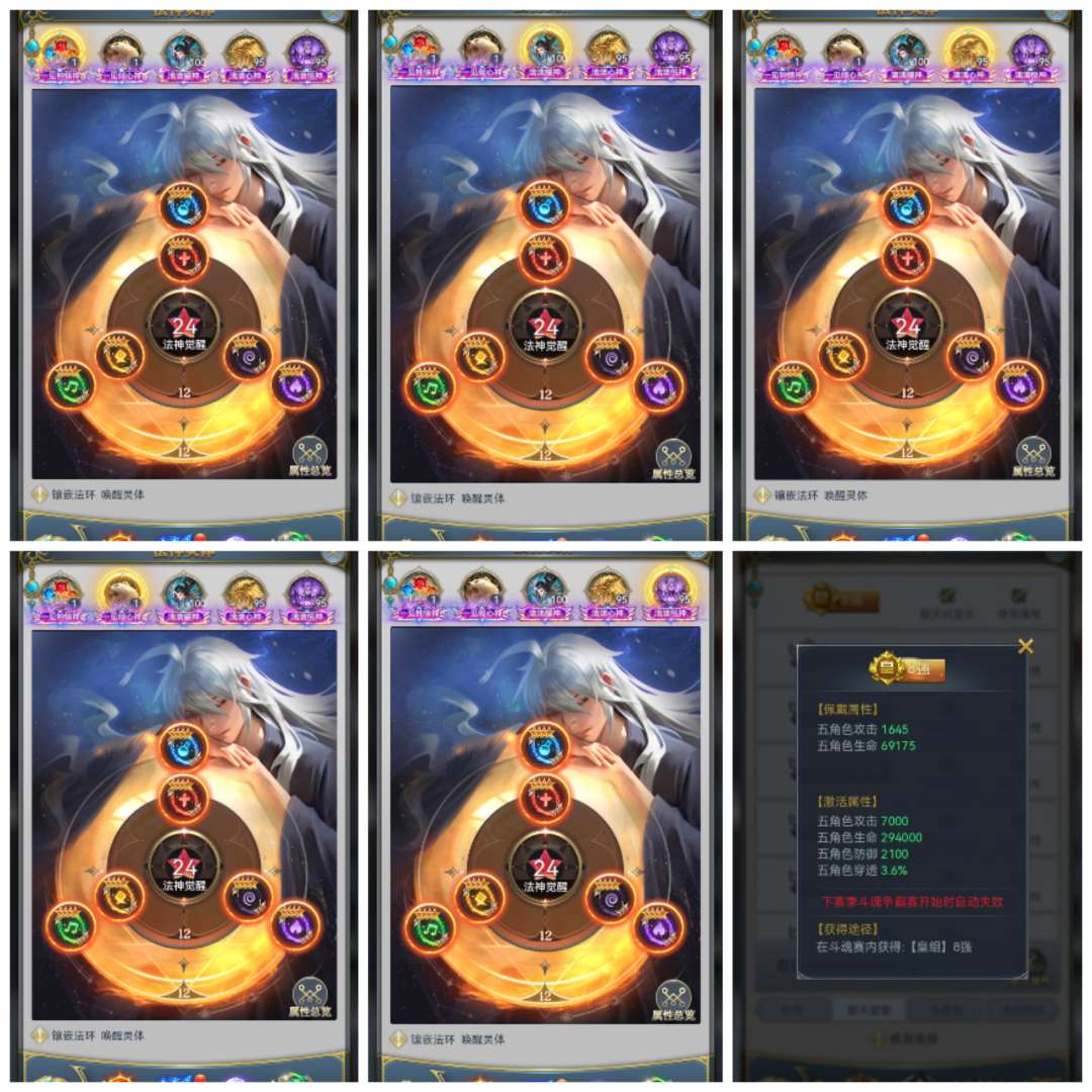 小奖循环也很好,积分基本满,两套满级血脉,满真身龙魂圣纹法环,同站8强,中枢进阶觉醒多,带4个小号