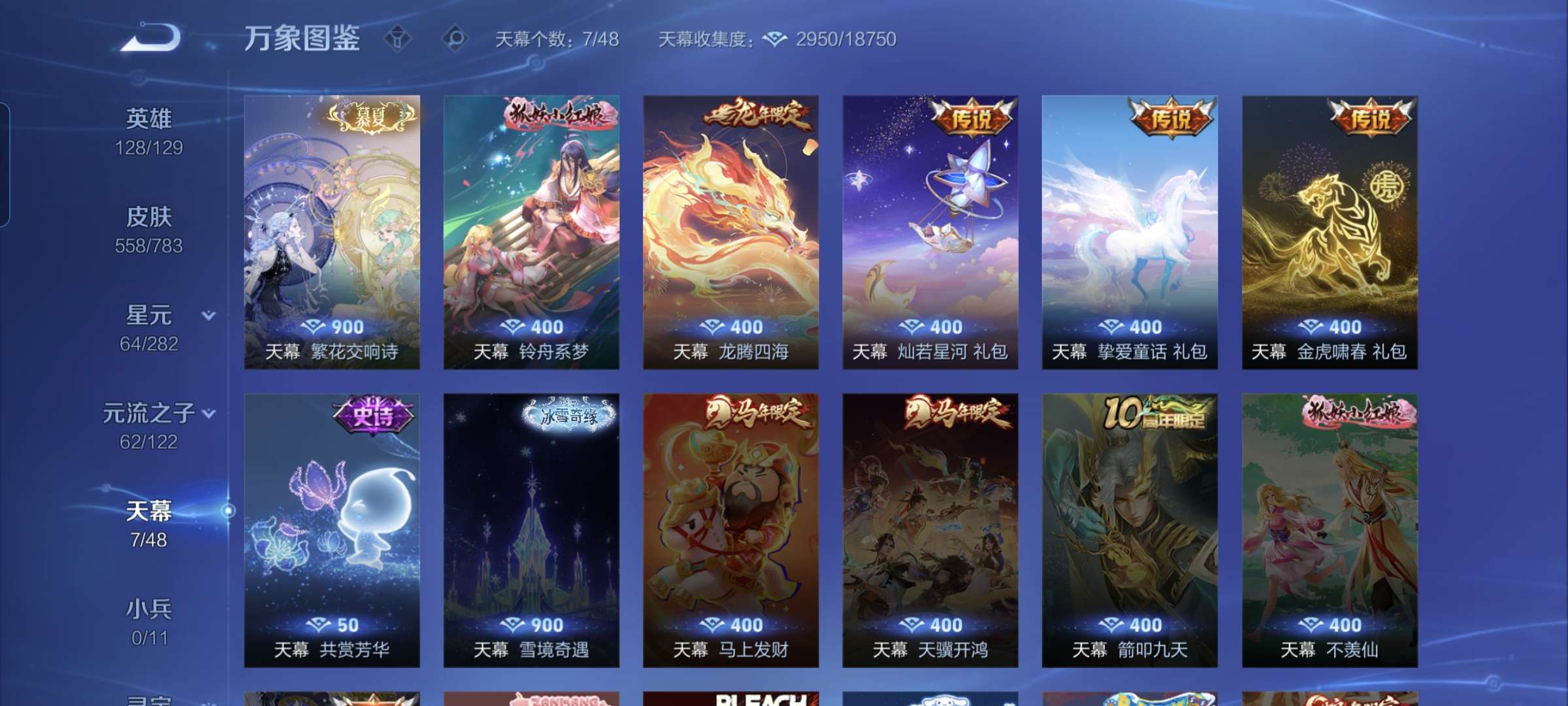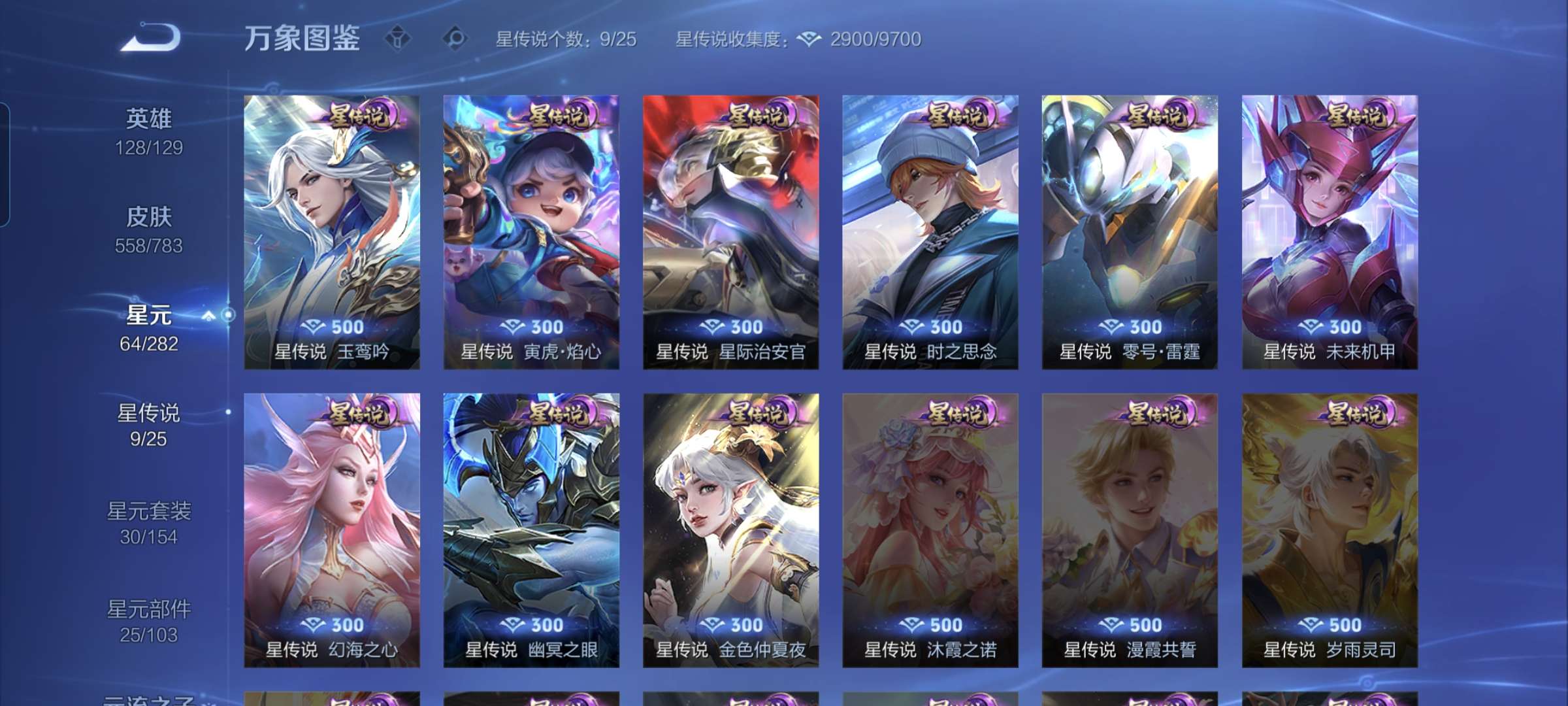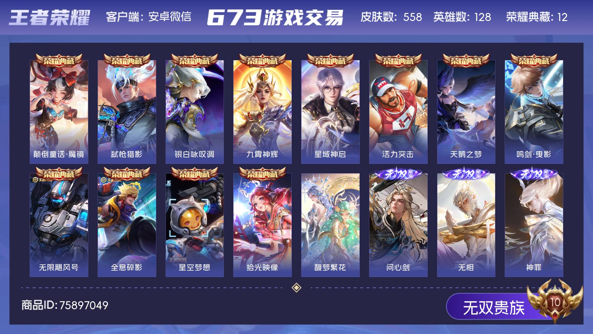 无双贵族 皮肤558 英雄128 无双王者 荣耀典藏12 珍品无双1 无双皮肤7 珍品传说8 传说9