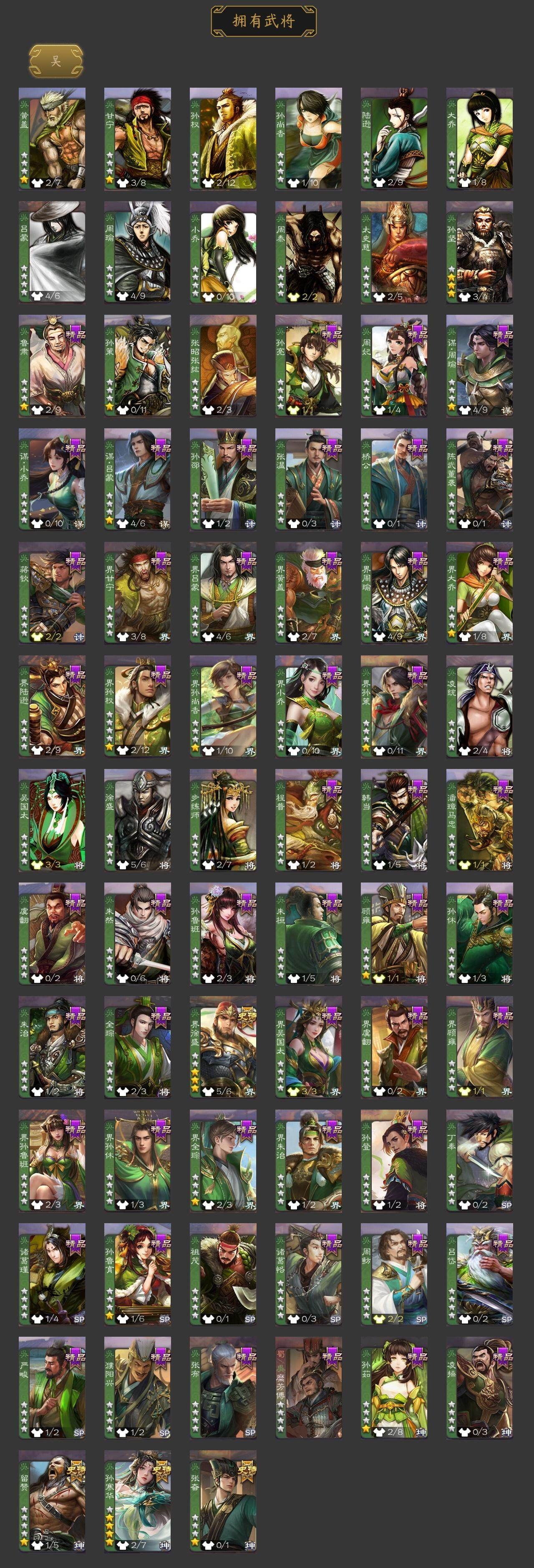 神吕布,神赵云,神张辽,神太史慈,神诸葛亮,星周不疑,王粲,杨修,王元姬,司马师,界钟会,界于禁,嵇康,郝昭,曹纯,戏志才,程昱,关索,谋刘备,马云騄,谋赵云,诸葛瞻,