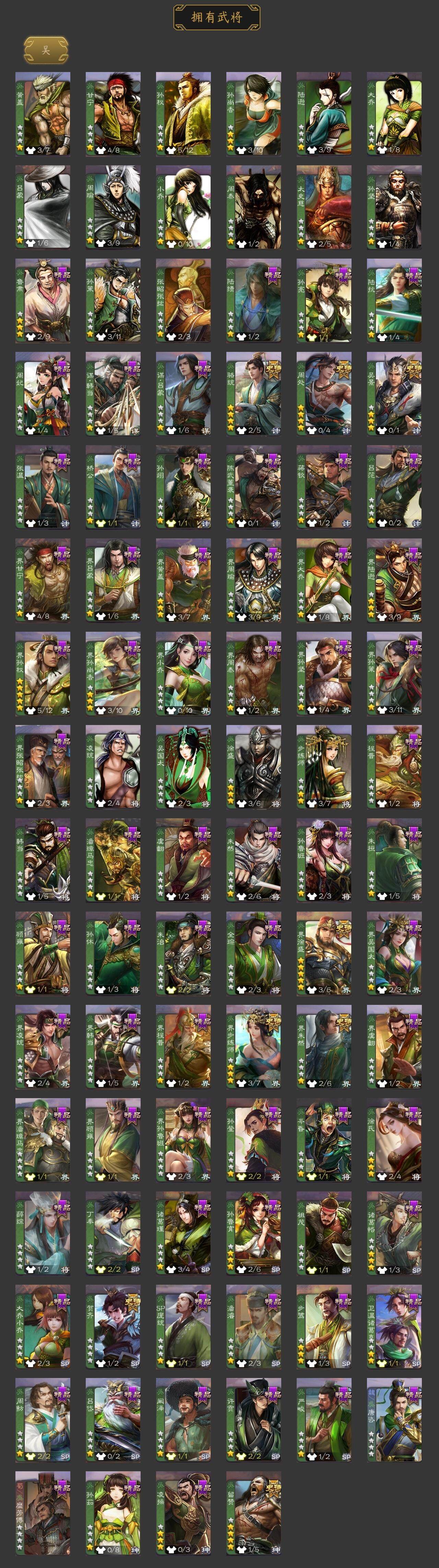 【1532】官阶:大将军;VIP等级:VIP11;史诗武将数量:47;动态皮肤数量:23;武将总数:403;史诗宝珠数量:0;将魂数量:1459;神将:3;魏国史诗武将:14;蜀国史诗武将:12;吴国史诗武将:8;群史诗武将:11