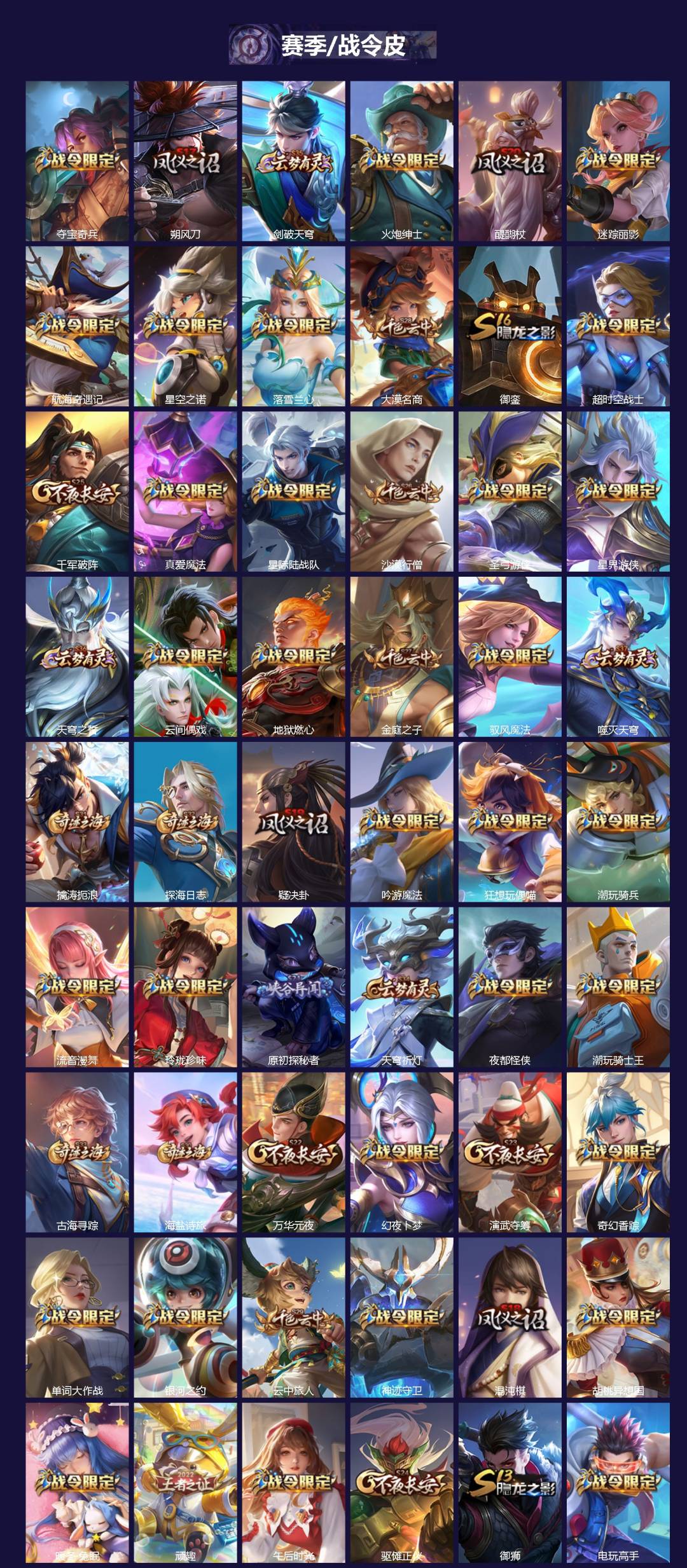 【传说皮】神骥·逐星野,踏浪归,幻光神枪,李逍遥,山海·炽霜斩(李信年限),黄金狮子座,零号·赤焰,地狱之眼,末日机甲-孙尚香(绿蚂蚱),一念神魔,淬