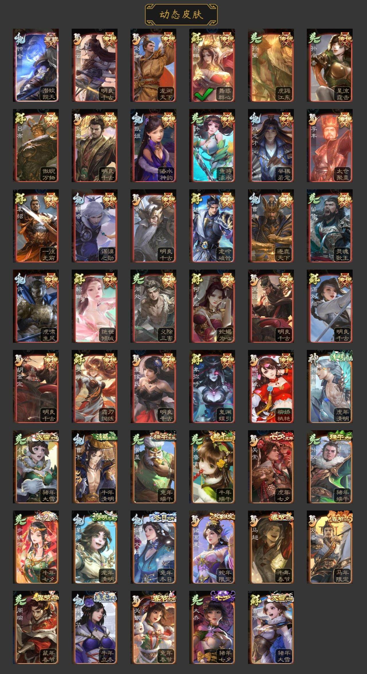 神赵云,神刘备,神甘宁,神张辽,神郭嘉,神太史慈,神孙策,SP司马昭,王粲,杨修,王元姬,马钧,界钟会,界曹真,嵇康,郝昭,曹纯,戏志才,程昱,谋赵云,张星彩,沙摩柯,谯周