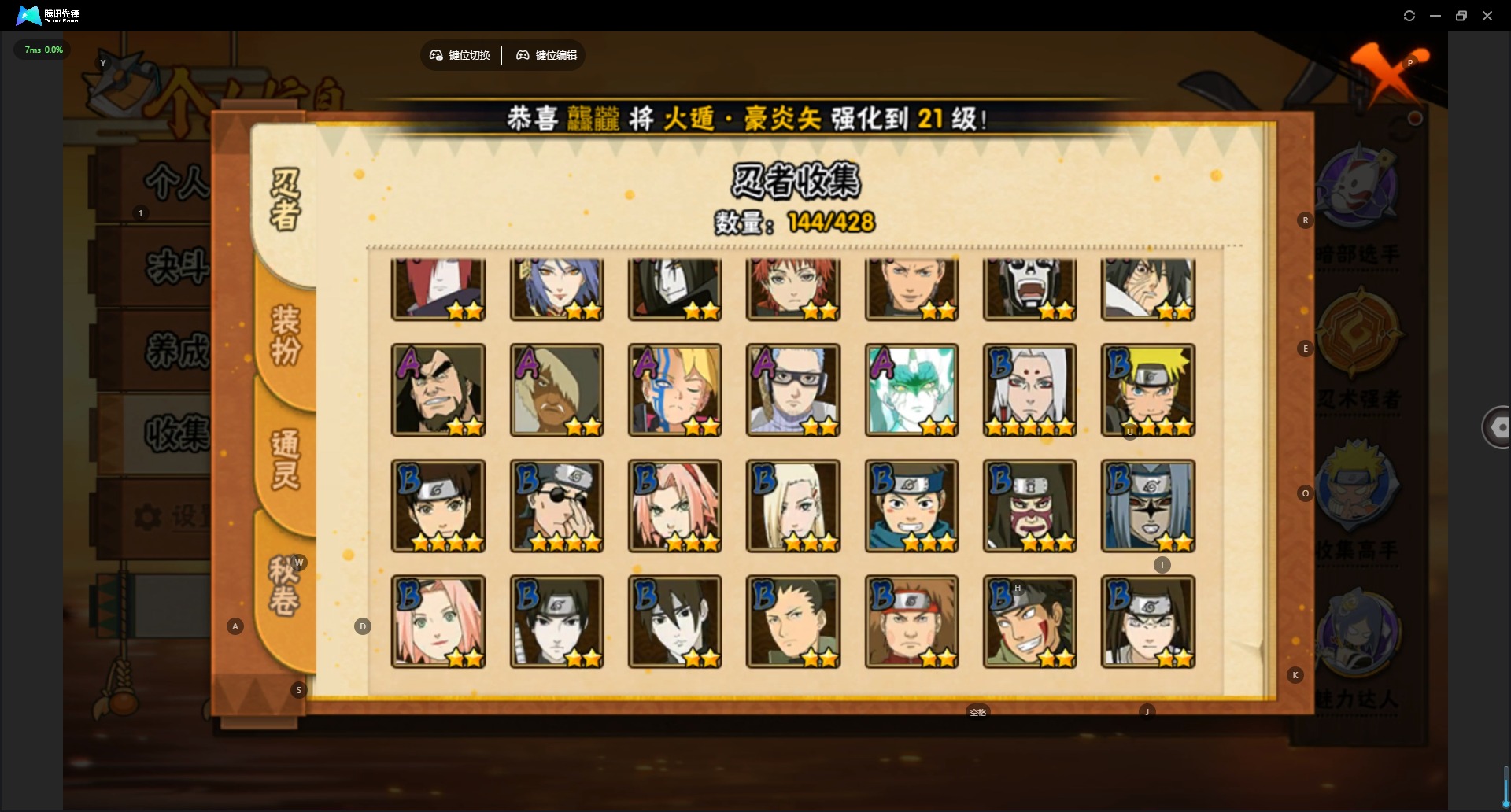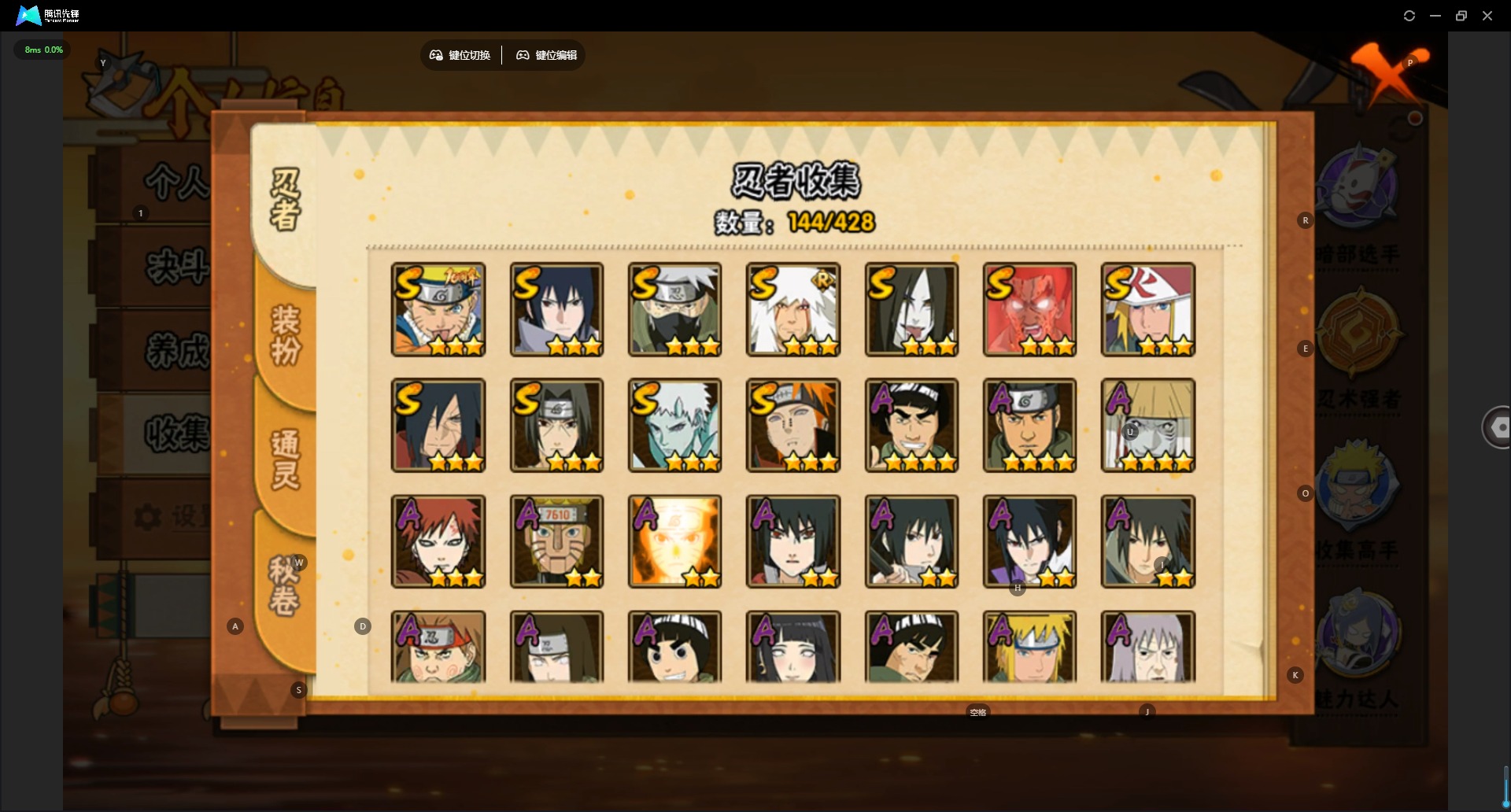 【S级忍者】宇智波斑「秽土转生·解」,宇智波佐助「永恒万花筒」,迈特凯「死门」,旗木卡卡西「须佐能乎」,漩涡鸣人·宇智波佐助,宇智波带土「十尾人柱力」,宇智波鼬 「须佐能乎」,佩恩「天道」,波风水门,大蛇丸,自来也