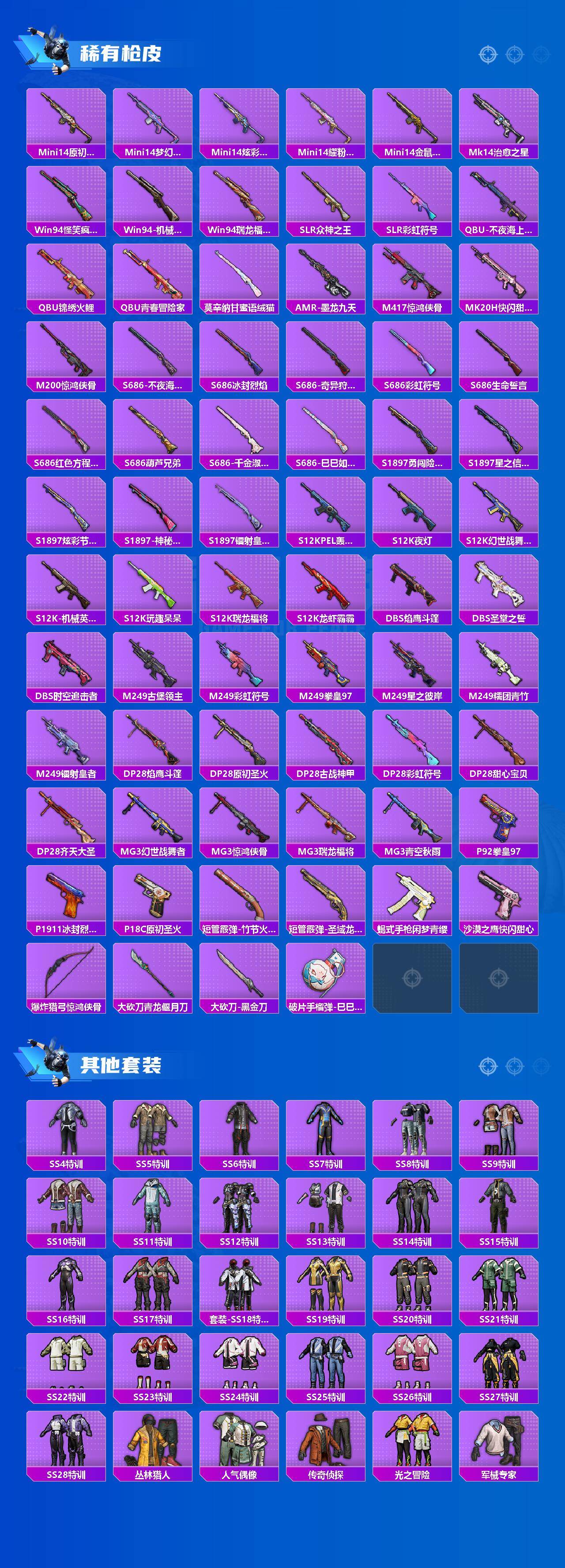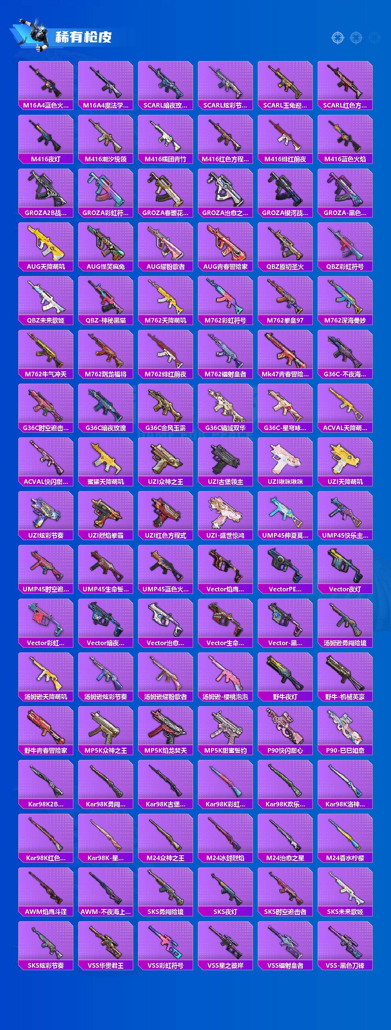 【粉色枪皮等级】:SCAR-L-机甲封神(七级),M416-五爪金龙(七级),M416-风花雪月(四级),AUG-暖羊咩咩(