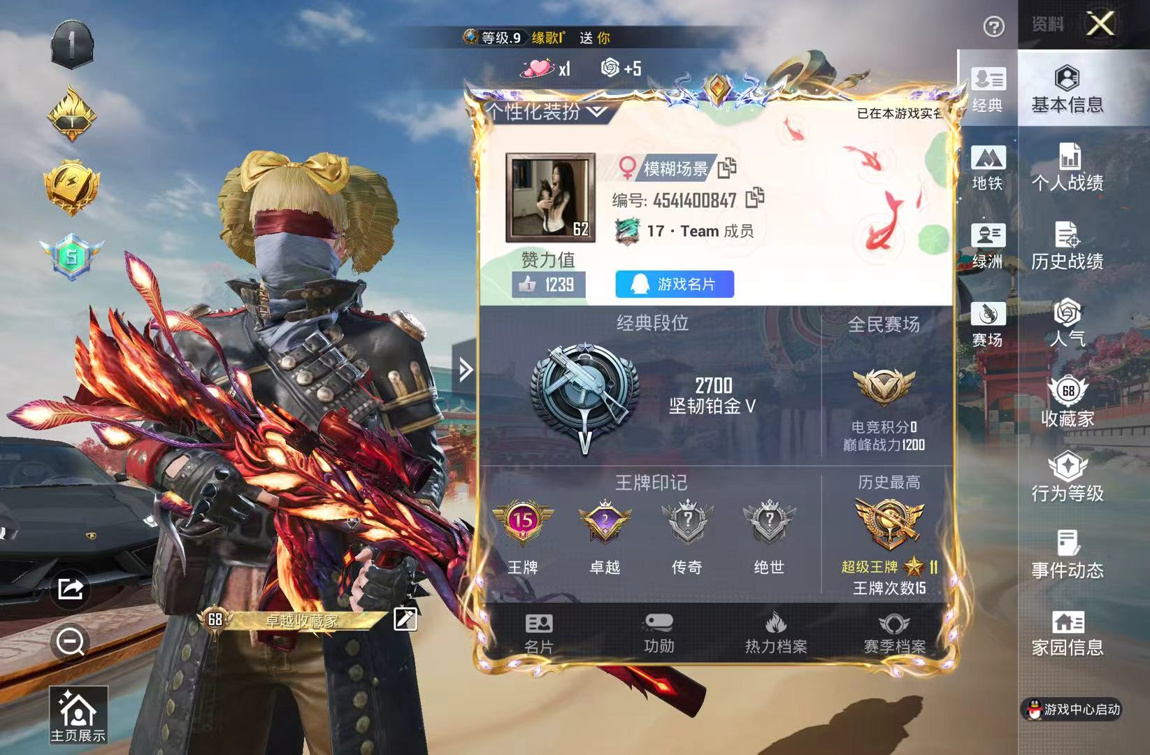 15王牌印记-20粉装-7特效枪-1载具-69614热力值-160套装-191枪皮-2卓越印记