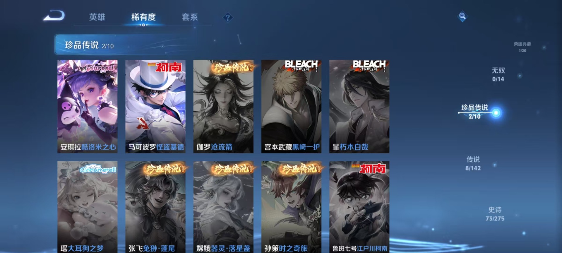 ]V7 1典藏 2珍品传说 8传说 127英雄 241皮肤 可