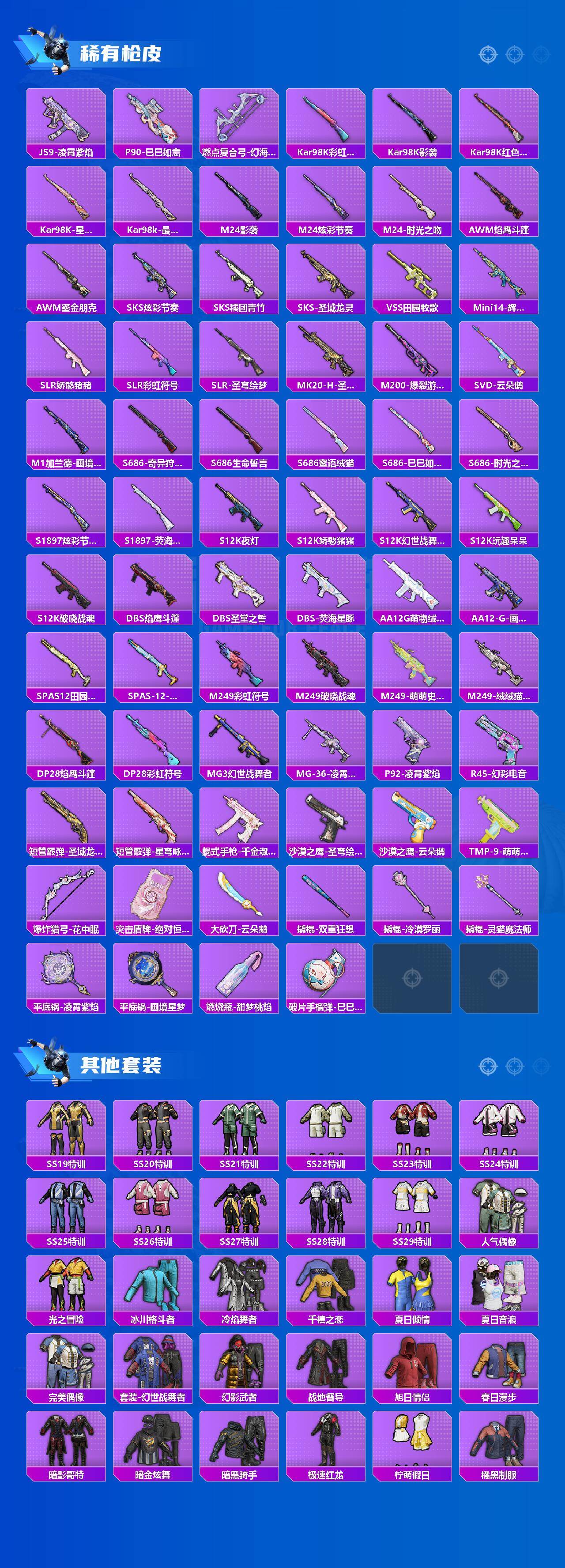 1神装-12粉装-14特效枪-2载具-6粉色飞行器-88298热力值-13王牌印记-212套装-277枪皮
