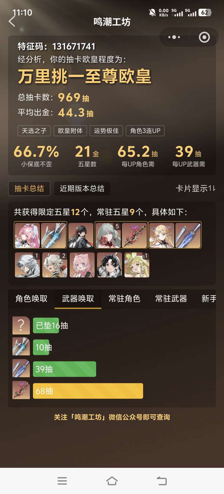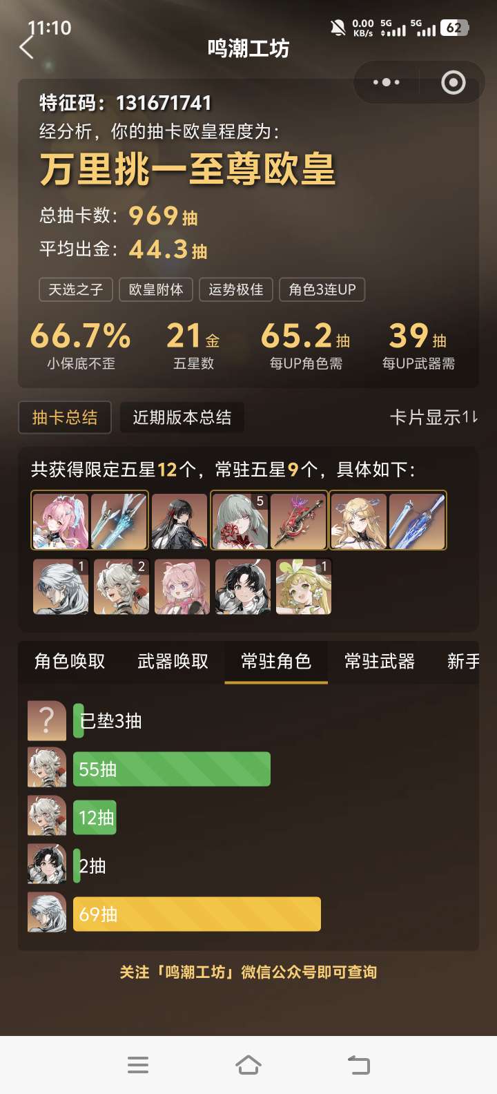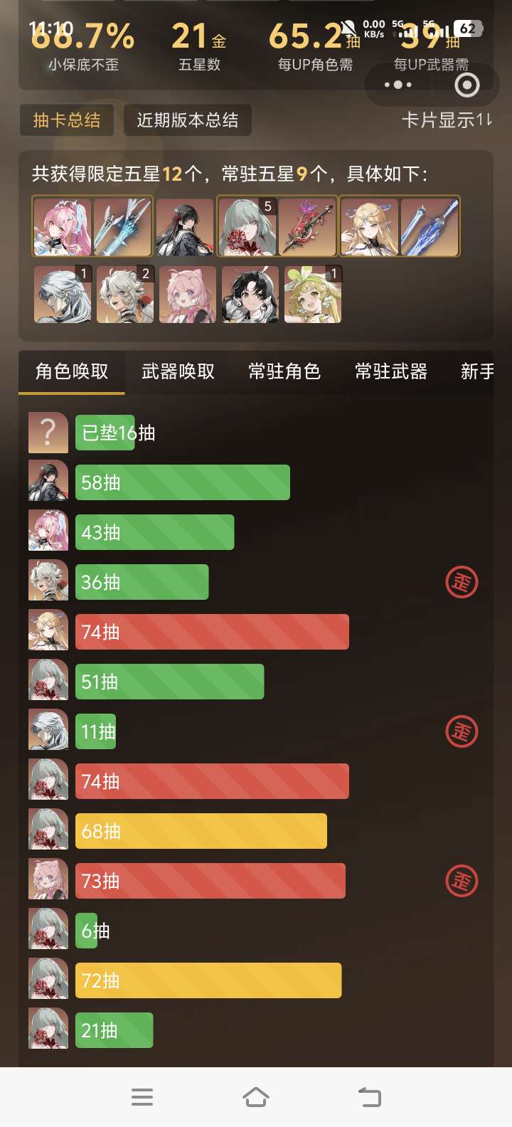 五星角色数: