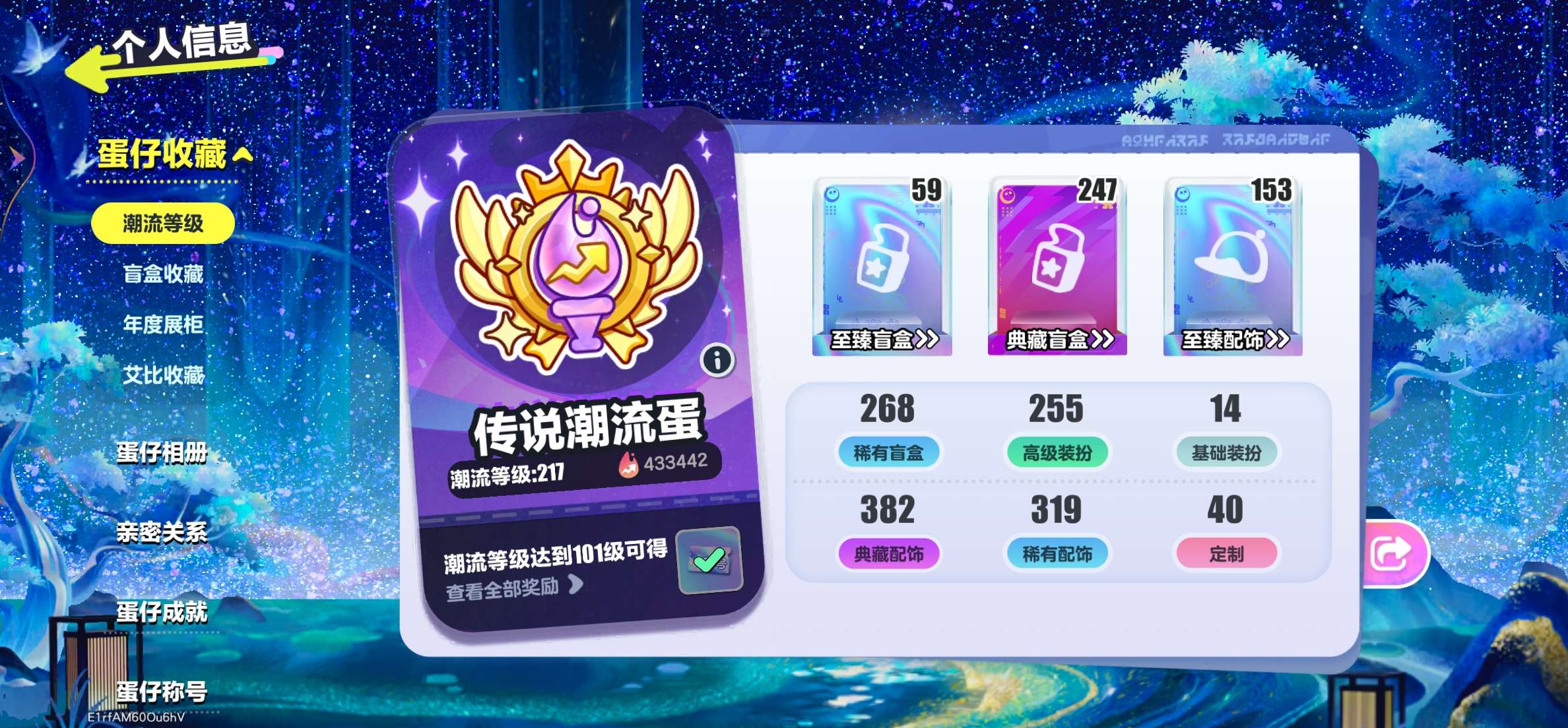 43万潮流,满级尊享,两套至尊农场装扮,新年活动拿下,马车和小马宝莉全有,新赛季端盒,蛋币很多
