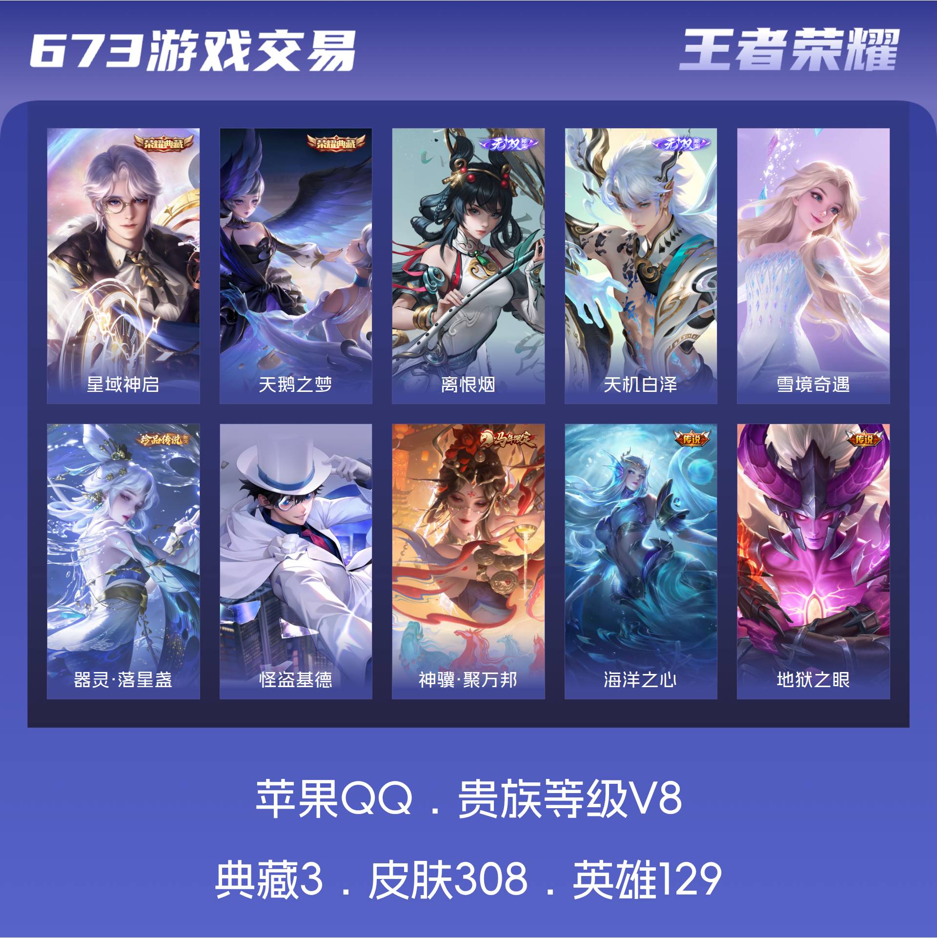 V8 皮肤308 英雄129 无双王者 荣耀典藏3 无双皮肤3 珍品传说2 传说20 其他皮肤288