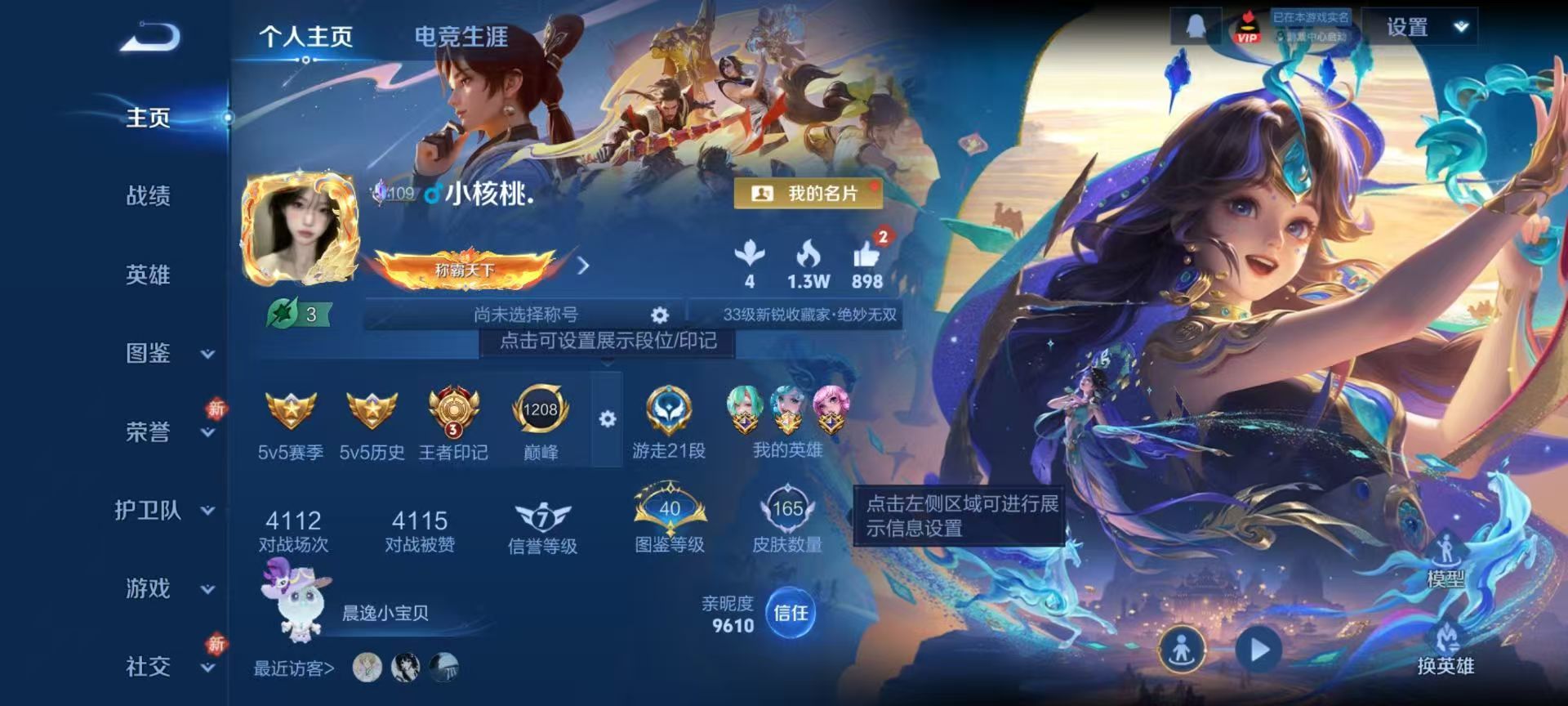 安卓QQ/最强王者/165皮肤/109英雄/1典藏/0珍品无双/2无双/1珍品传说/3传说/46史诗