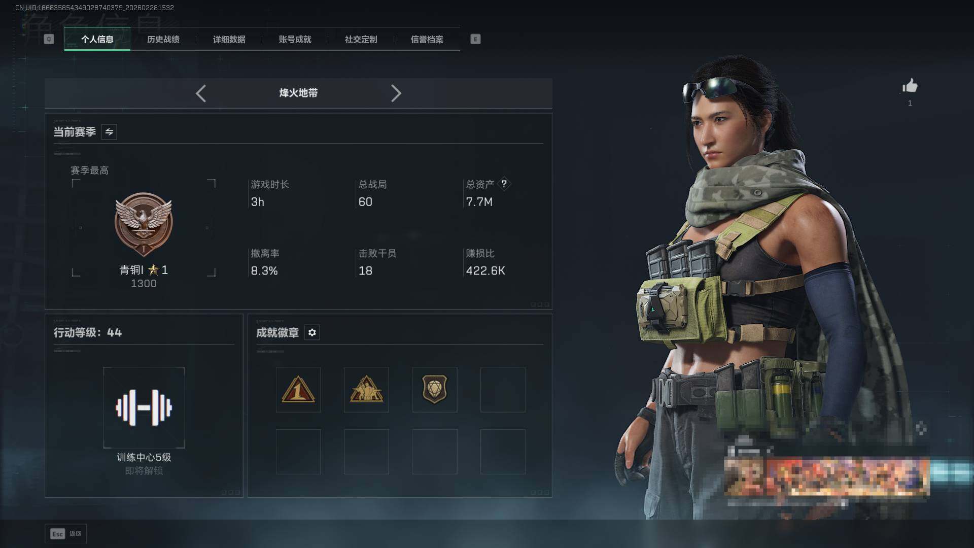 【SJZF6105】总资产(M):7M/哈夫币(K):2512K/哈夫币(K):2512K/传说枪皮数:12/全面战场等级:2_段位:无段位/烽火地带等级:44_段位:青铜/蛊-能天使午夜邮差/威龙-凌霄戍卫/近战-黑鹰/M4A1突击步枪-阿米娅/AKM突击步枪-锦绣/QBZ95-1突击步枪-凌霄戍卫/AK-12突击步枪-特斯拉线圈/SCAR-H战斗步枪-启航/CAR-15突击步枪-阿米娅/K437突击步枪-锦绣/Vector冲锋枪-能天使-午夜邮差/UZI冲锋枪-特斯拉线圈/SMG-45冲锋枪