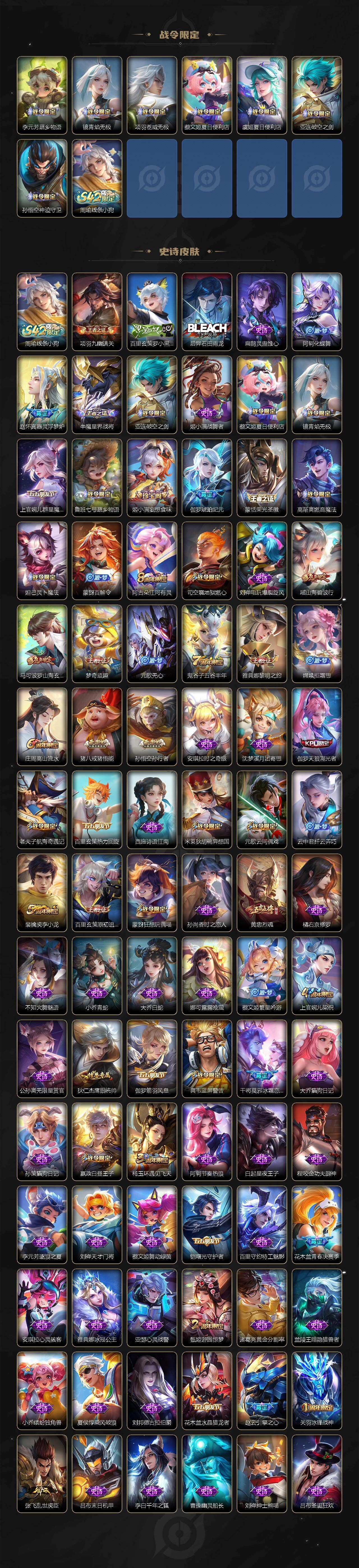 安卓Q-V8-最强王者段位-128英雄-394皮肤-3典藏皮肤-2珍品传说-20传说-108史诗