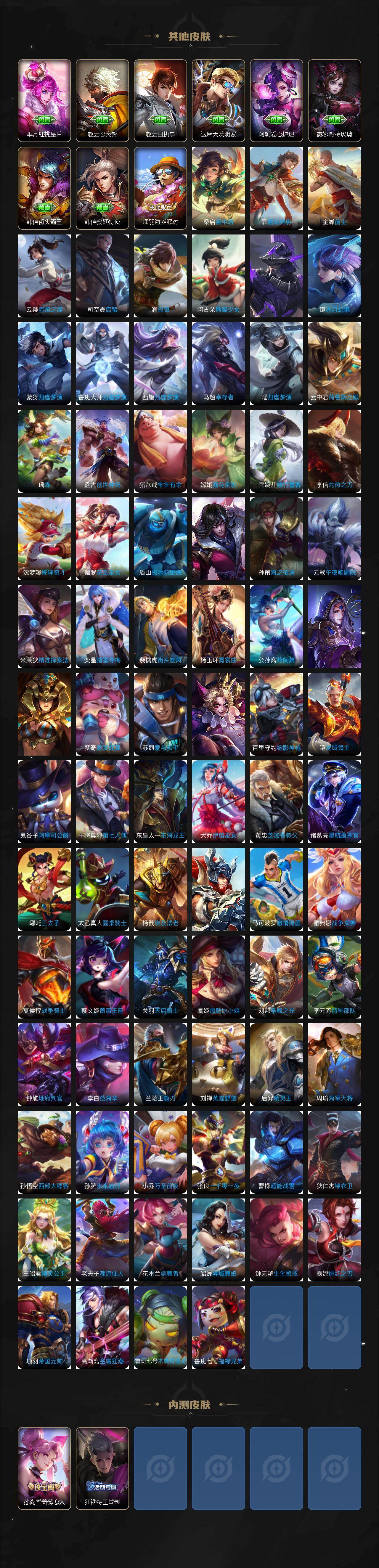 安卓Q-V9-最强王者段位-128英雄-380皮肤-6典藏皮肤-4无双-2珍品传说-64传说-106史诗
