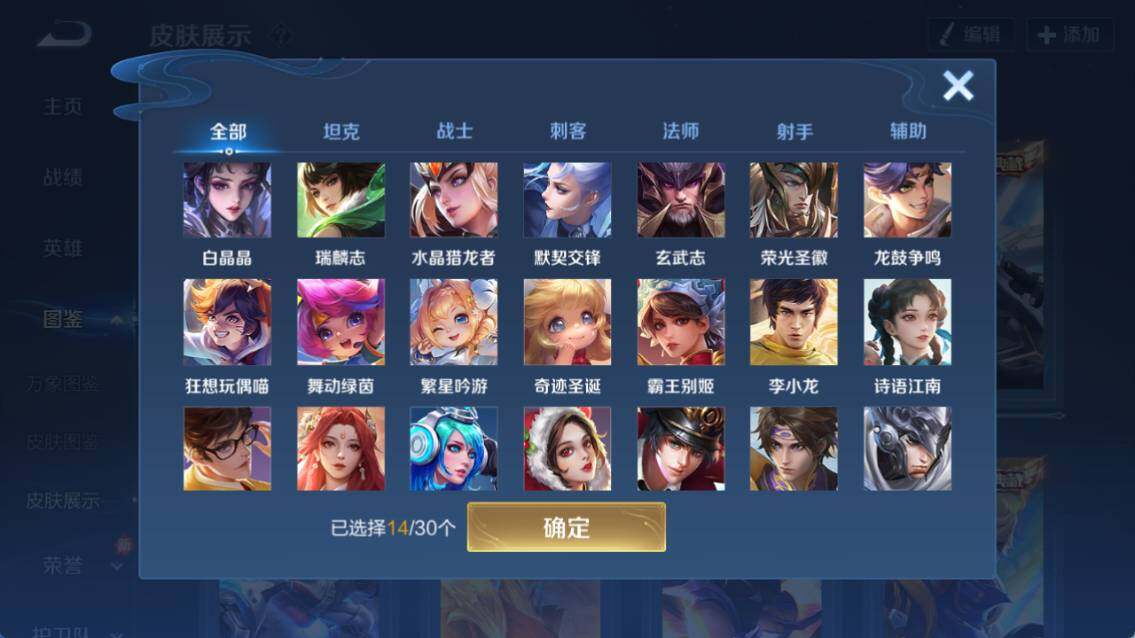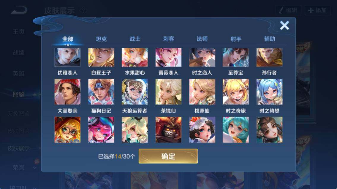 【荣耀典藏】:武则天英雄,孙悟空全息碎影,武则天倪克斯神谕,夏侯惇无限飓风号,小乔天鹅之梦,孙尚香杀手不太冷,鲁班七号星空梦想,芈月大秦宣太后,程咬金活力突击,李白鸣剑曳影,诸葛亮星域神启,花木兰九霄神辉,铠银