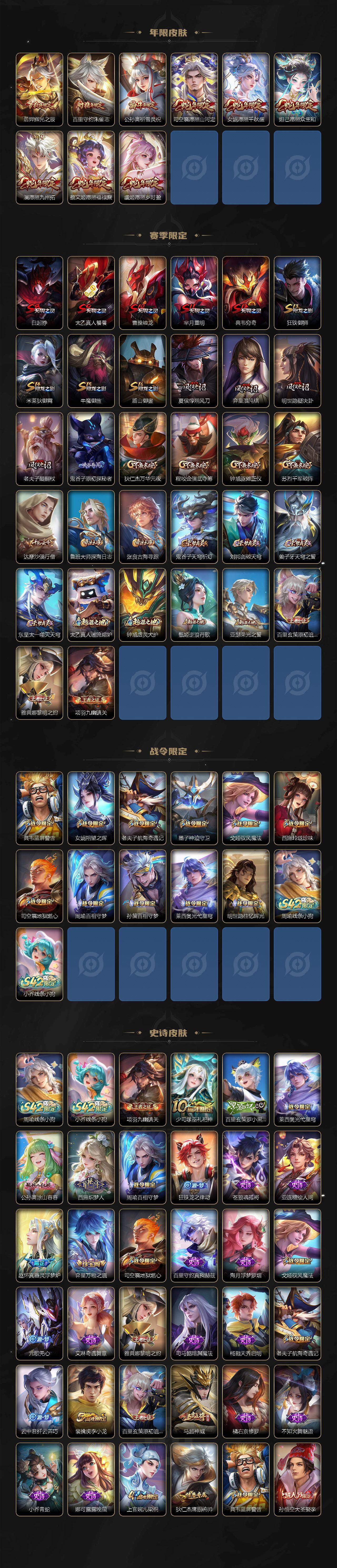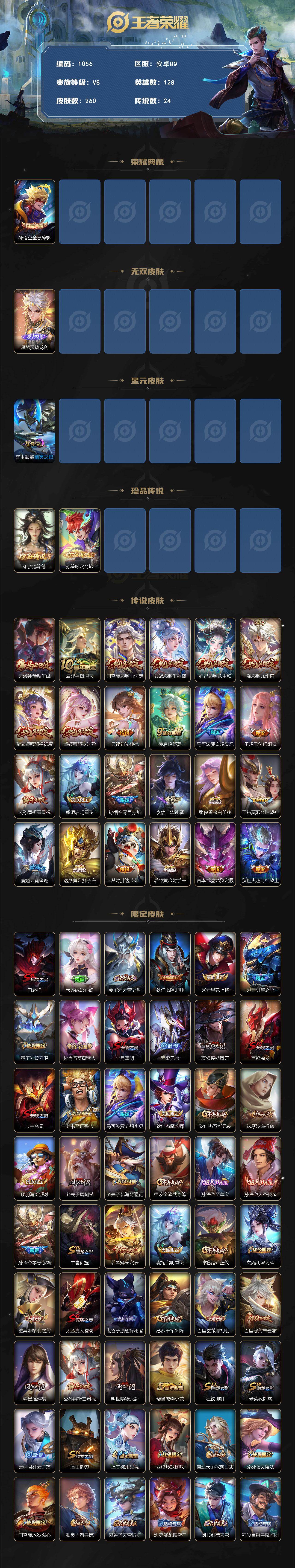V8-最强王者段位-128英雄-260皮肤-1典藏皮肤-1无双-2珍品传