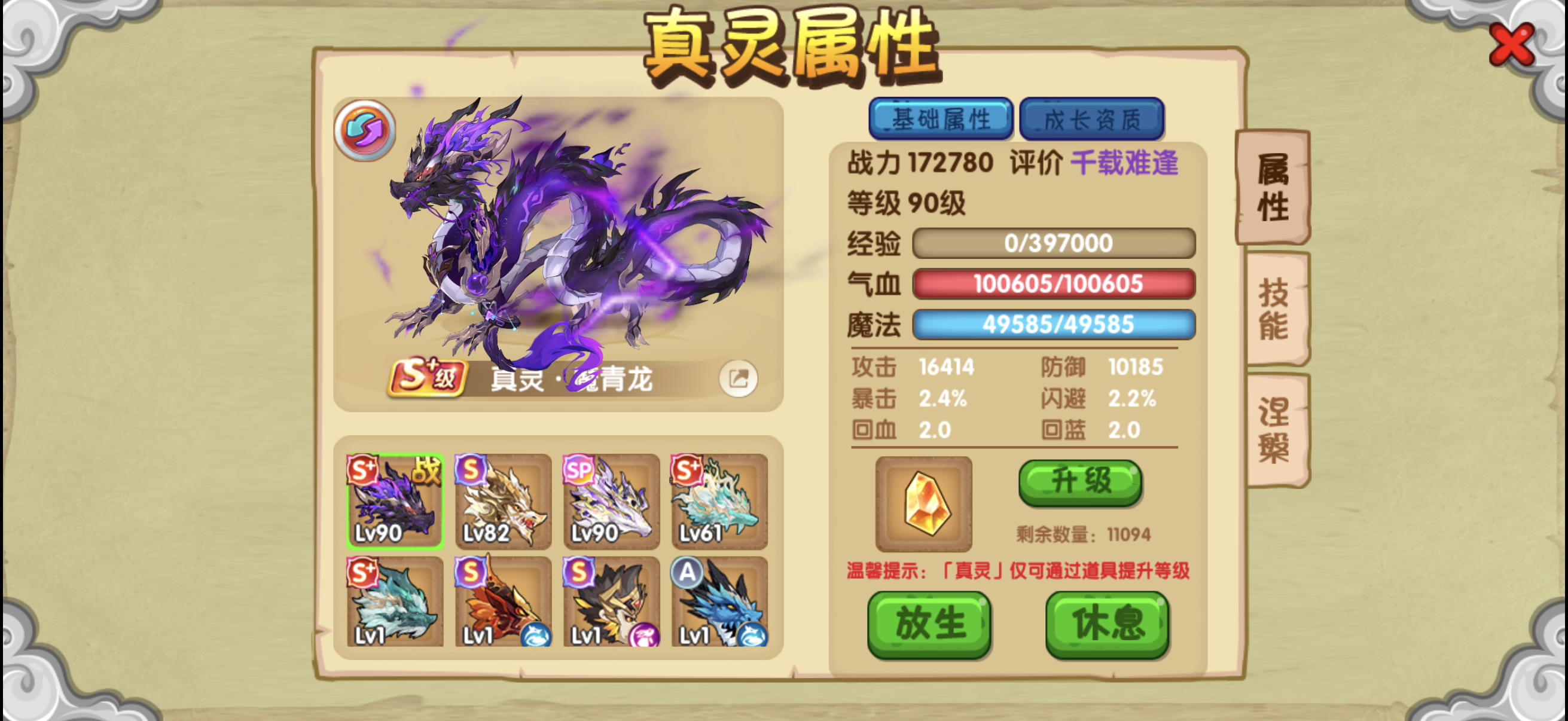 100w +战力 6w➕攻击资源多多 仙器均一飞渡中 突破150w拥有仙宝 真灵多多s➕ sp均有高质量 自创战队 稳定发挥